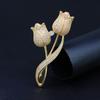 Broche de flor de tulipán para mujer, de cobre con microestrás, insignia profesional de moda, accesorio para traje, decoración de ramillete