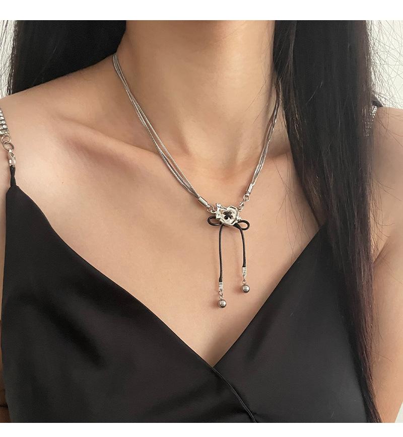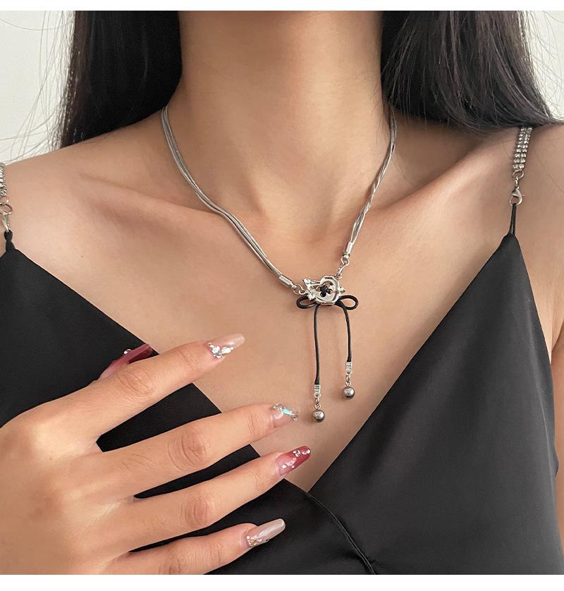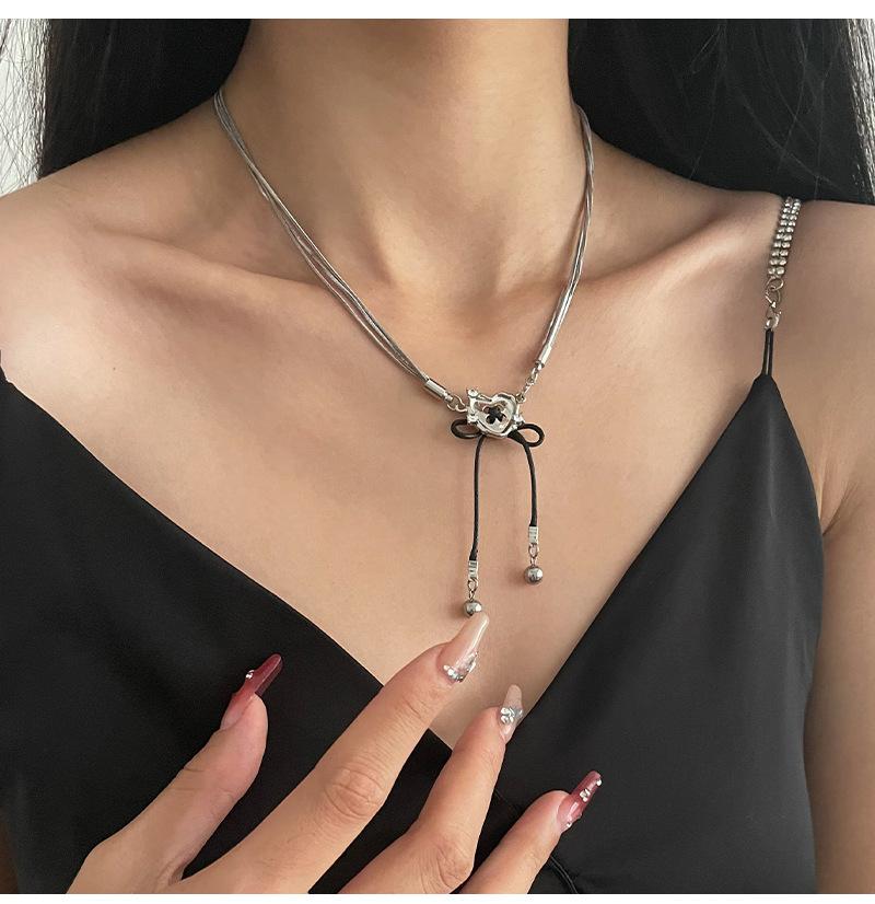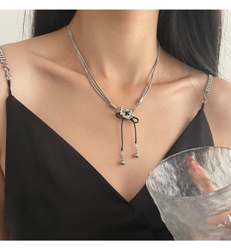 Collar con lazo y botones de amor, diseño de nicho femenino, estilo frío, dulce y fresco, colgante con cadena de clavícula multicapa.