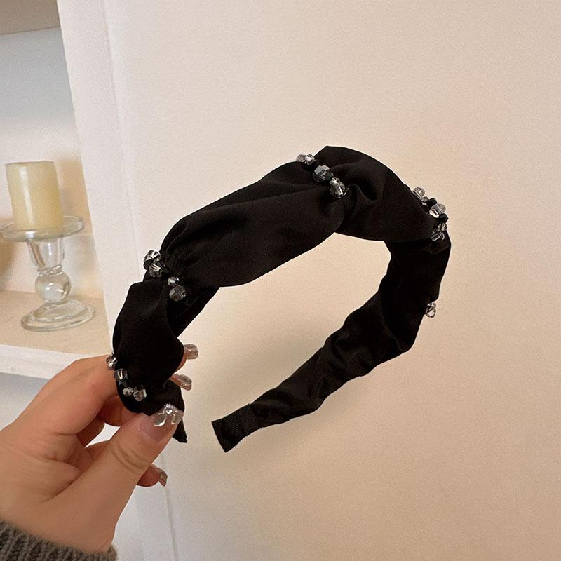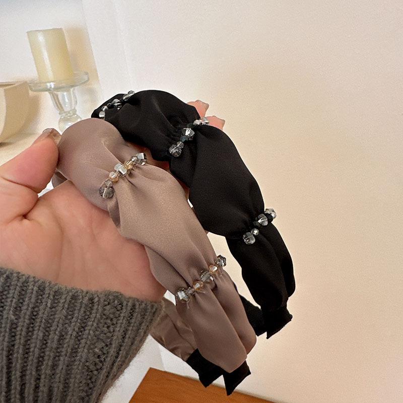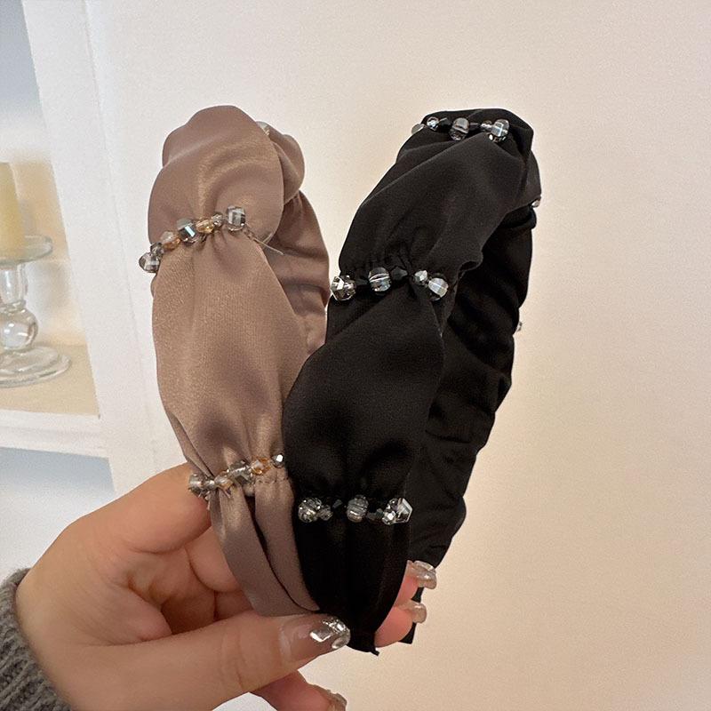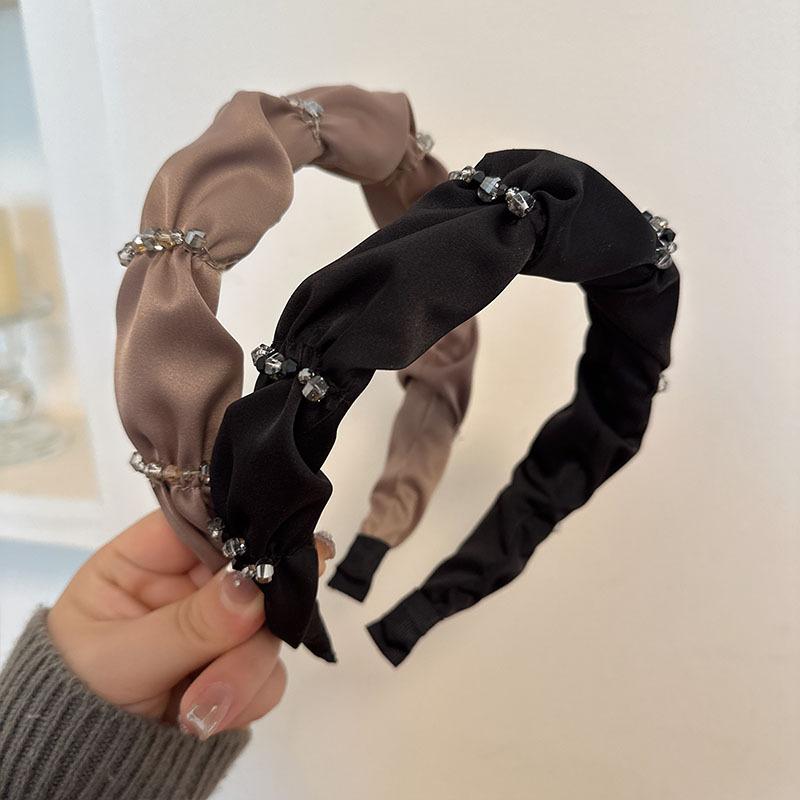 Diadema de satén plisada con diamantes de imitación, elegante, retro francesa, sencilla, ligera, de lujo, con calavera de alta presión, pinza para el cabello para mujer