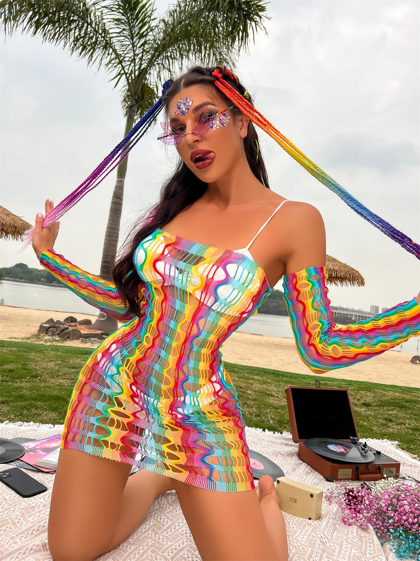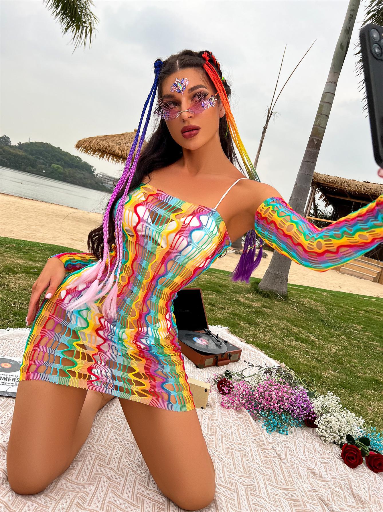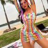 Lencería de manga hueca de siete colores de alta calidad que no se corre, abrigo bikini de playa de verano para mujer, vestido sexy
