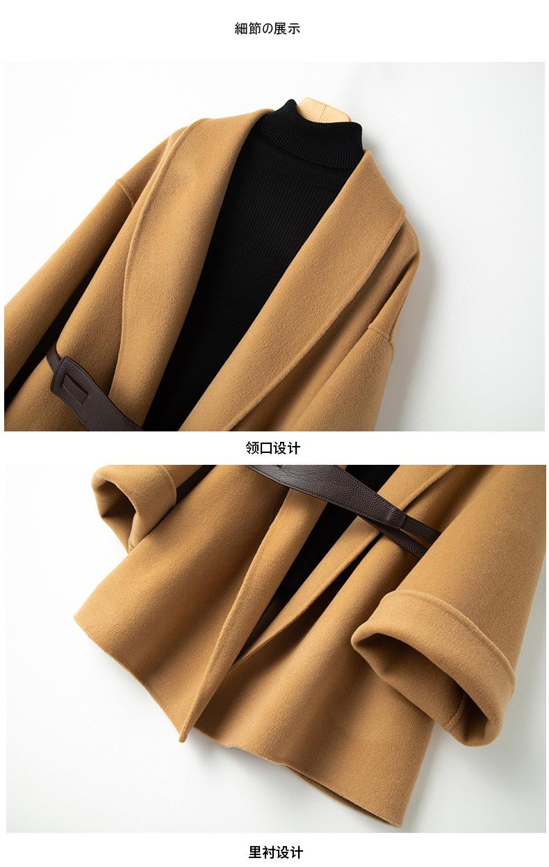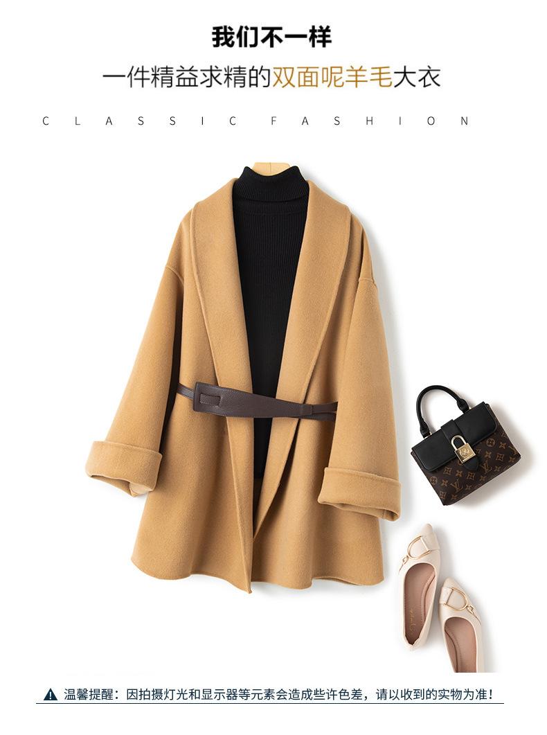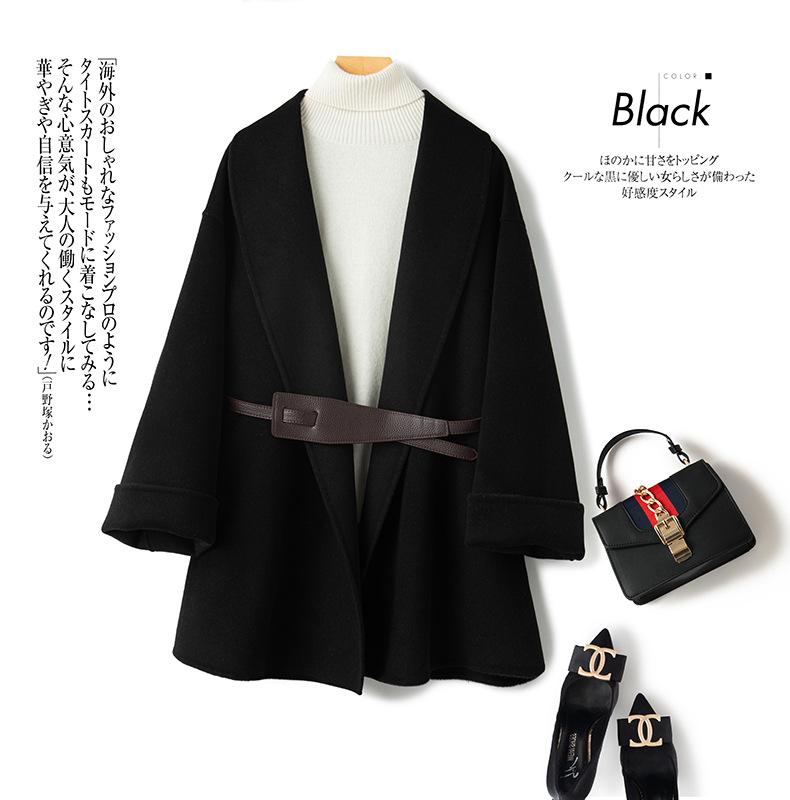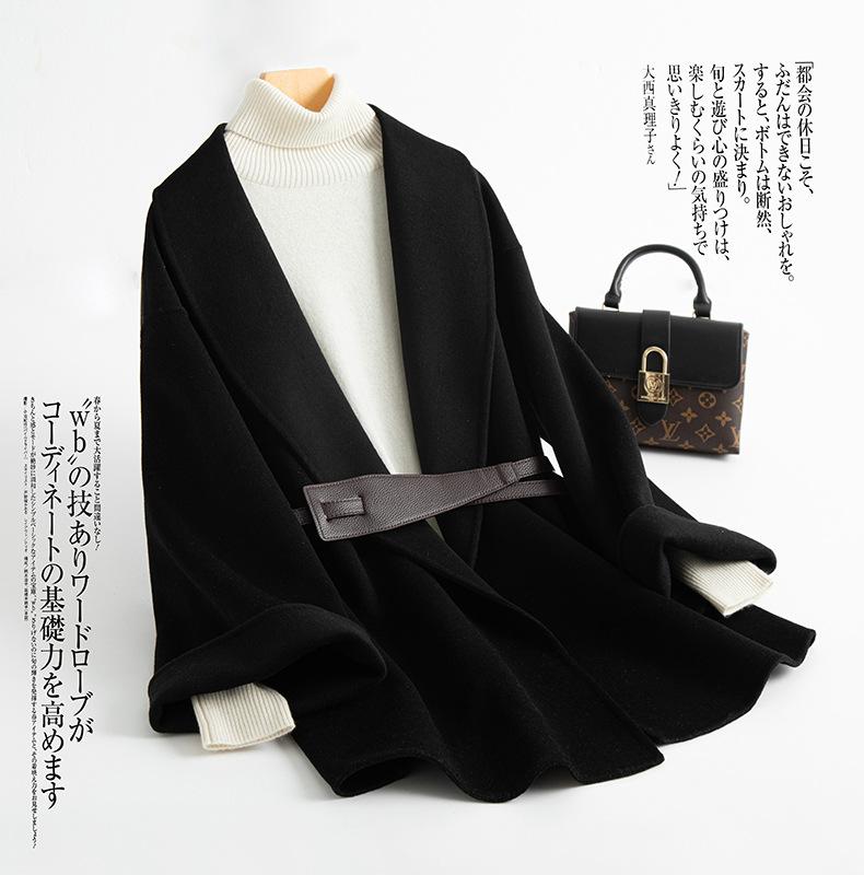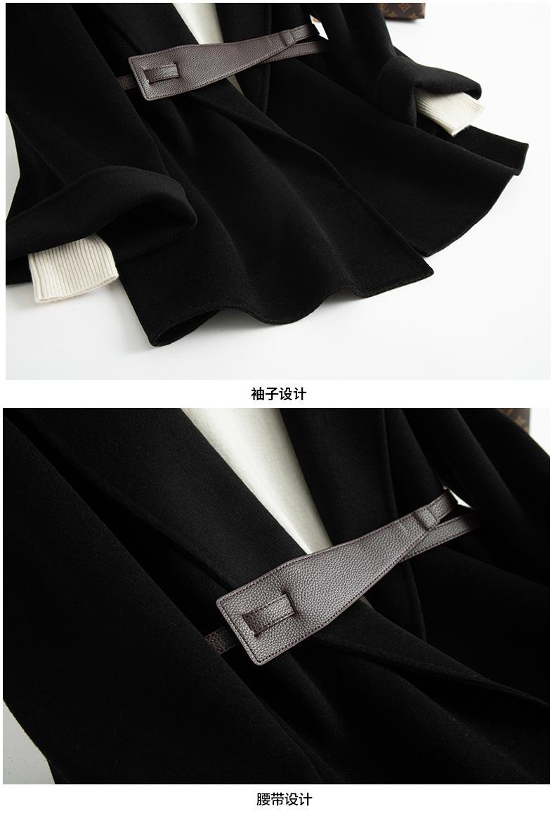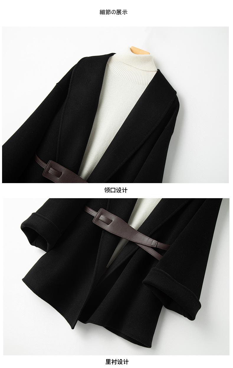 Abrigo de Cachemira de Doble Cara para Mujer de Largo Medio 2023 Otoño e Invierno Nuevo Pequeño Cabo Abrigo de Lana Negro