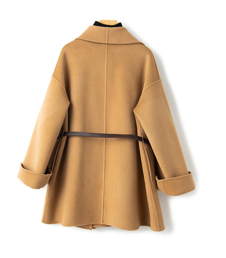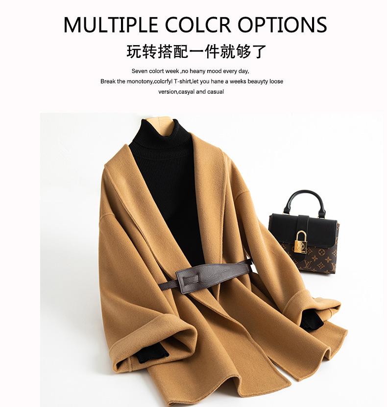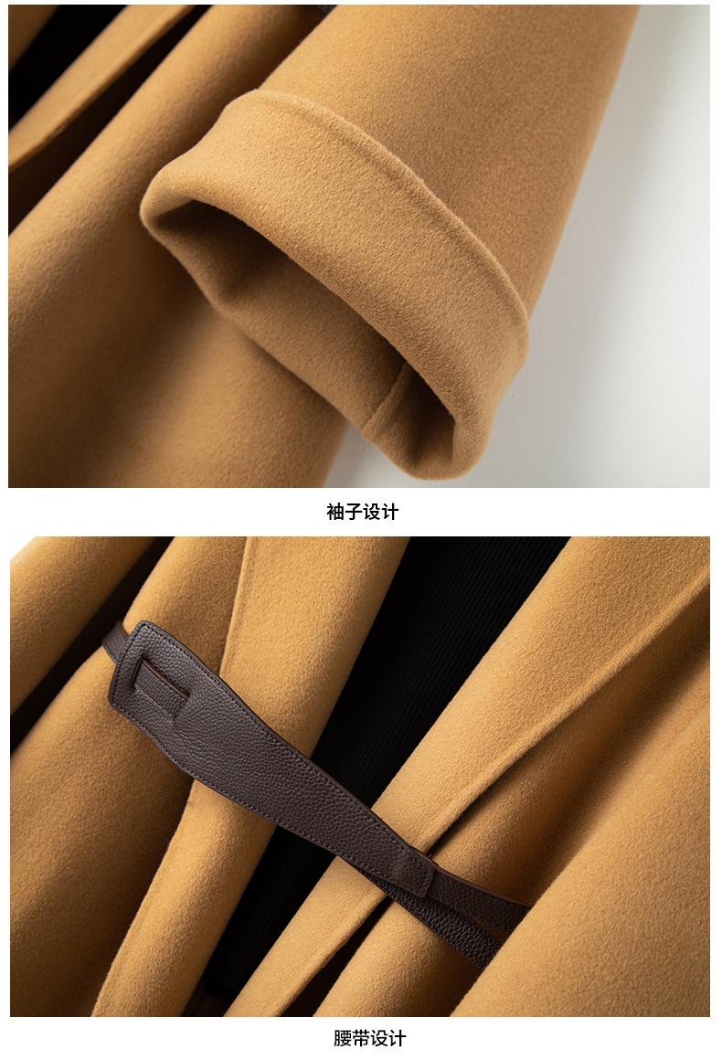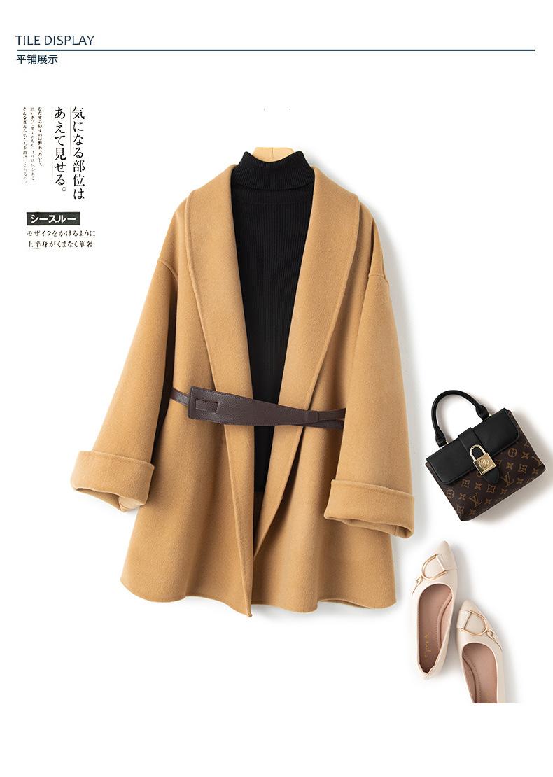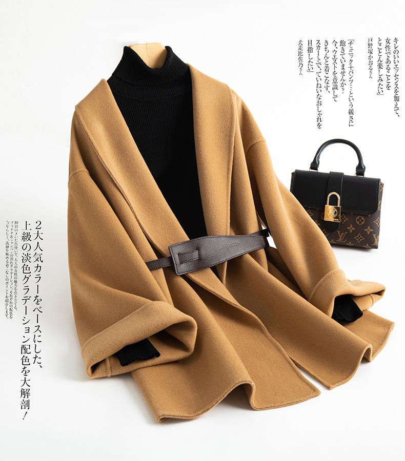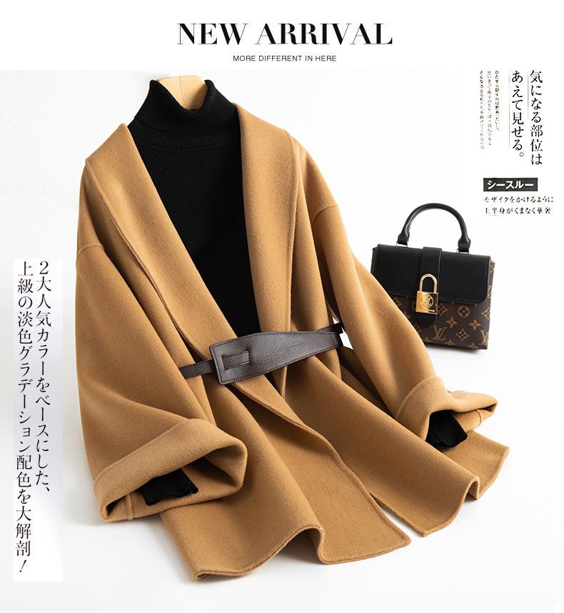 Abrigo de Cachemira de Doble Cara para Mujer de Largo Medio 2023 Otoño e Invierno Nuevo Pequeño Cabo Abrigo de Lana Negro
