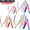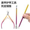 | Nueva plancha de uñas de acero inoxidable de dos colores con degradado, removedor de piel muerta, tenedor, tijeras para eliminar piel muerta, lima de uñas, herramienta de manicura |