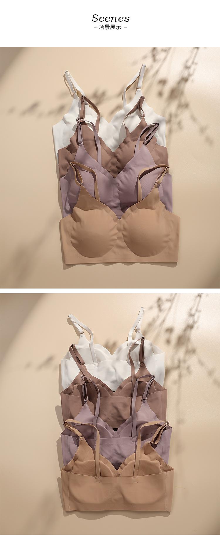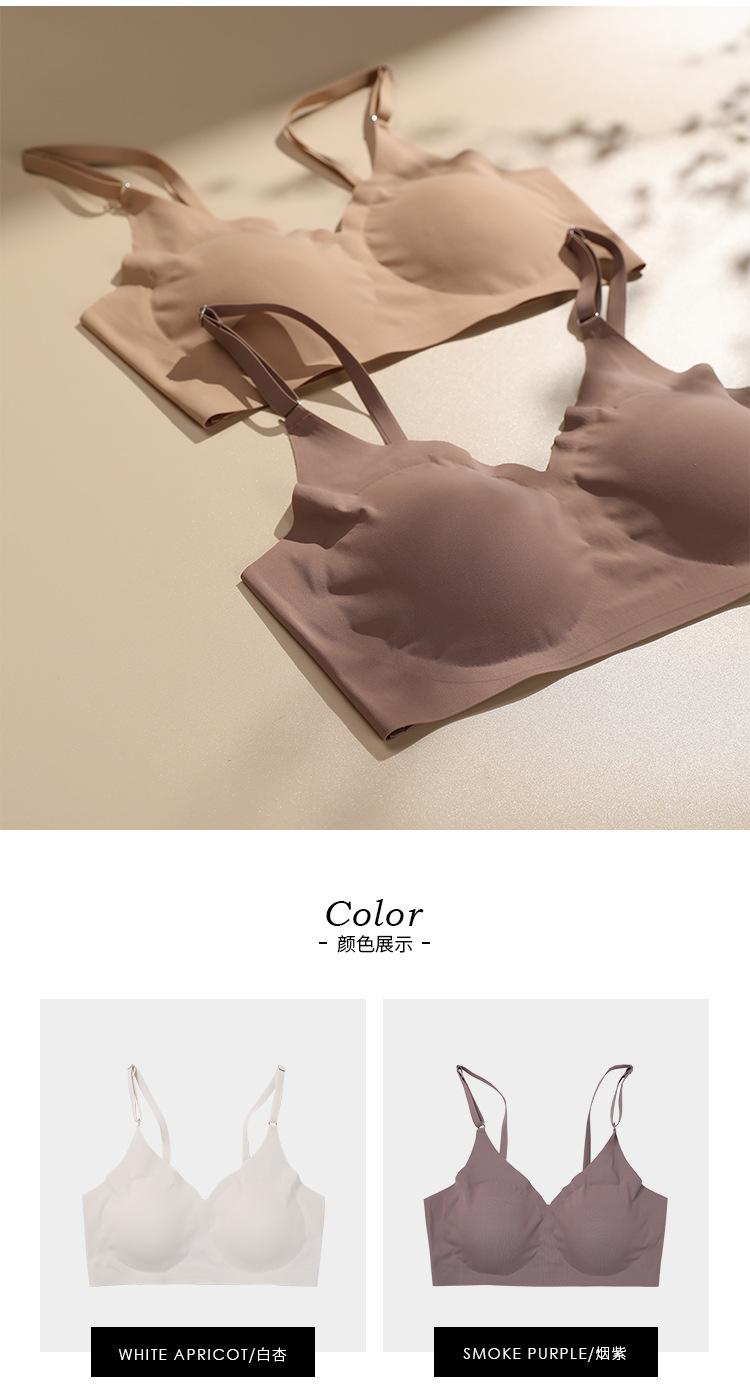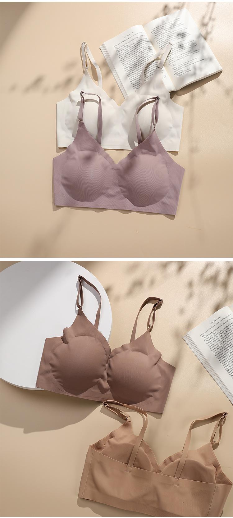 Ropa Interior de Base Líquida Sin Costuras para Mujer Copa Que No Se Mueve Recogido Anticaída Invisible Cómodo Sujetador Sin Aros Fino Mujer