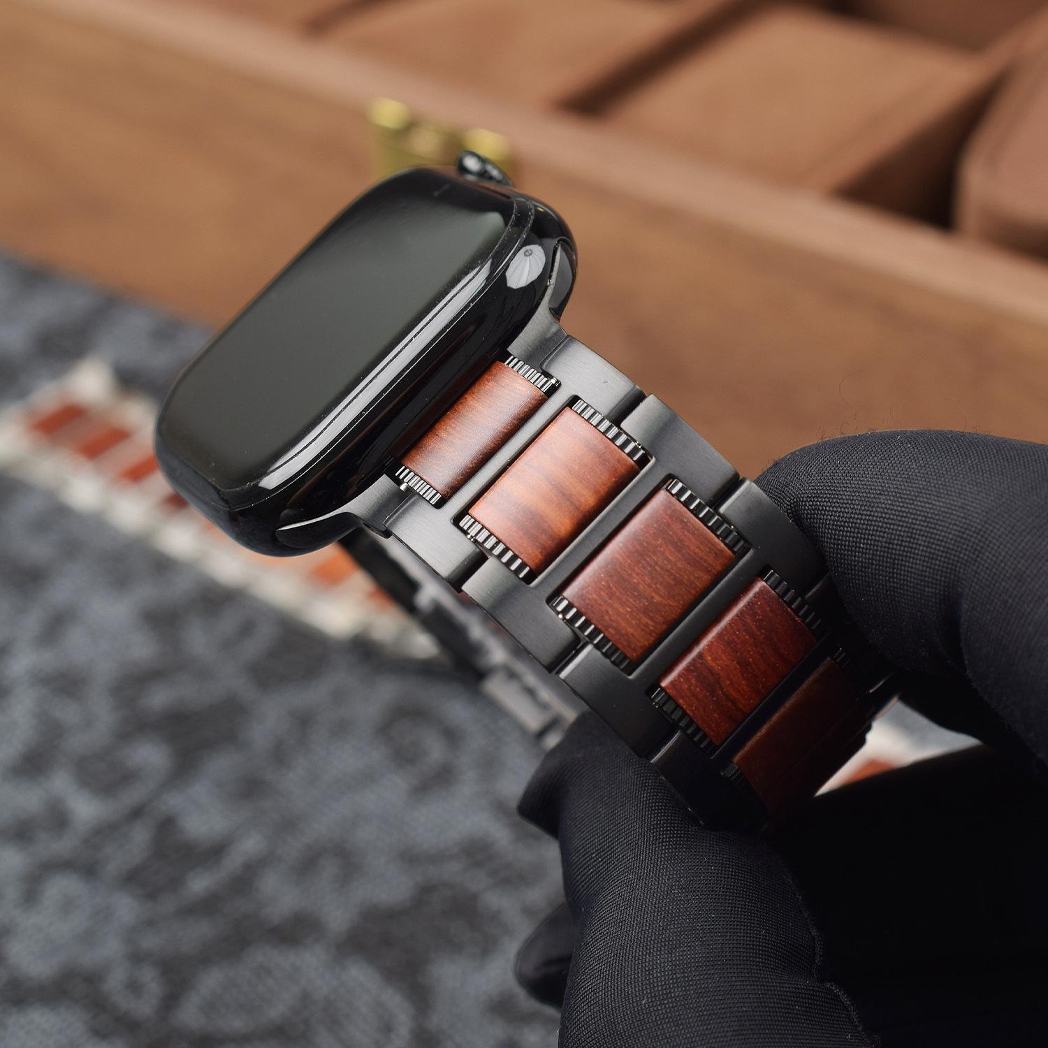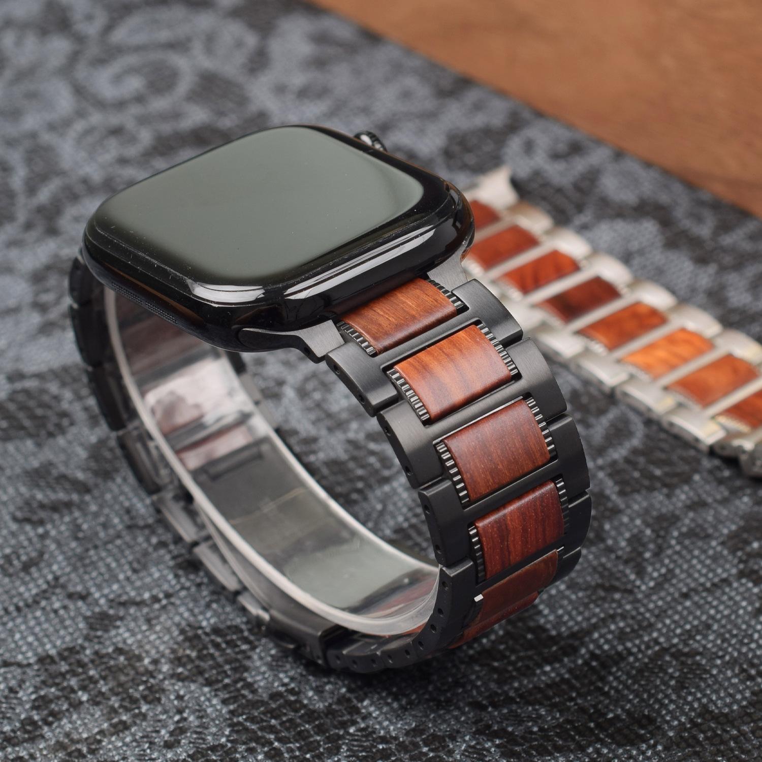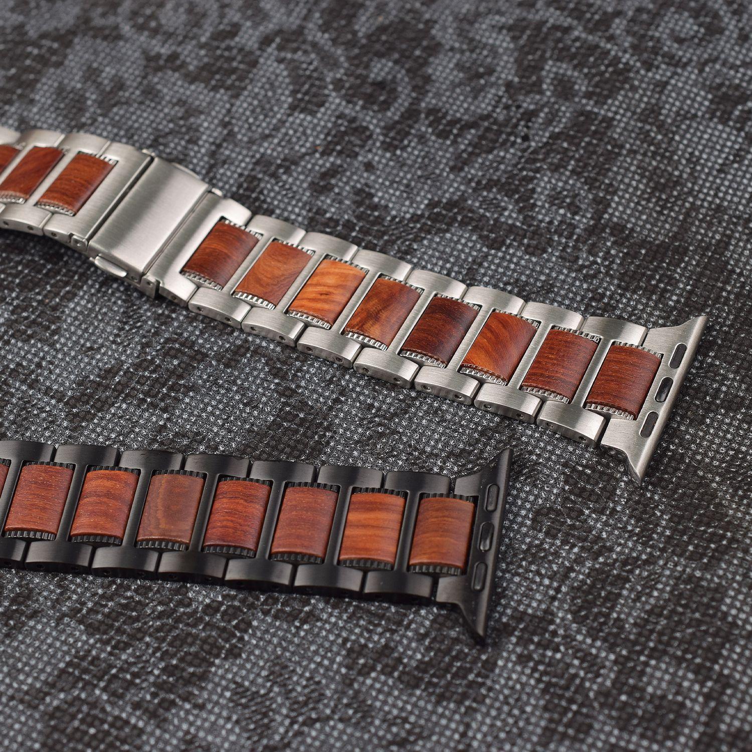 Adecuado para Correa de Metal para Apple Ultra Reloj Apple Watch11 Acero Inoxidable Sándalo Correa de Reloj Pulsera de Madera Maciza en Stock