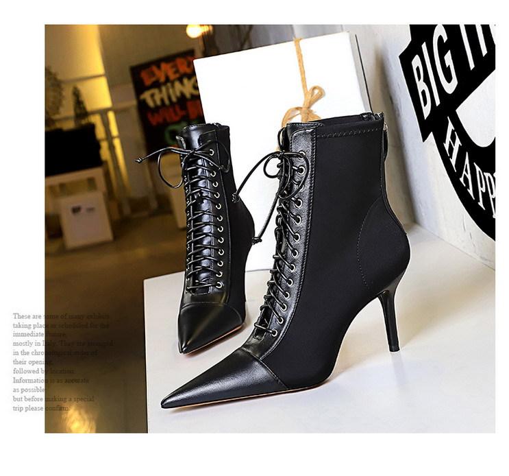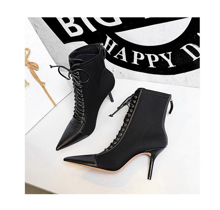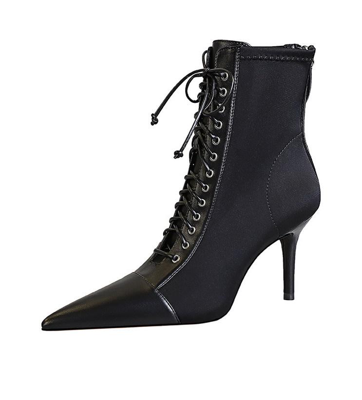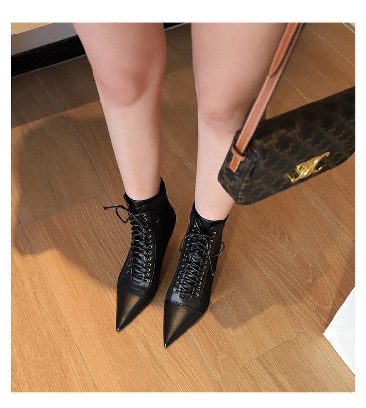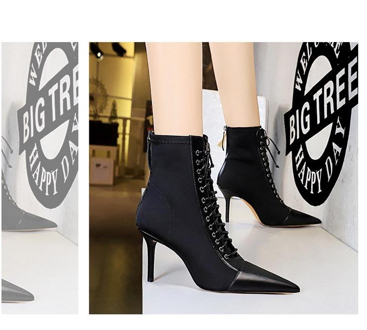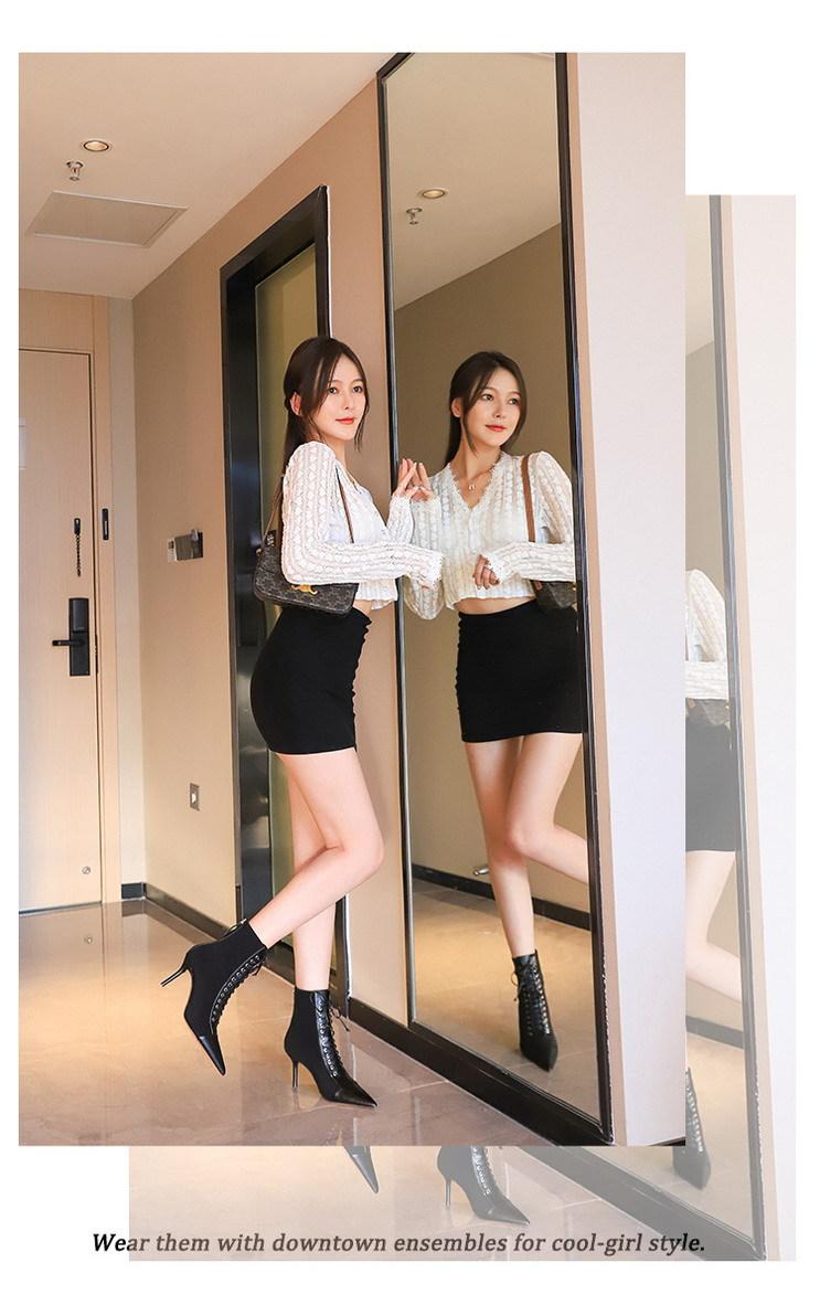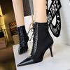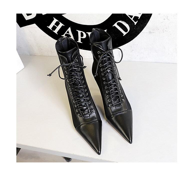 Elementos populares: Moda coreana sexy club nocturno delgado tendencia con cordones de tiras cruzadas botas cortas