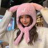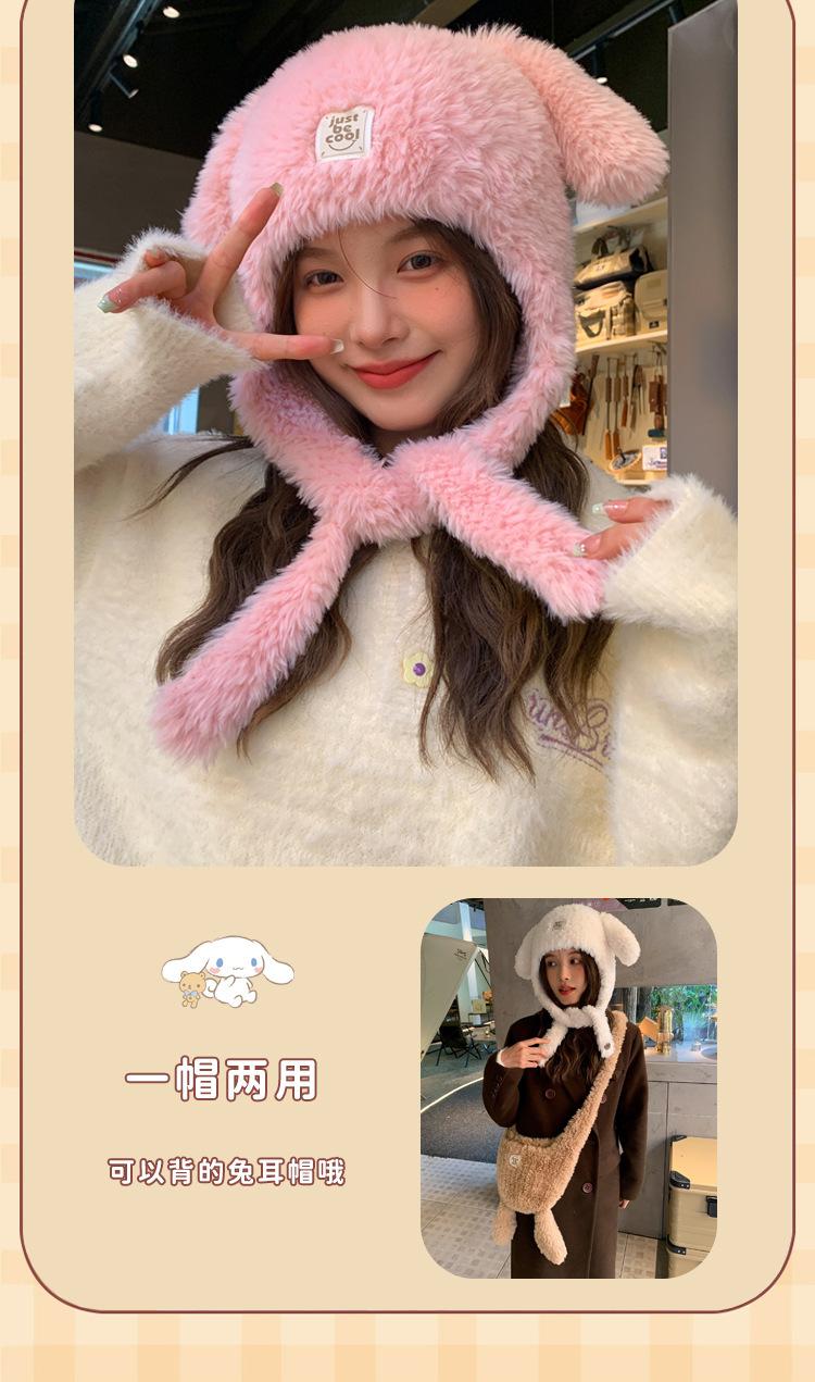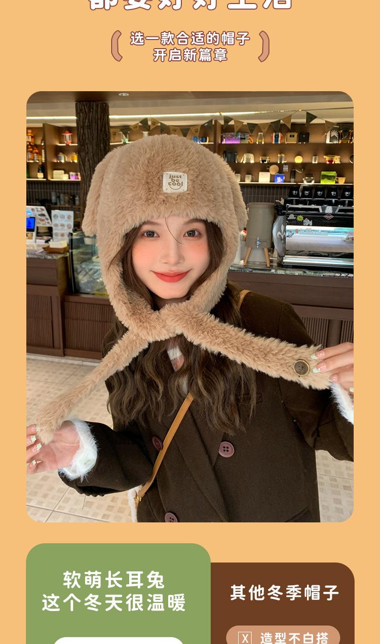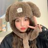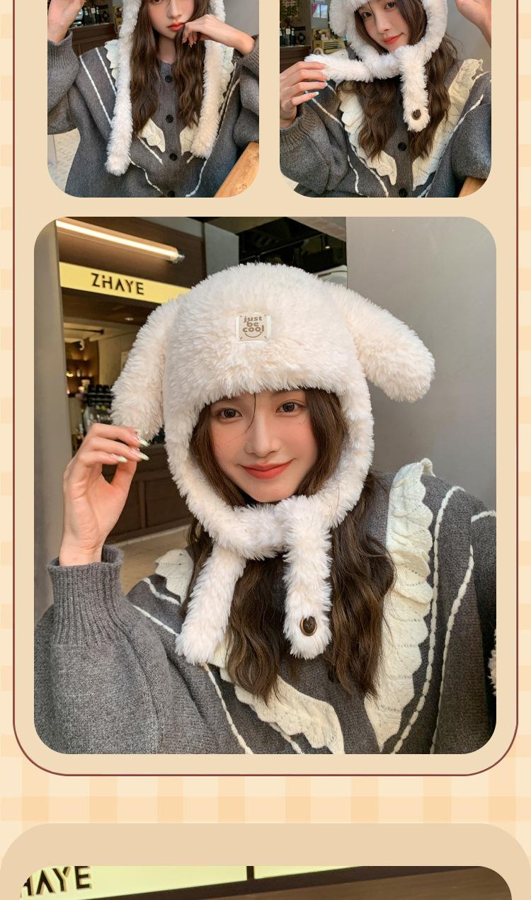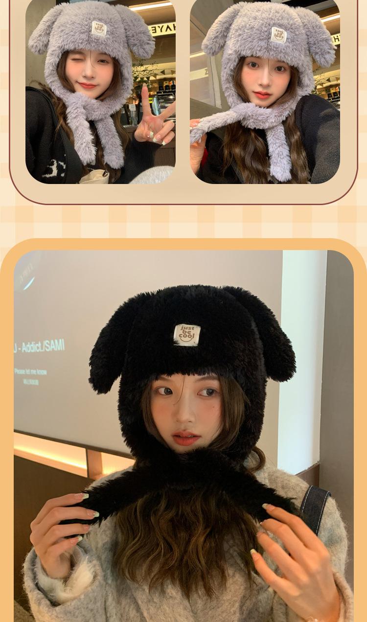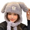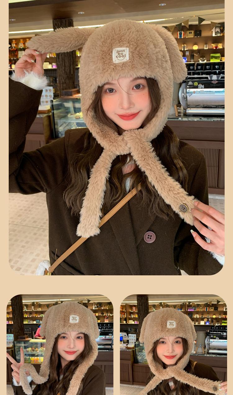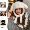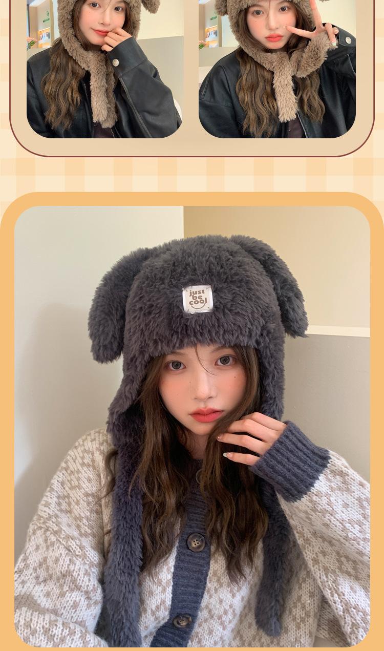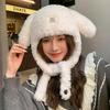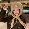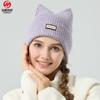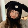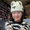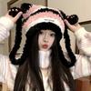 Gorro de lana pequeño con botones de felpa, grueso y cálido, con letras bonitas, para otoño e invierno, de punto coreano para mujer