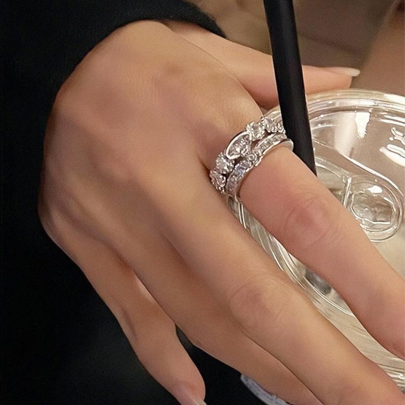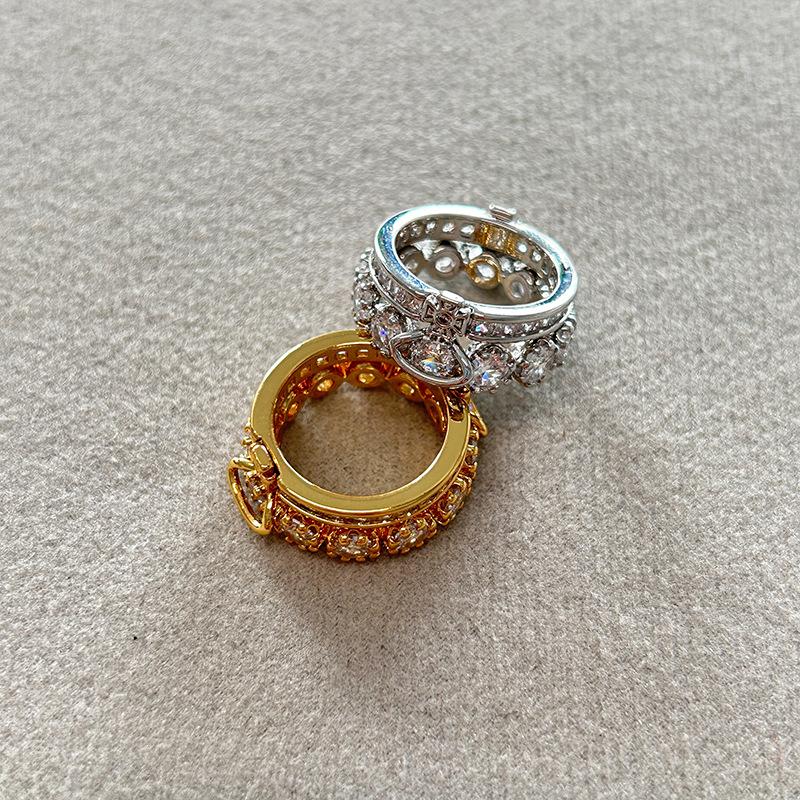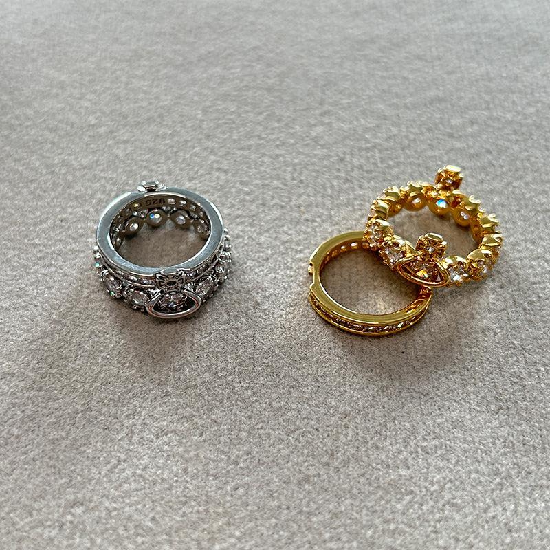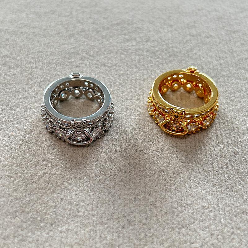 Anillo Saturno Europa y América Doble Capa Incrustado Diamantes Conmutación Geométrico Doble Capa Anillo Joyería de Planeta de Lujo de Clase Alta para Mujeres