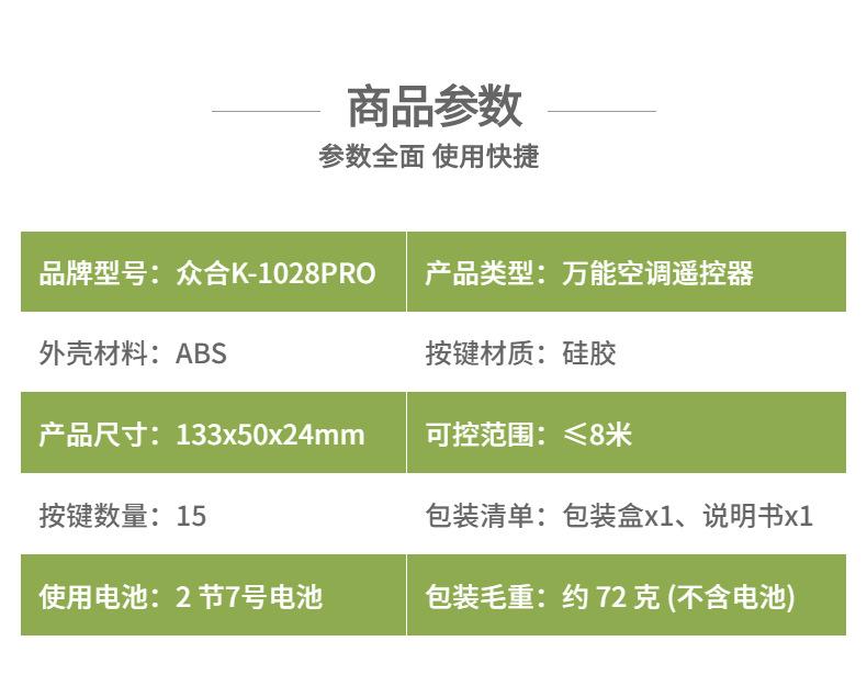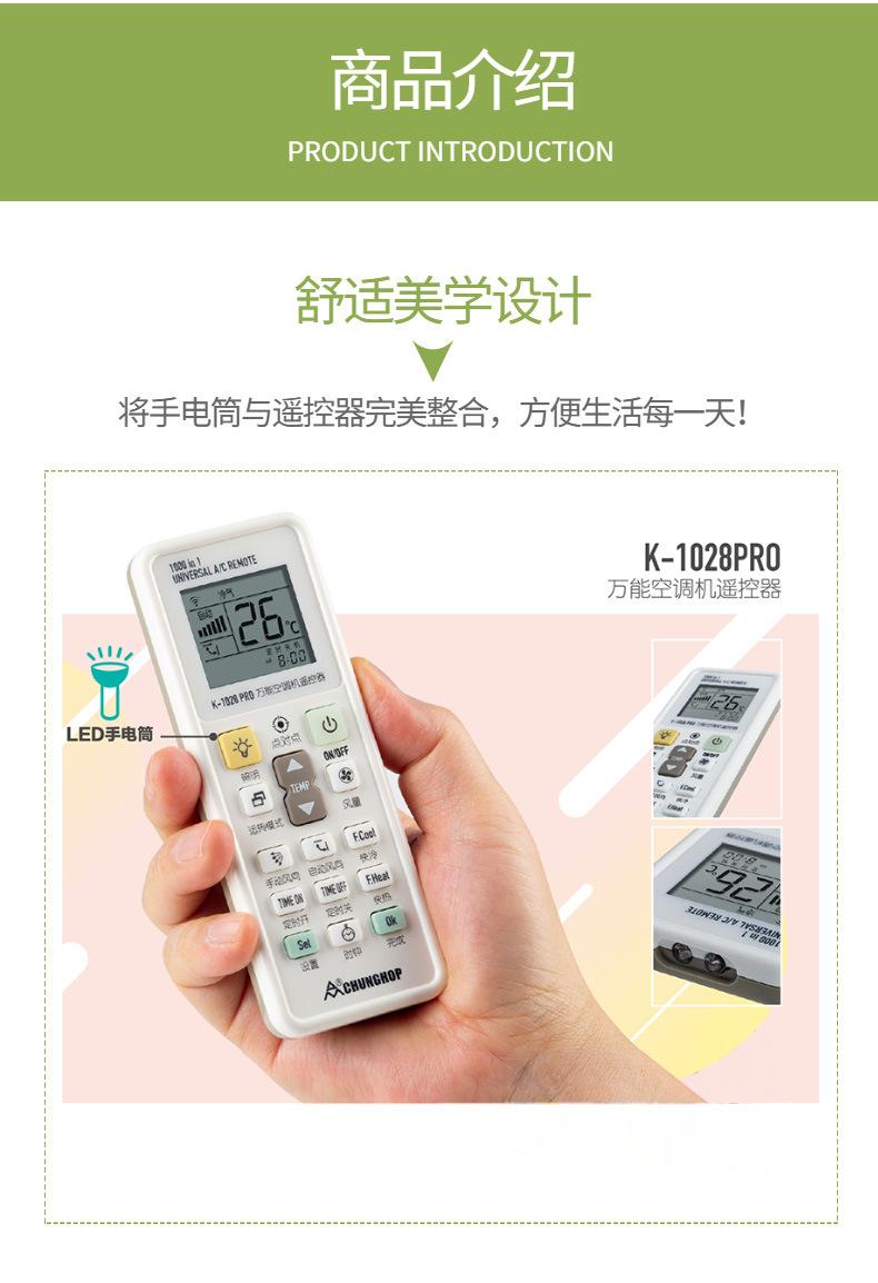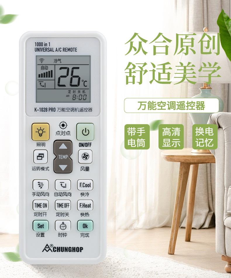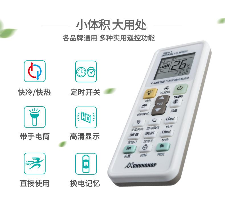 Control remoto universal para aire acondicionado por infrarrojos Zhonghe K-1028PRO, control remoto universal para aire acondicionado con memoria de apagado de marca grande
