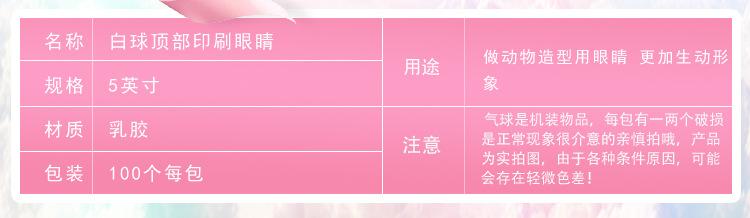 Globo de Látex Blanco de 5 Pulgadas Grueso con Ojos Impresos en la Parte Superior Venta al por Mayor Personaje de Dibujos Animados de Globo de Ojo de Animal Pequeño