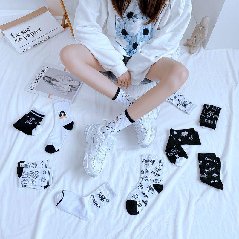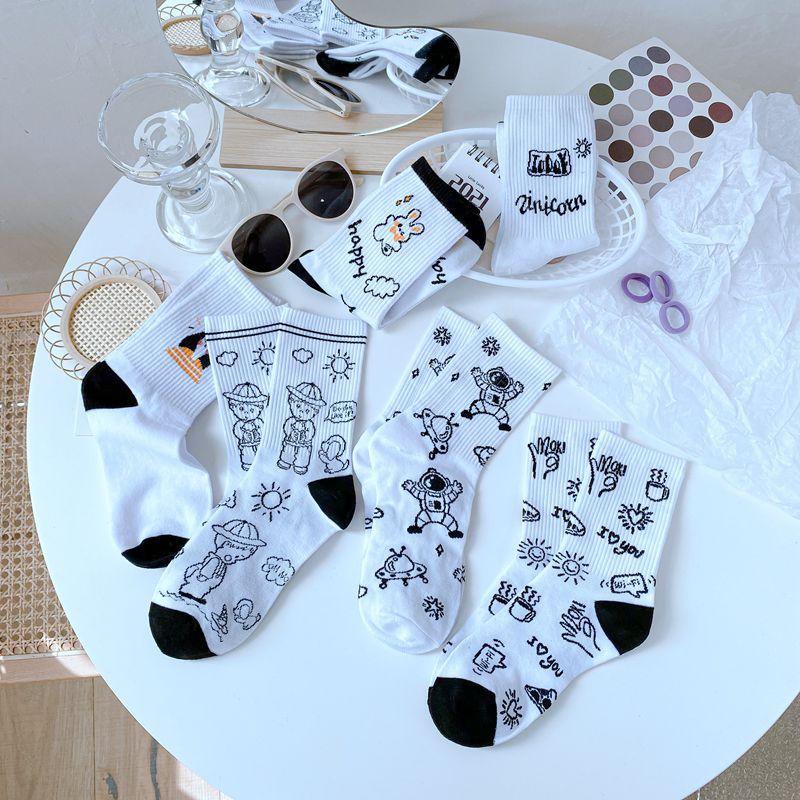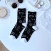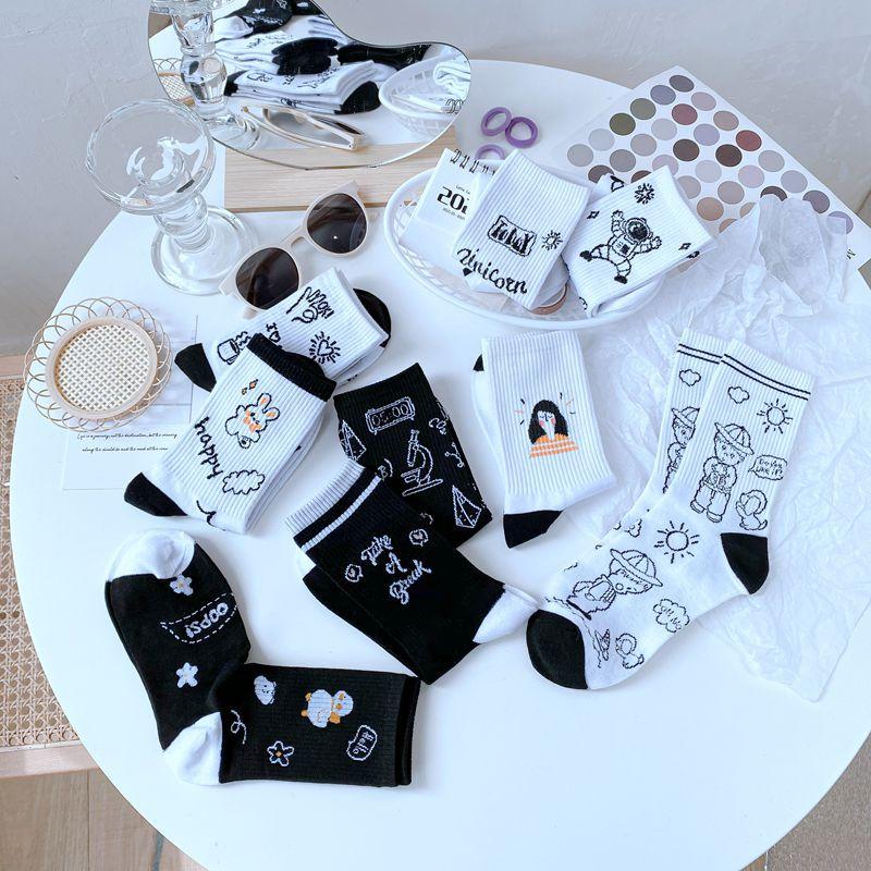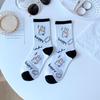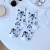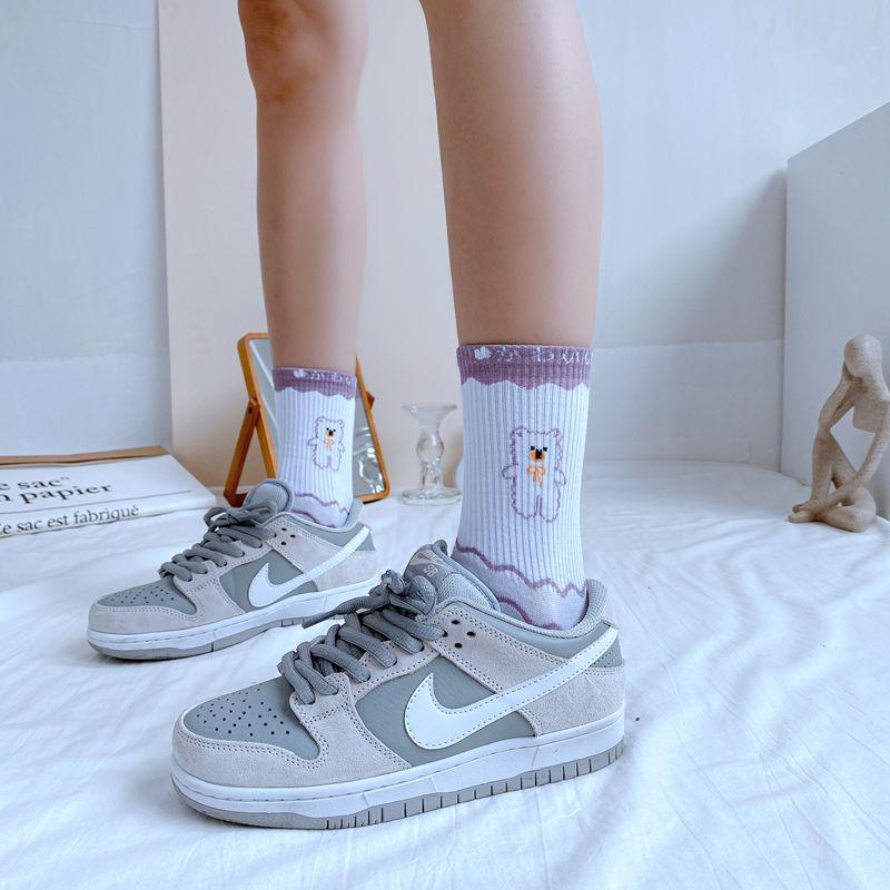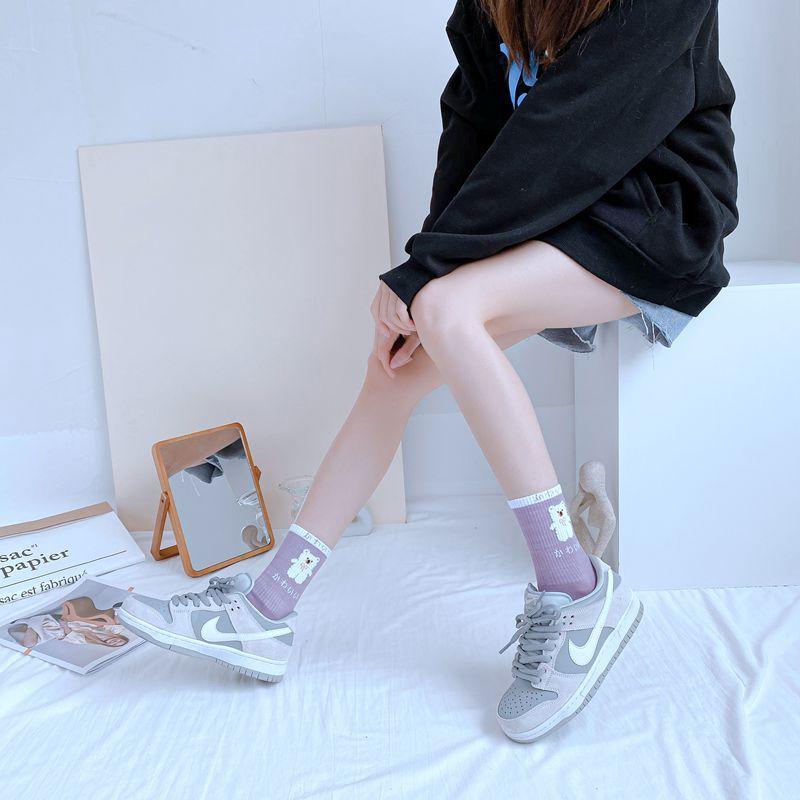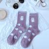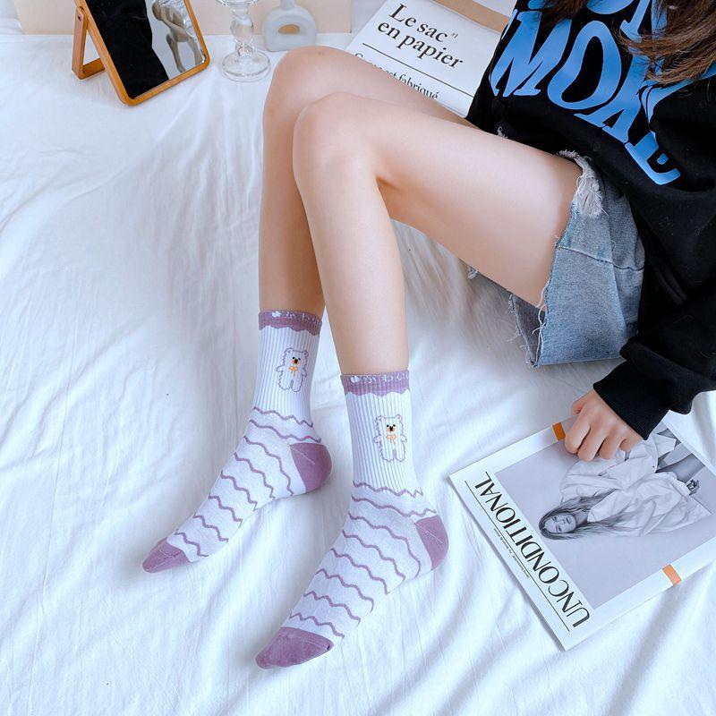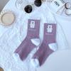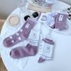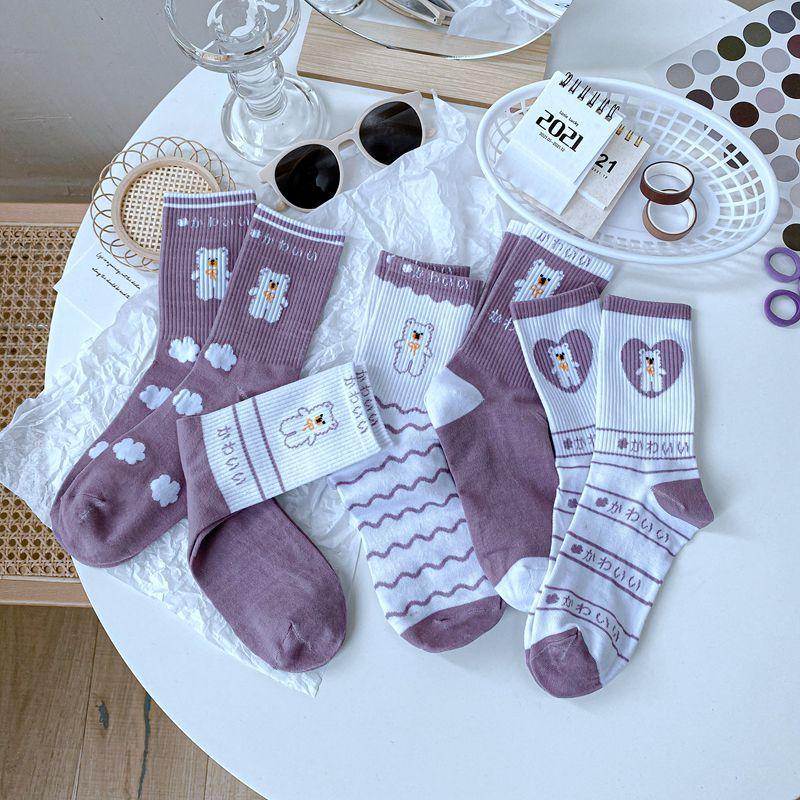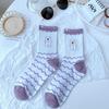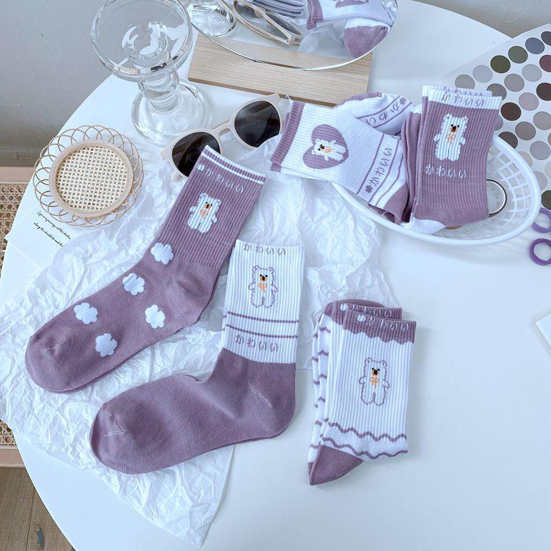 Calcetines de dibujos animados para niños en otoño e invierno nuevos oso púrpura estilo universitario japonés blanco y negro calcetines lindos de moda