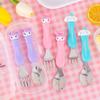 Cuchara tenedor infantil de alto valor de dibujos animados de acero inoxidable de grado alimenticio vajilla multifuncional ins portátil juego de cuchara tenedor 304