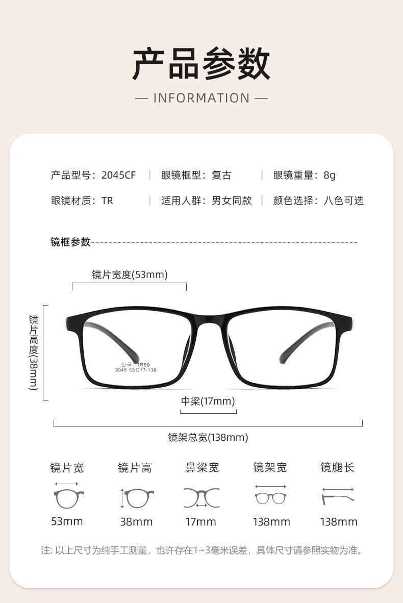 Gafas Danyang al por mayor de moda ultraligera ultraligera TR90 marco negro gafas marco para hombres y mujeres miopía se puede equipar con la cantidad de marcos de gafas