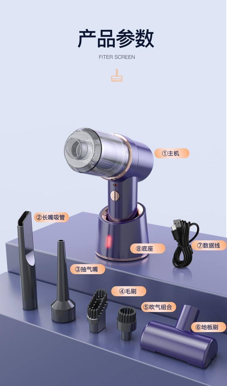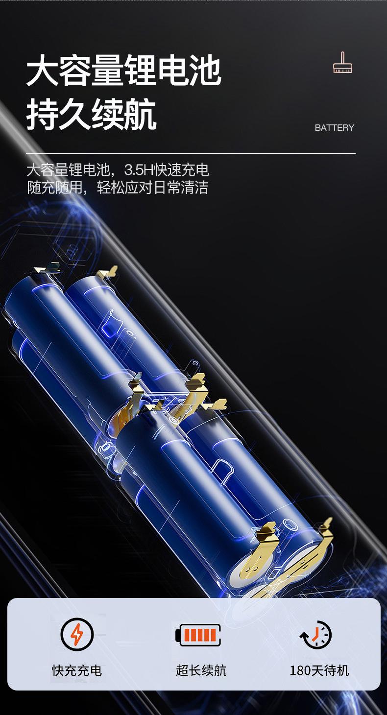 Accesorios estándar: Host × 1, cable de carga Tipo-C × 1, popote × 1, cepillo × 1, cepillo redondo × 1, boquilla × 1, cepillo para pisos × 1 (base opcional)
