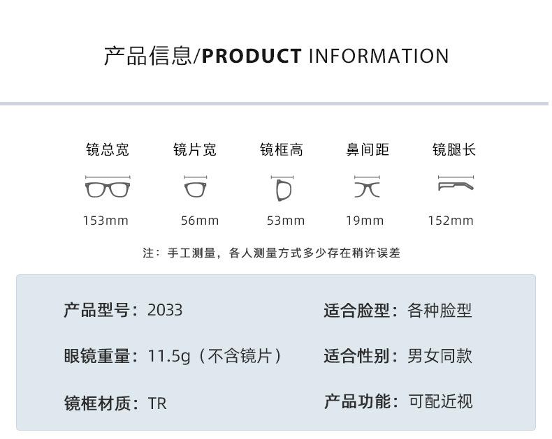 | Danyang gafas ojo de gato mujer anti luz azul retro montura de gafas lisas marrón frío miopía montura TR90 de alta gama ¥8.00 Compre ya | T7157 nueva versión coreana ins montura grande gafas para miopía hombres y mujeres montura cuadrada montura de gafas lisas sin maquillaje net red gafas delgadas ¥11.00 Compre ya | Nuevo estilo anteojos lisos estilo caliente moda callejera disparo transfronterizo ojo de gato Europeo y Americano montura óptica color degradado anti-luz azul TQ5740 ¥13.00 Compre ya | T7182 Versión coreana de montura redonda delgada ligera para miopía para mujer, maquillaje rojo Xiaohongshu literario, gafas planas de tendencia para hombre ¥12.00 Compre ya | |