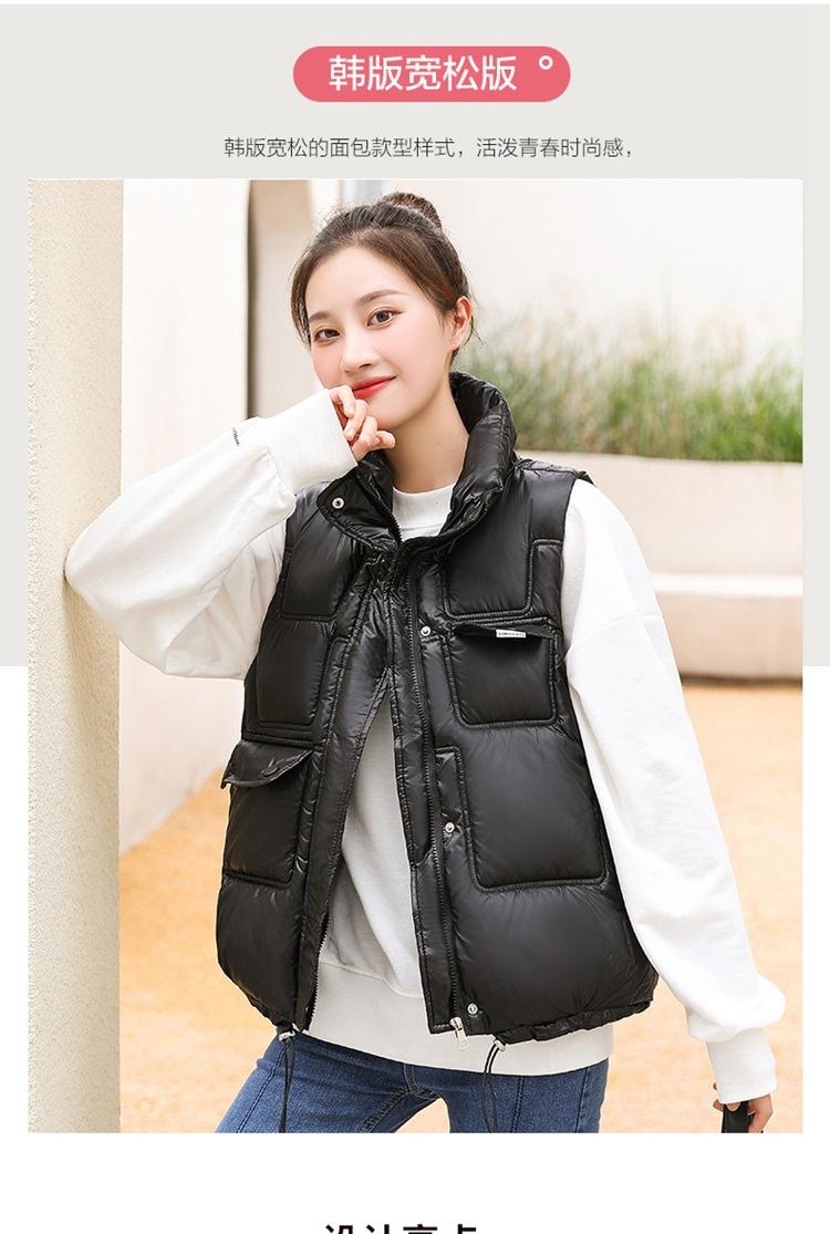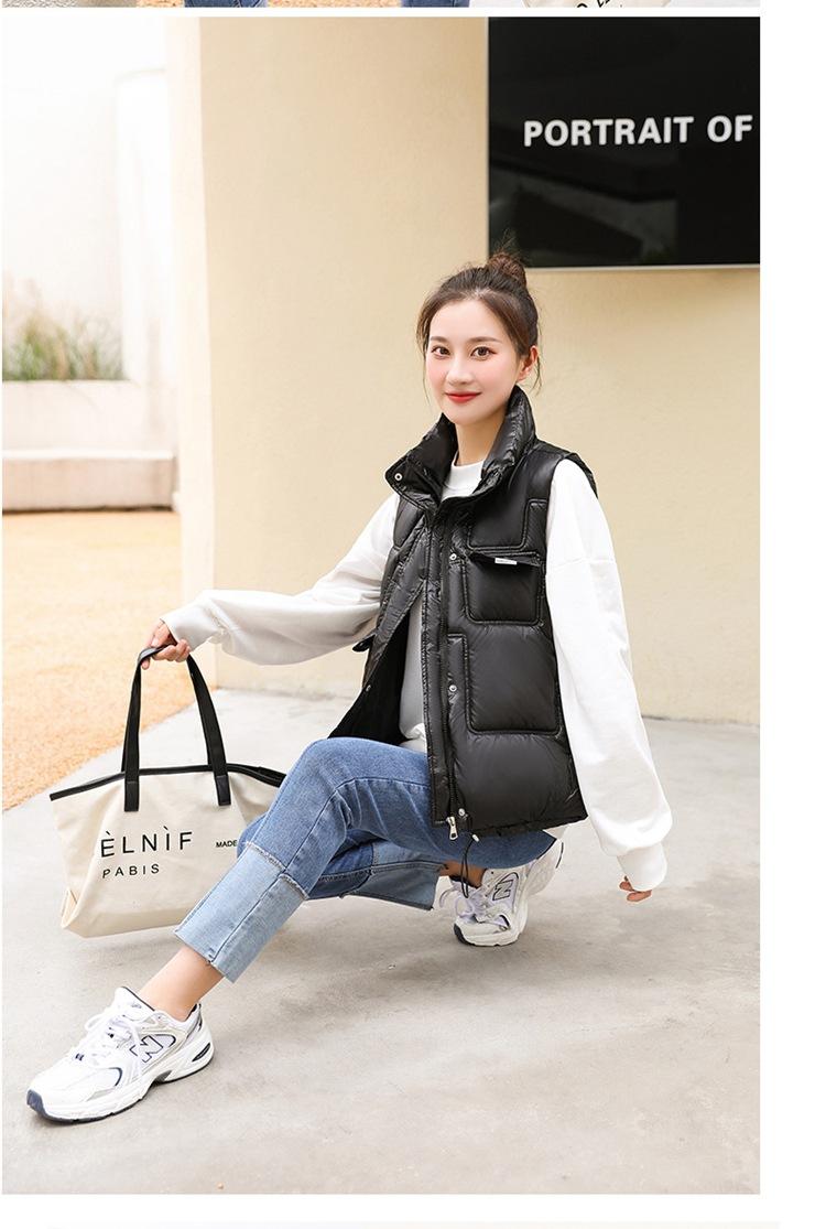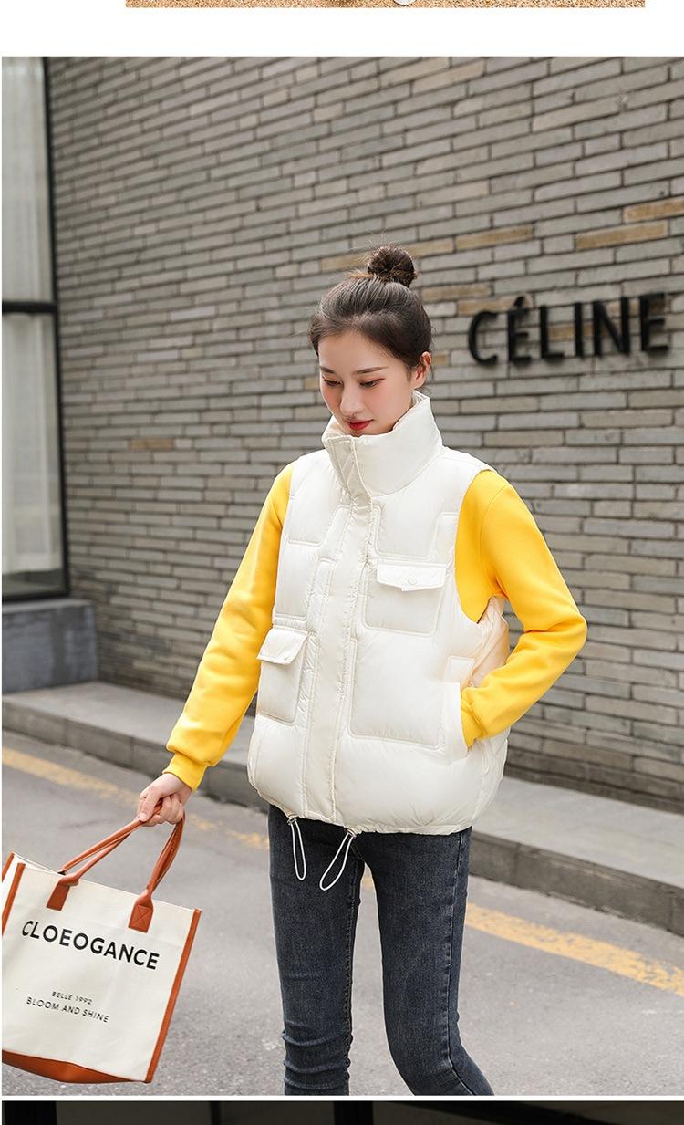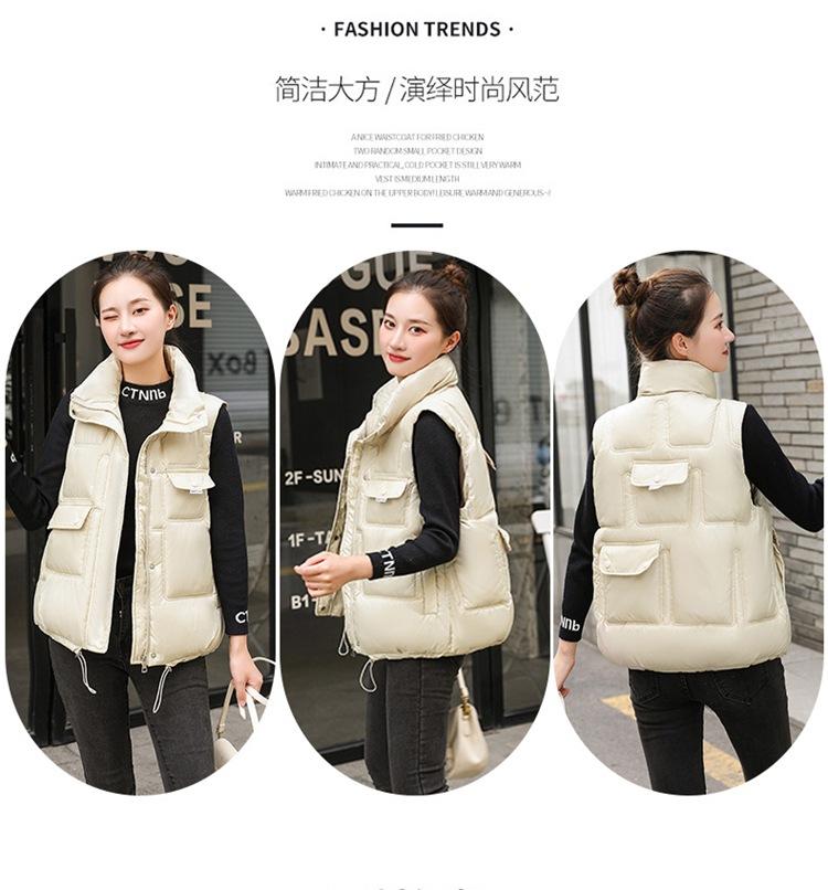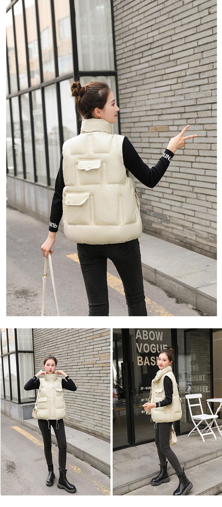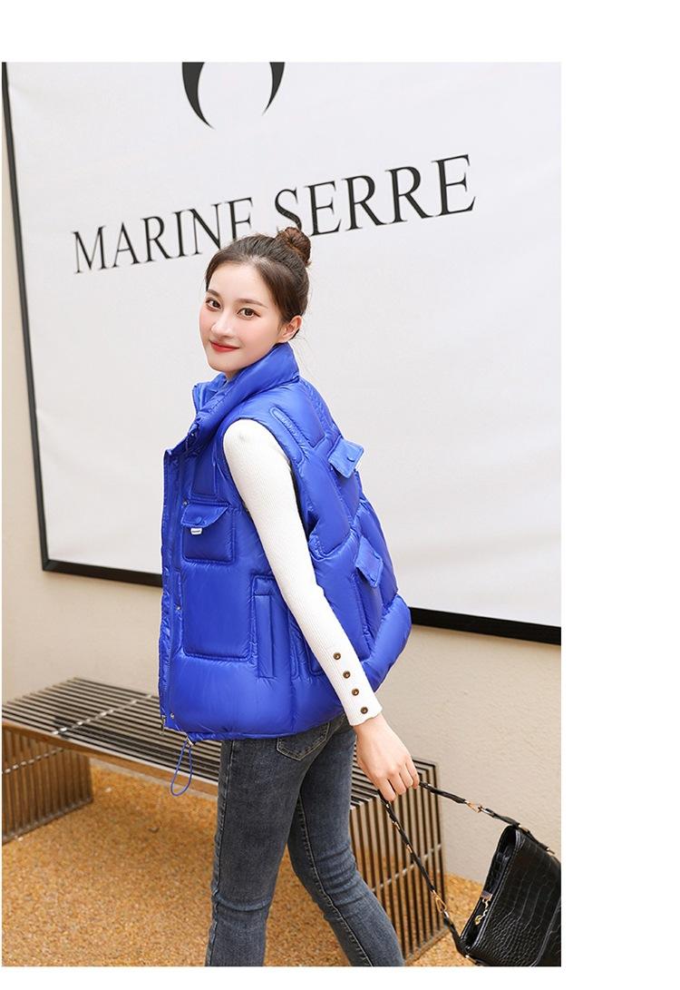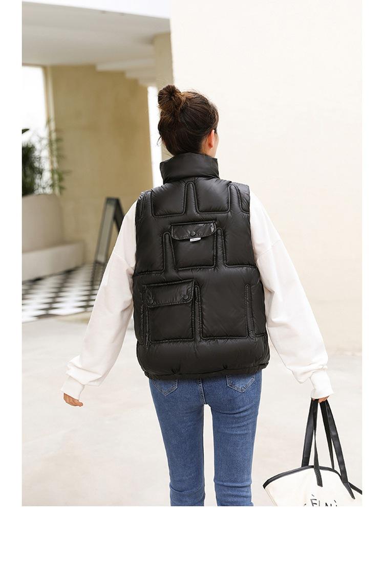 Chaleco de algodón brillante con múltiples bolsillos para mujer, nuevo chaleco holgado corto de estilo coreano para otoño e invierno, chaqueta de algodón