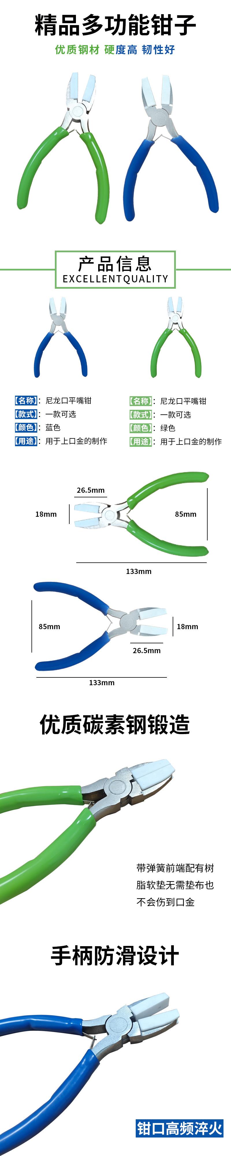 Green Handle Nylon Pliers, Blue handle nylon pliers, A pair of nylon pliers plastic clamp