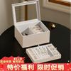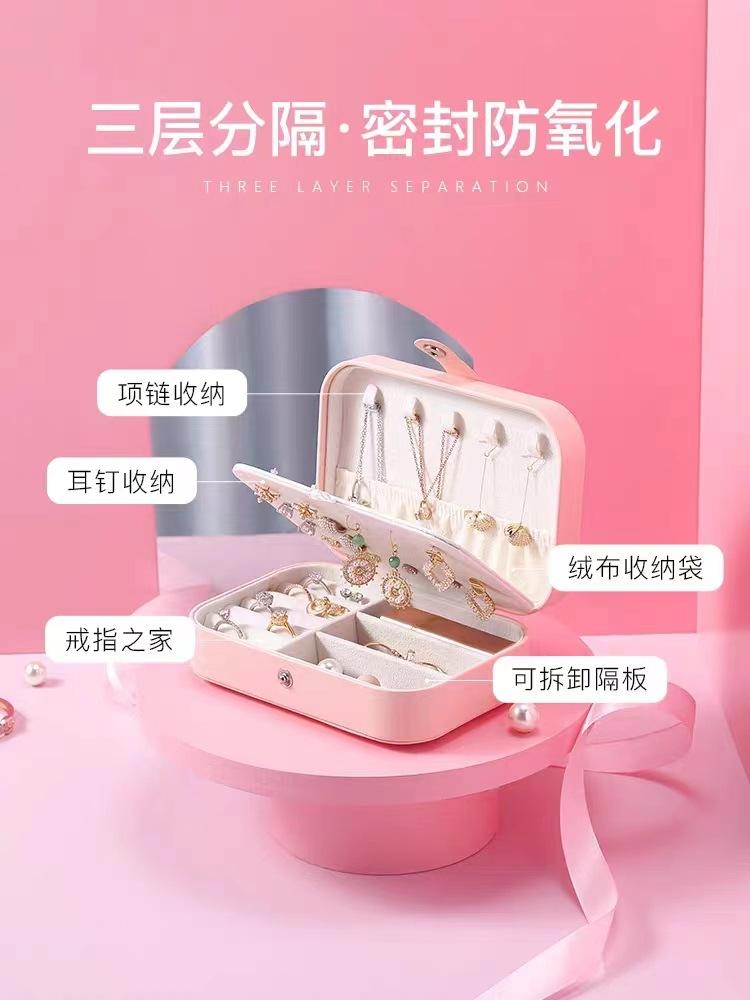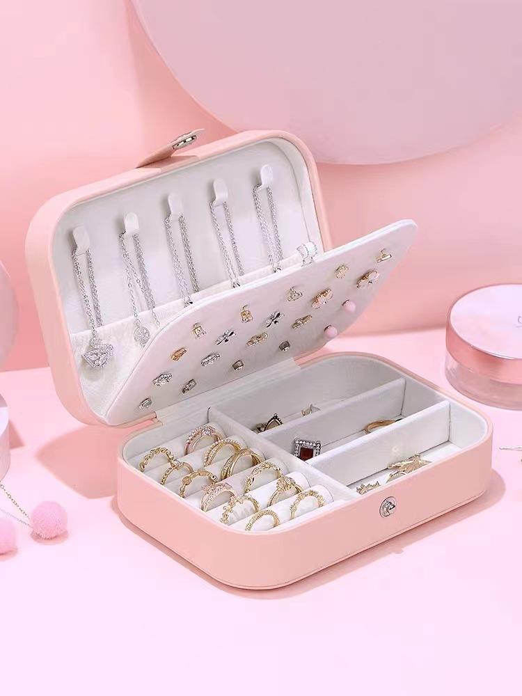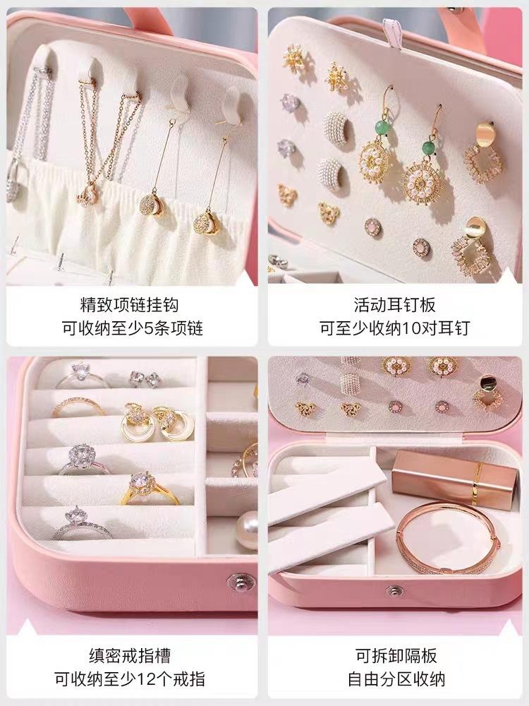 Caja de joyería de poliuretano transfronteriza, caja de almacenamiento para pendientes, collares y anillos, caja de joyería portátil de doble capa y gran capacidad, suministro directo de fábrica