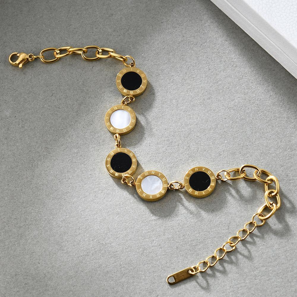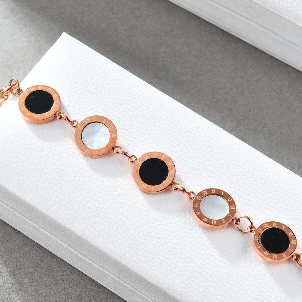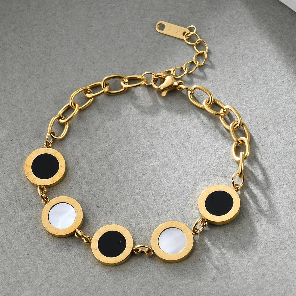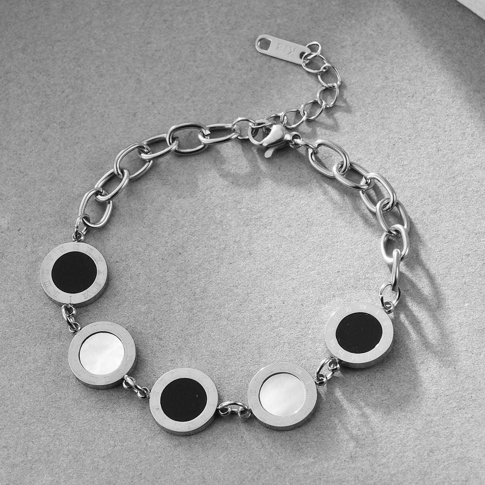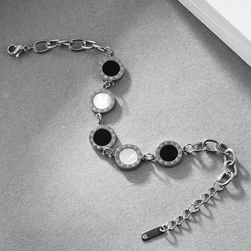 Europa y Estados Unidos ins transfronterizo nuevo acero inoxidable 12MM número romano concha blanca y negra personalidad simple pulsera de acero de titanio mujeres