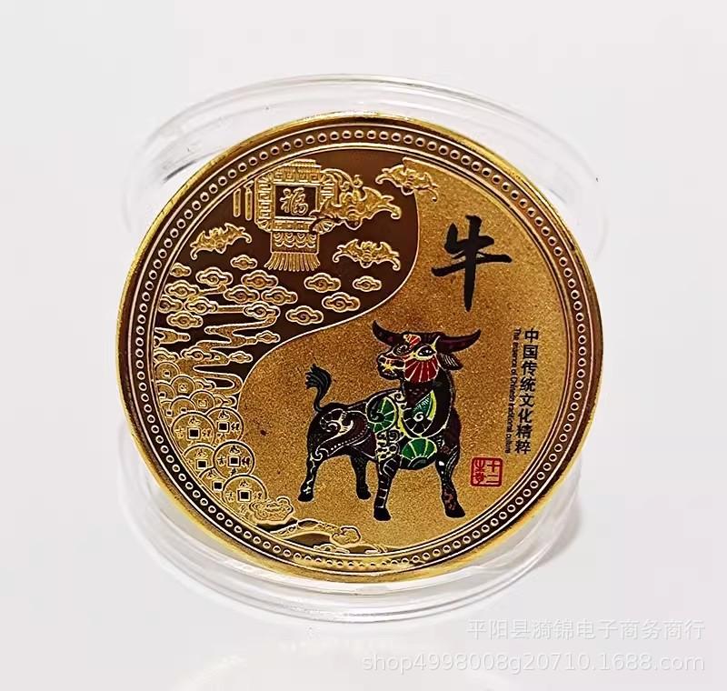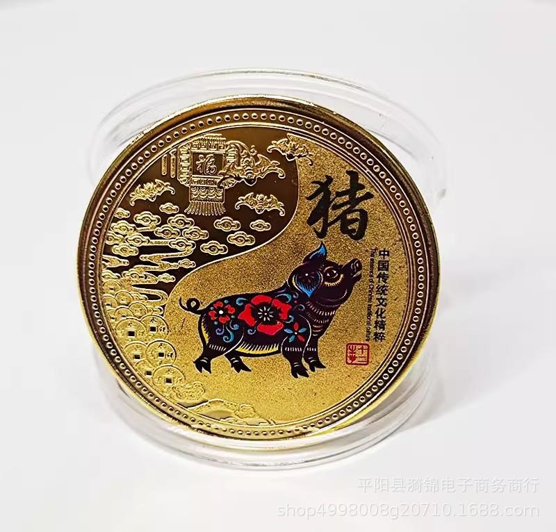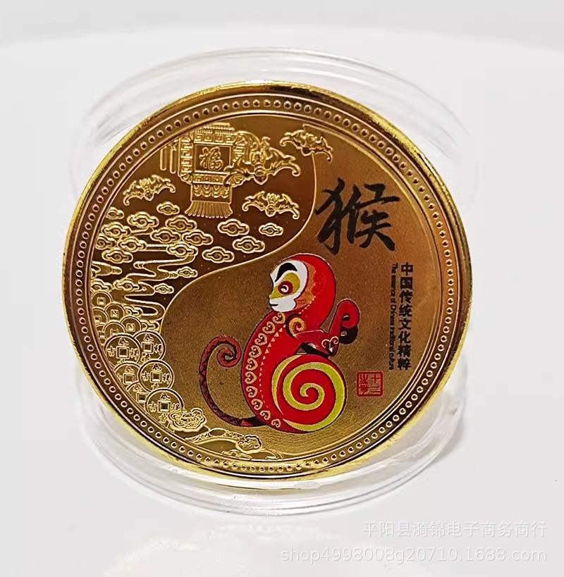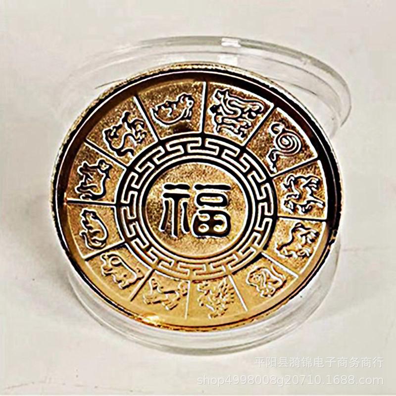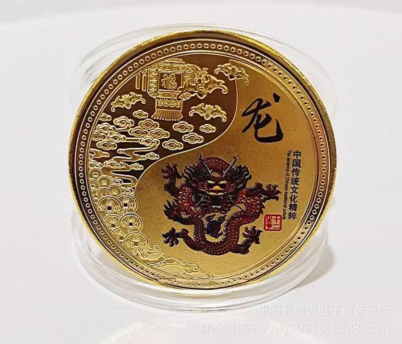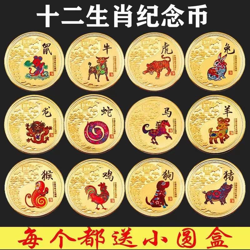 Medalla conmemorativa colorida del zodíaco, conjunto completo de monedas de animales, colección de 12 monedas de oro del zodíaco, regalo de recuerdo de metal