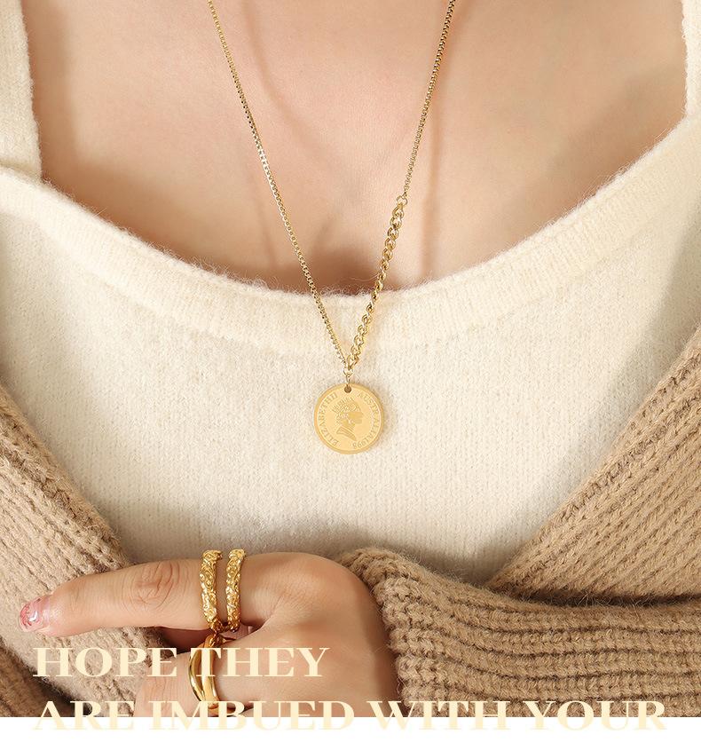 Collar de venta caliente transfronteriza para chicas europeas y americanas, estilo hip hop, personalidad de la moda, retrato, letra redonda, colgante, cadena de suéter, joyería