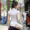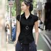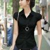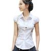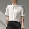 Cárdigan de manga corta blanco liso con cuello grande 2024, elegante, de un solo pecho, cuello redondo, blusa de mujer con cuello cuadrado, poliéster