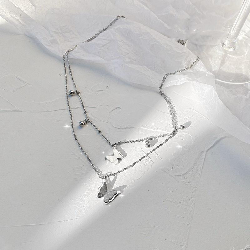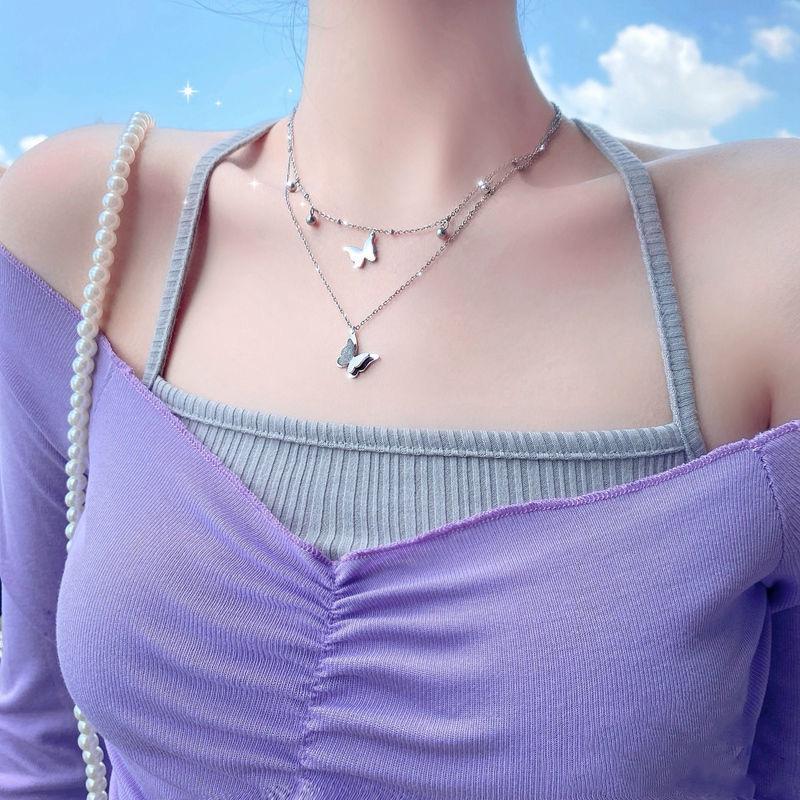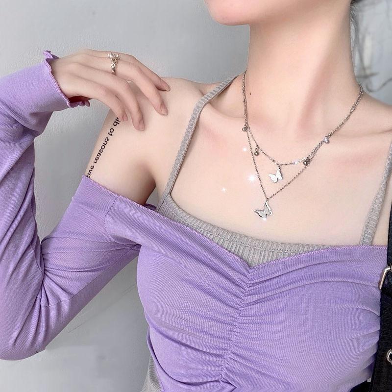 Collar de Mariposa de Doble Capa para Mujer, Cadena para Clavícula, Gargantilla Estilo Hada 2025, Diseño Nicho, Material de Acero de Titanio Trendy
