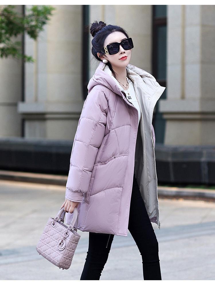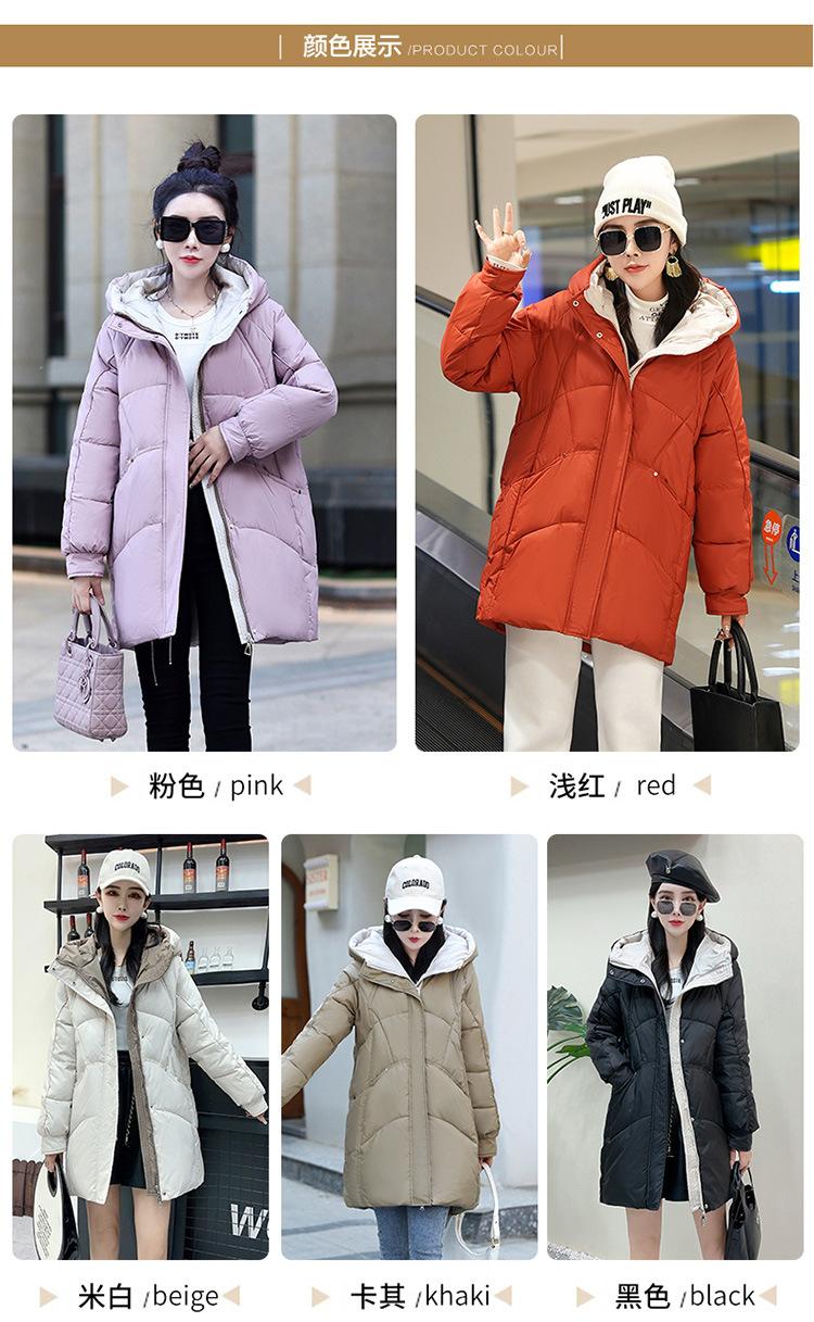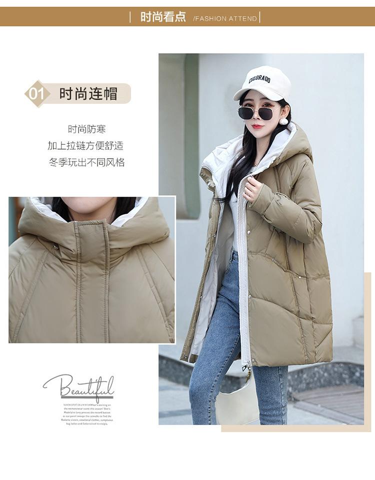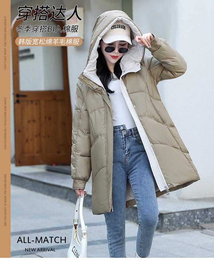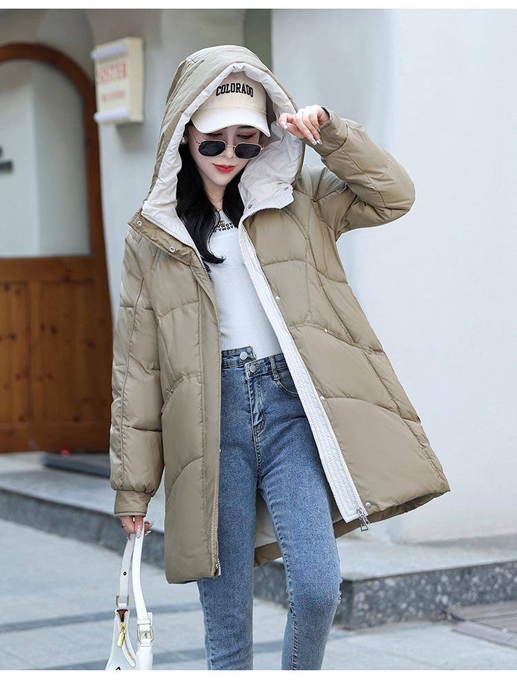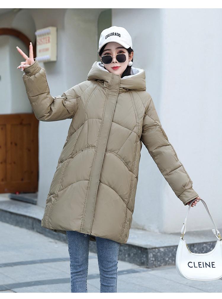 Abrigo acolchado de algodón de invierno 2023 para mujer, con capucha de color sólido, versátil, estilo coreano, de moda, de longitud media, grueso y cálido, acolchado de algodón