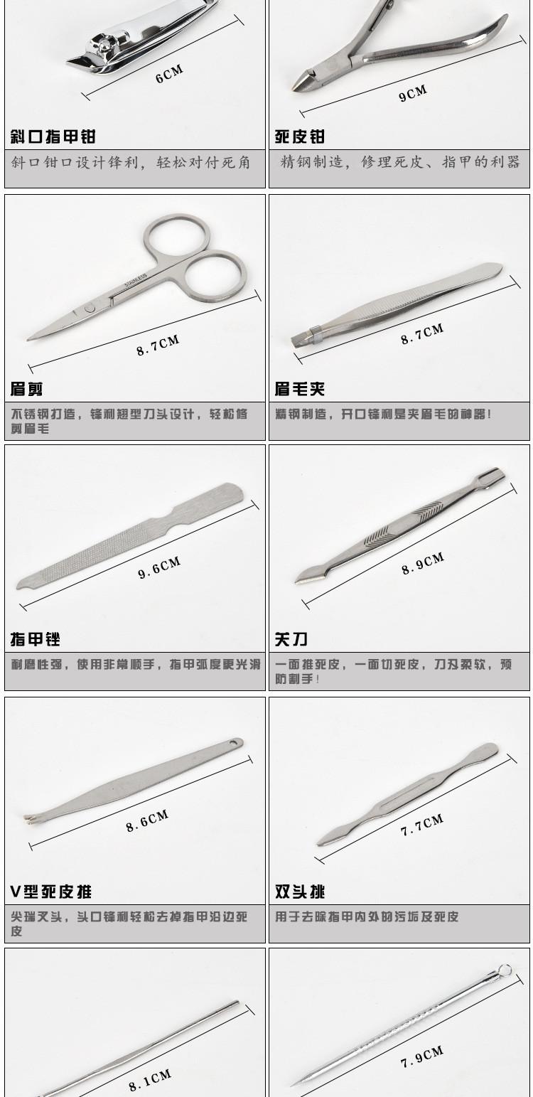 Cortaúñas de acero inoxidable, cortaúñas, herramientas para uñas, cortaúñas, cuchillo de pedicura profesional, juego de 12 piezas