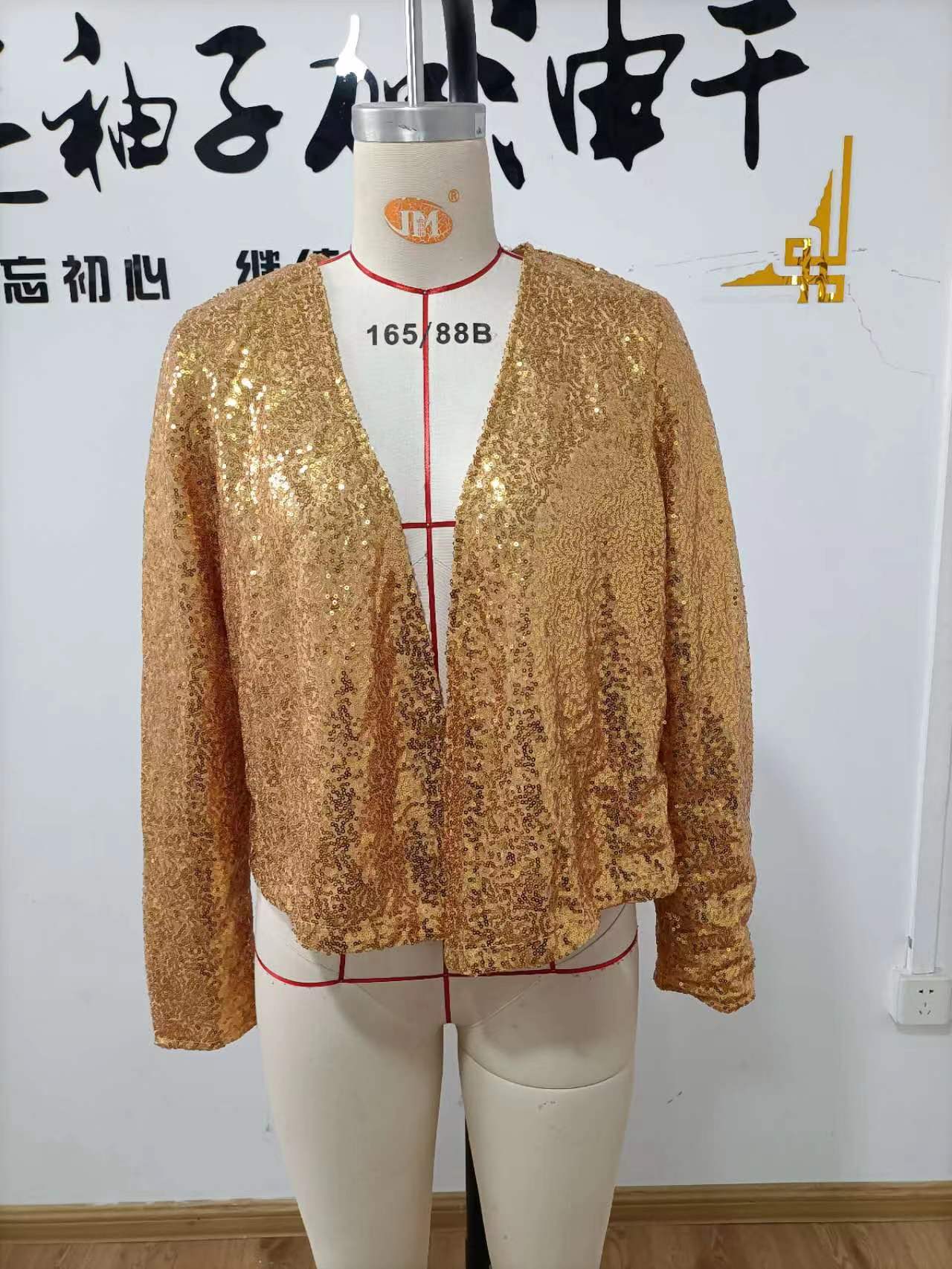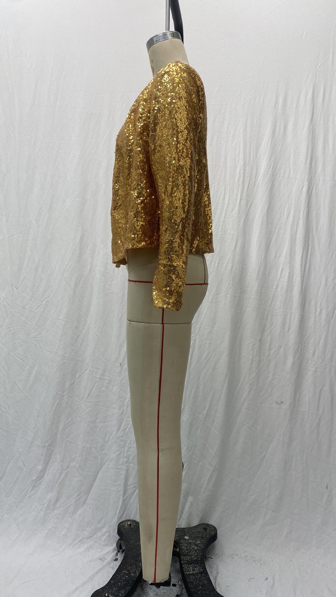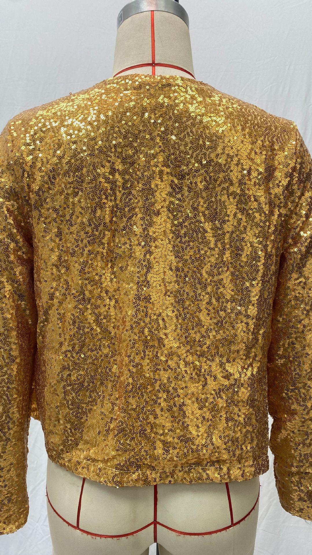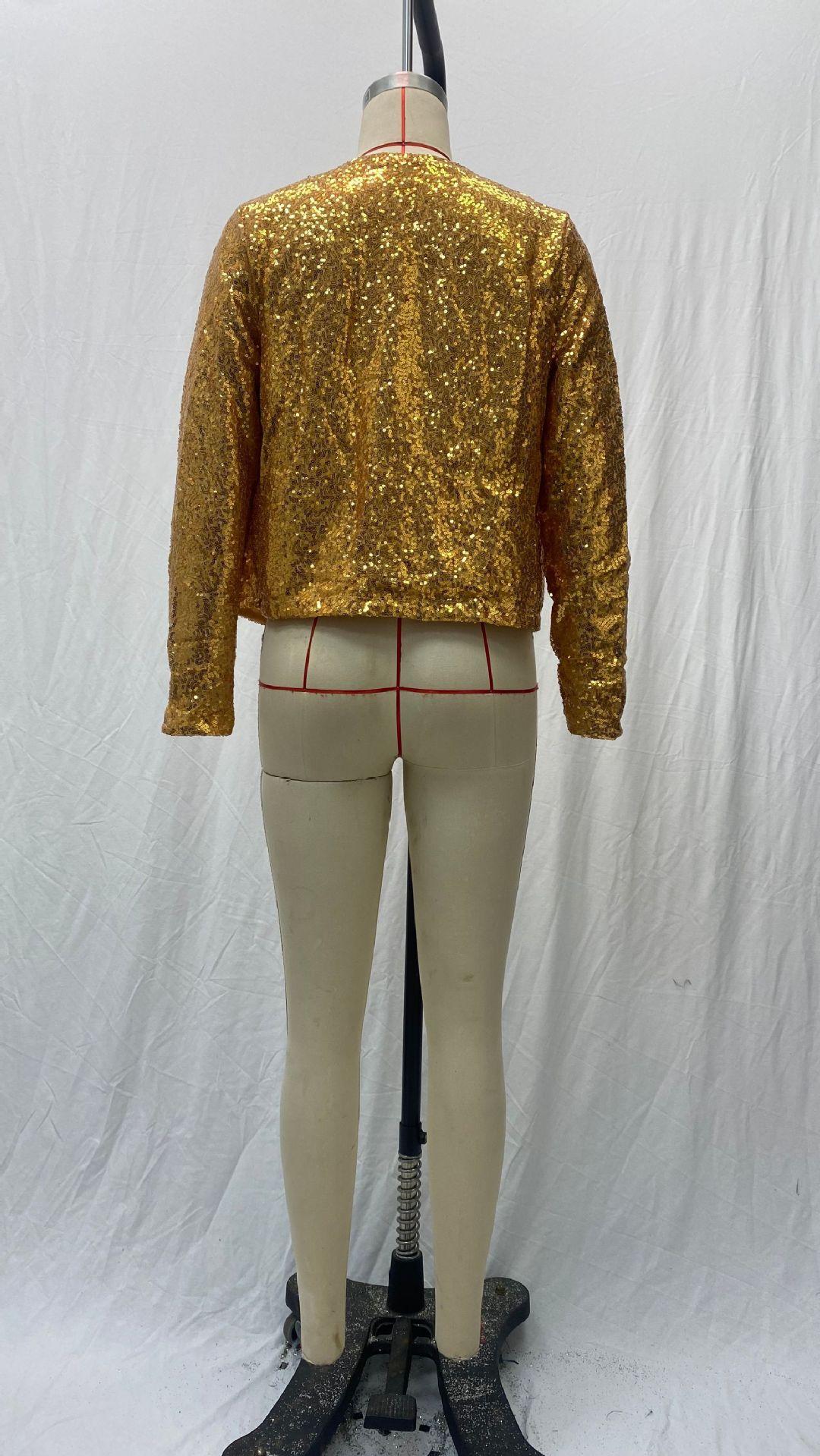 2025 Ropa de Mujer Transfronteriza Europea y Americana Wish Amazon Ebay Moda Combinación de Colores Lentejuelas Chaqueta Corta Casual para Mujer Primavera Mujer