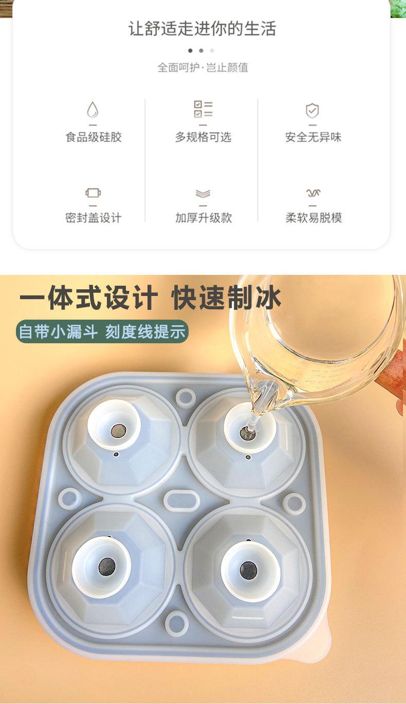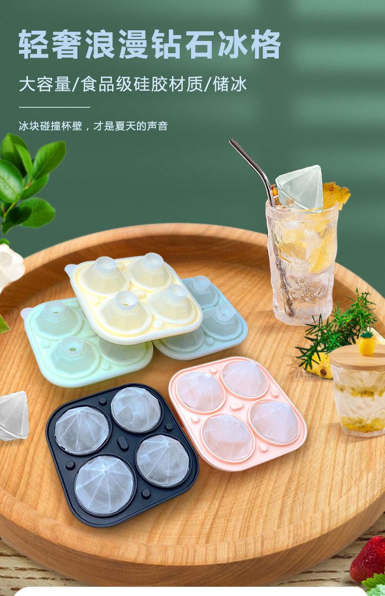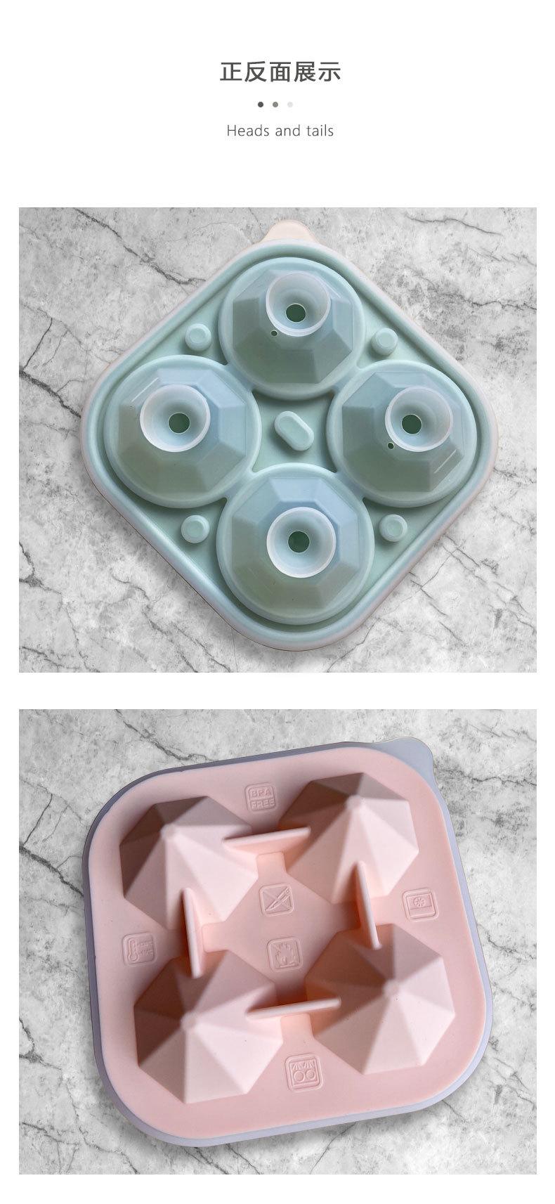 Molde de Bola de Hielo de Diamante para Whisky de Silicona Cubitera Embudo 4 Cubiteras Conectadas Molde para Cubitos de Hielo