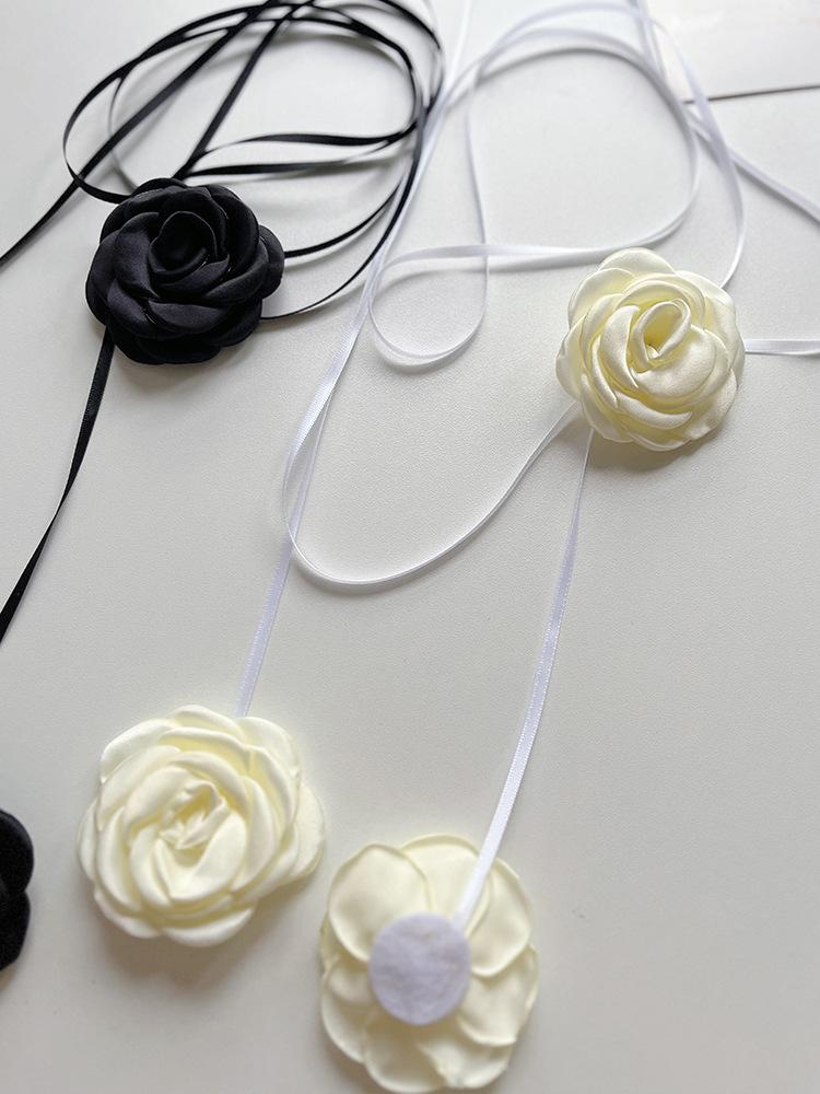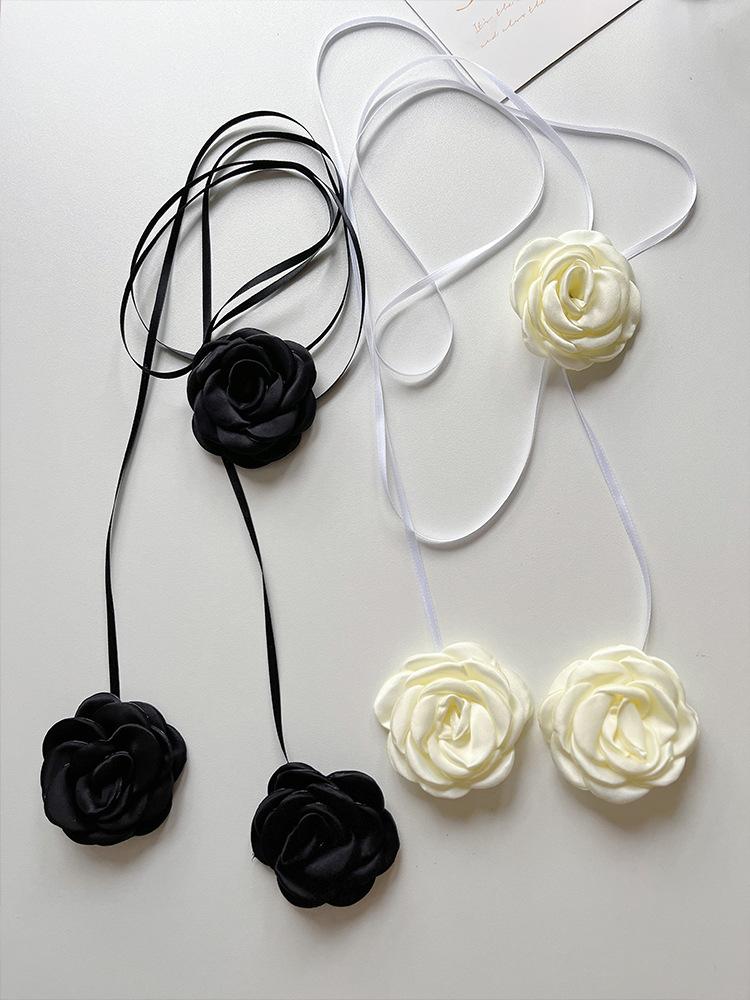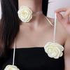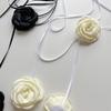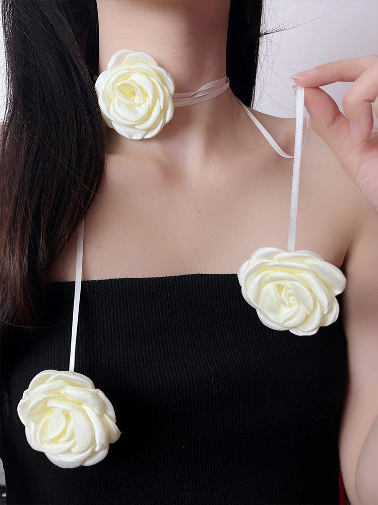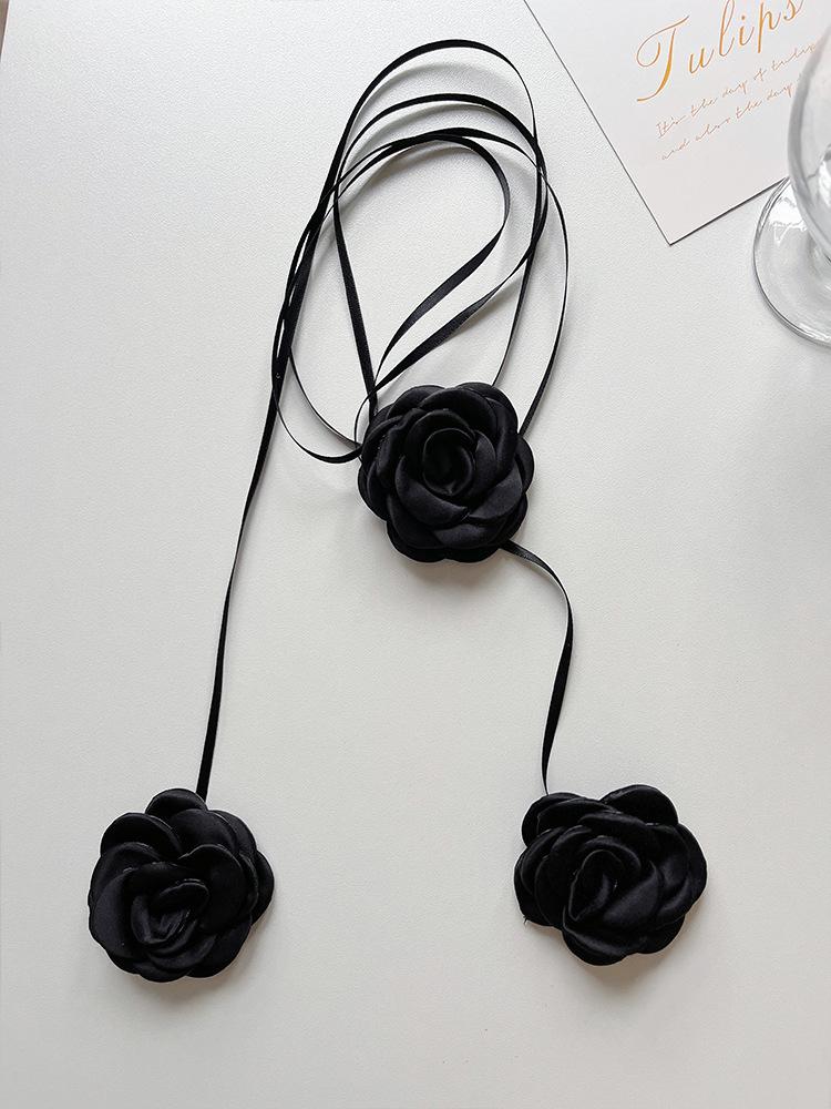 Collar vintage de estilo francés con tres flores conectadas, moderno y elegante, para mujer, con correa para el cuello distintiva y cadena para clavícula.