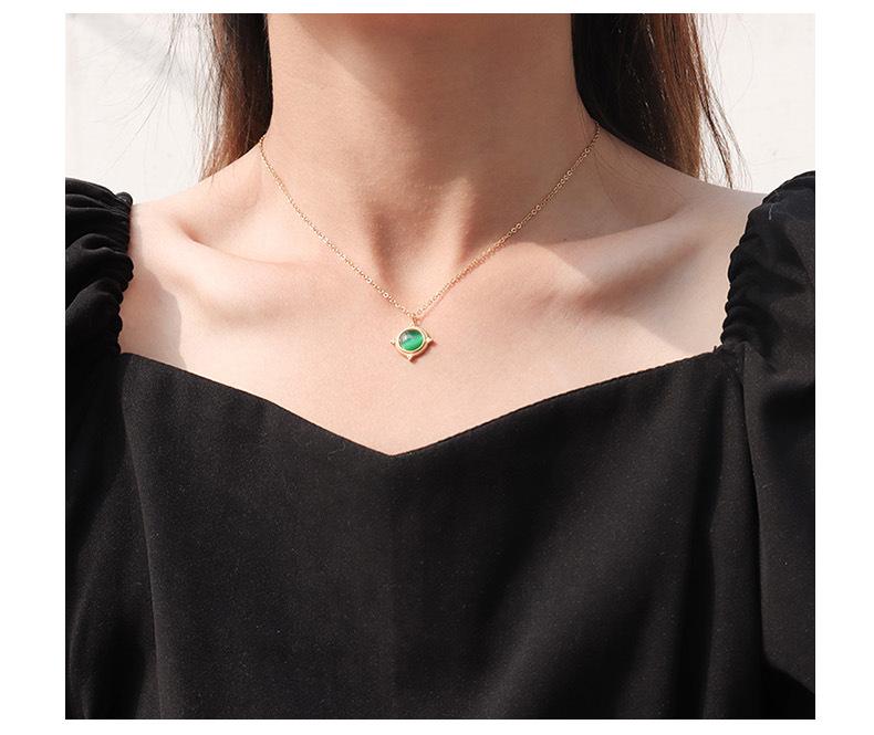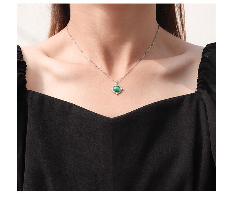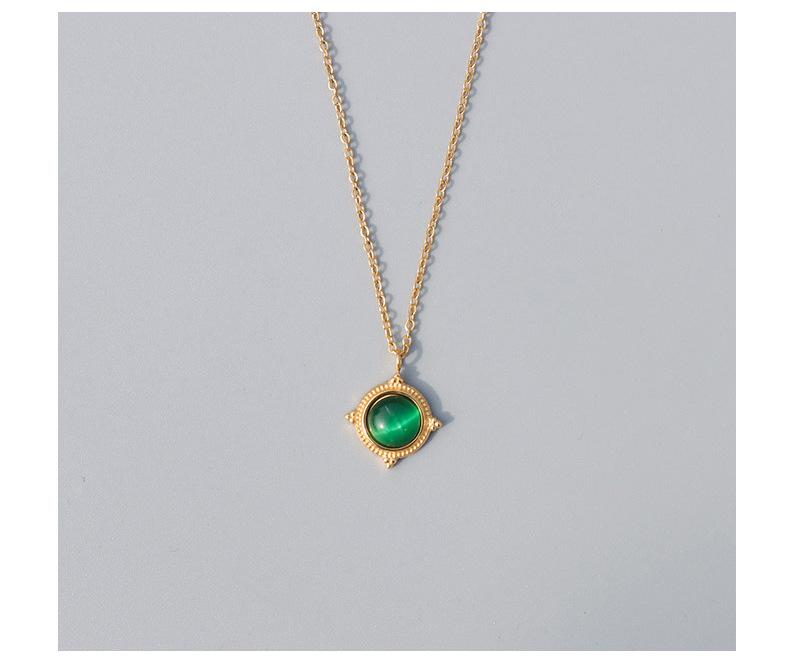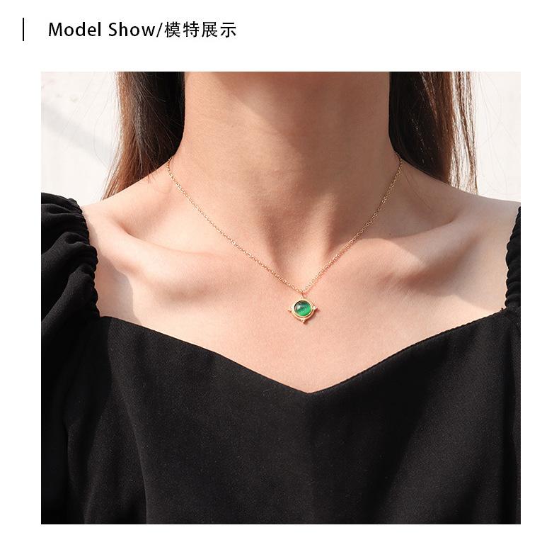 Collar de acero de titanio para mujer, estilo retro francés, con piedra de ojo de gato de ágata verde, con relieve de estrella, no se decolora, una generación de cabello