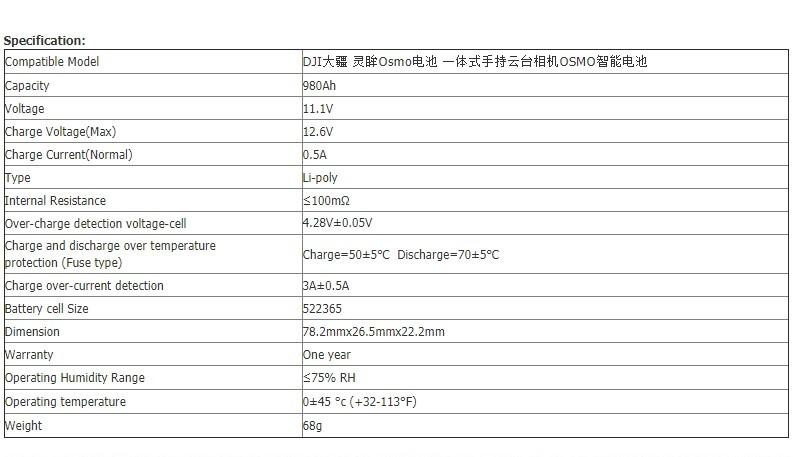 Adecuado para Osmo Mobile Estabilizador de Mano Todo en Uno Osmo Batería Inteligente 12.6V