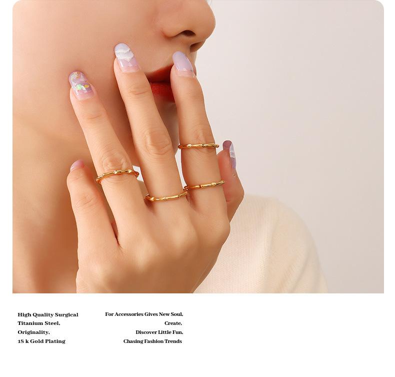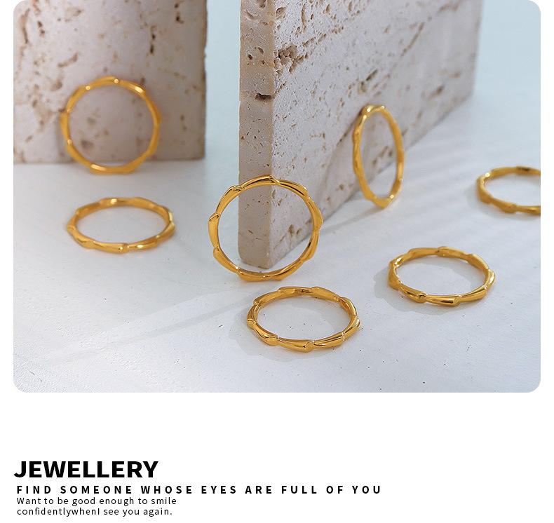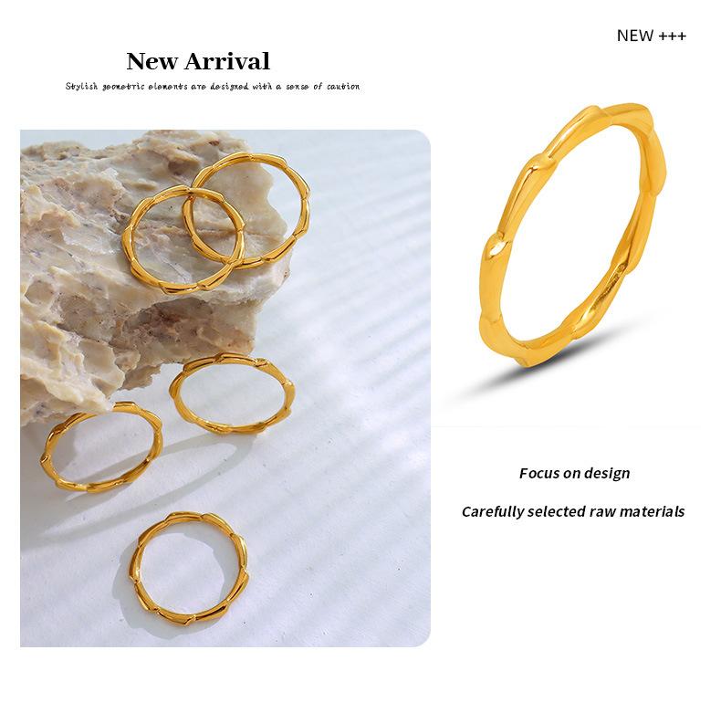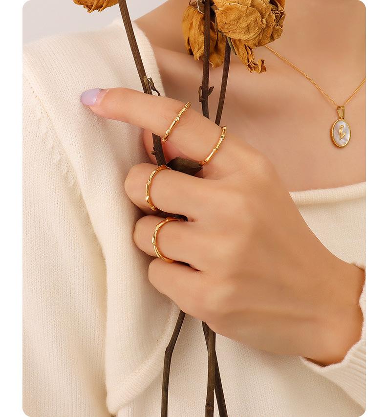 Anillo de Hueso Geométrico Moderno Retro de Lujo Ligero Estilo Frío Francés Acero Titanio Chapado en Oro de 18K Joyería de Mano de Moda