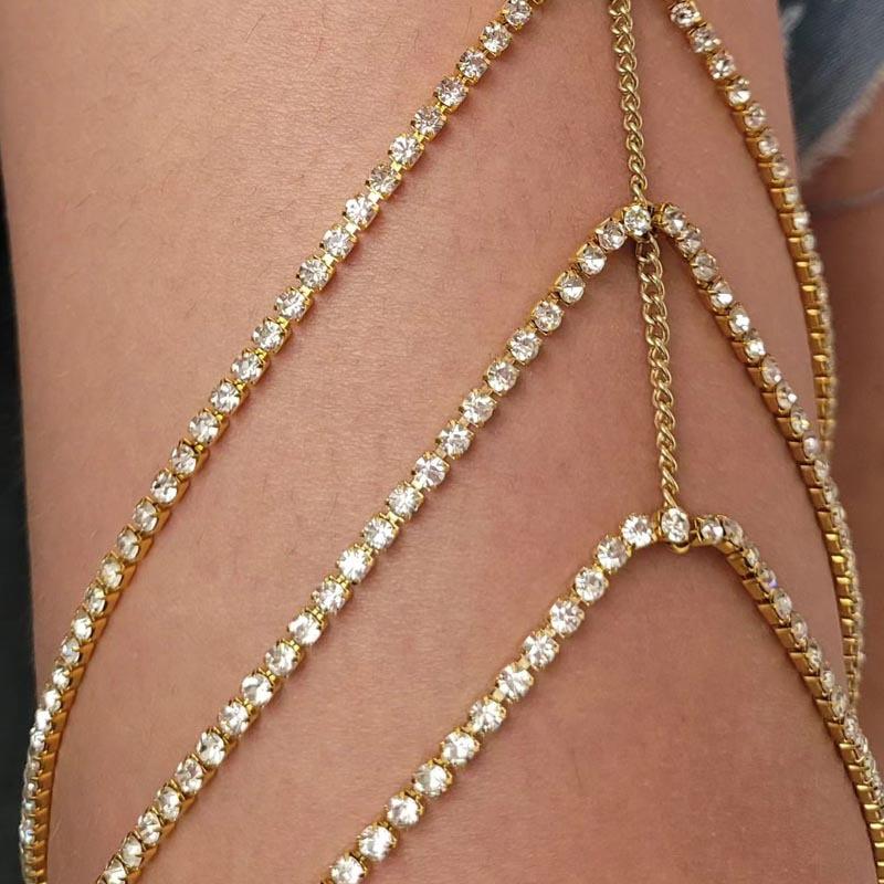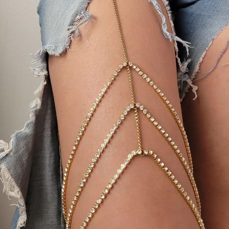 Cadena para el cuerpo de discoteca personalizada, joyería transfronteriza europea y americana, cadena para el muslo con borlas multicapa de diamantes sexys y sencillas.