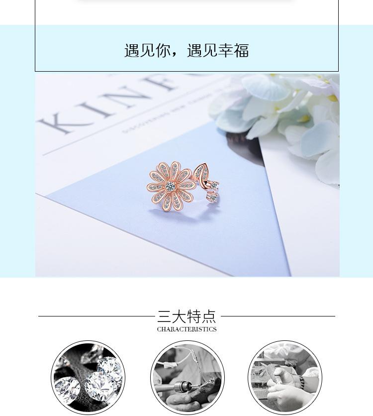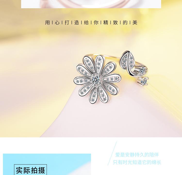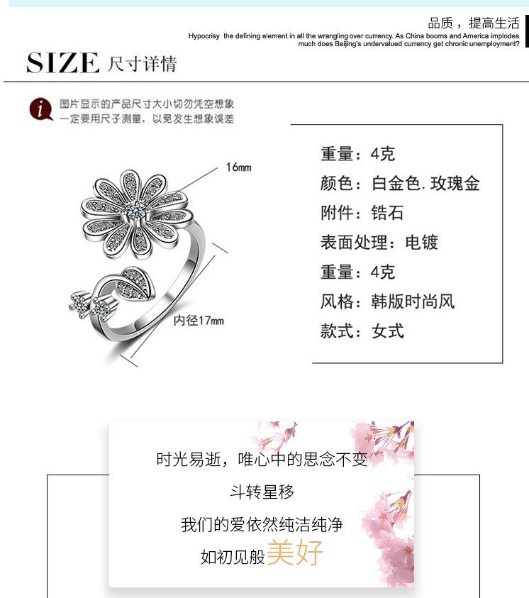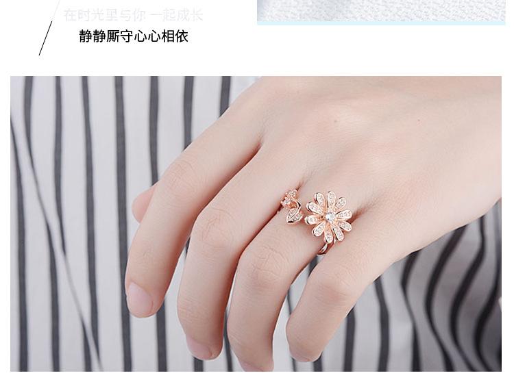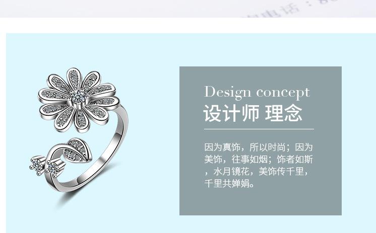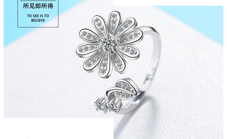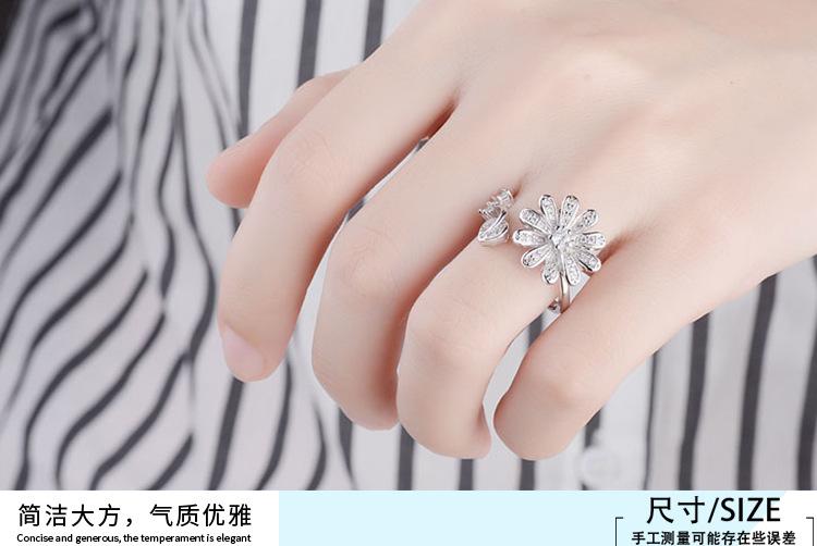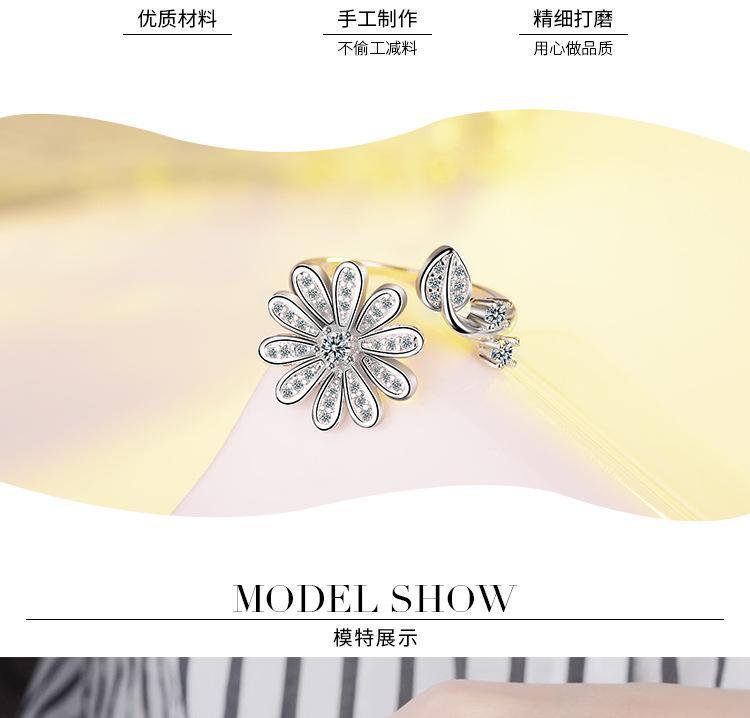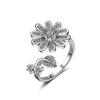 Anillo distintivo de apertura con flor y diamante que combina con todo, estilo japonés y coreano, para dedo índice o meñique