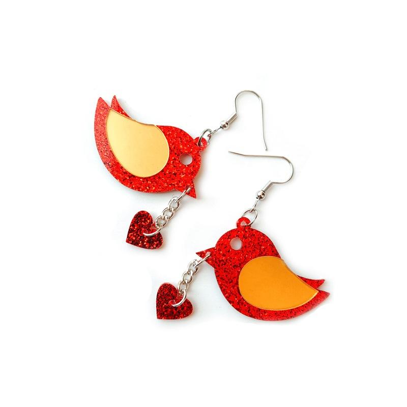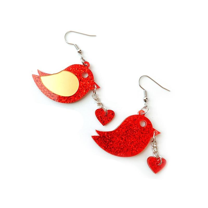 Amazon Transfronterizo Día de San Valentín Joyería Acrílico con Brillo Rojo Pájaro del Amor Amor Aretes Aretes de Mujer