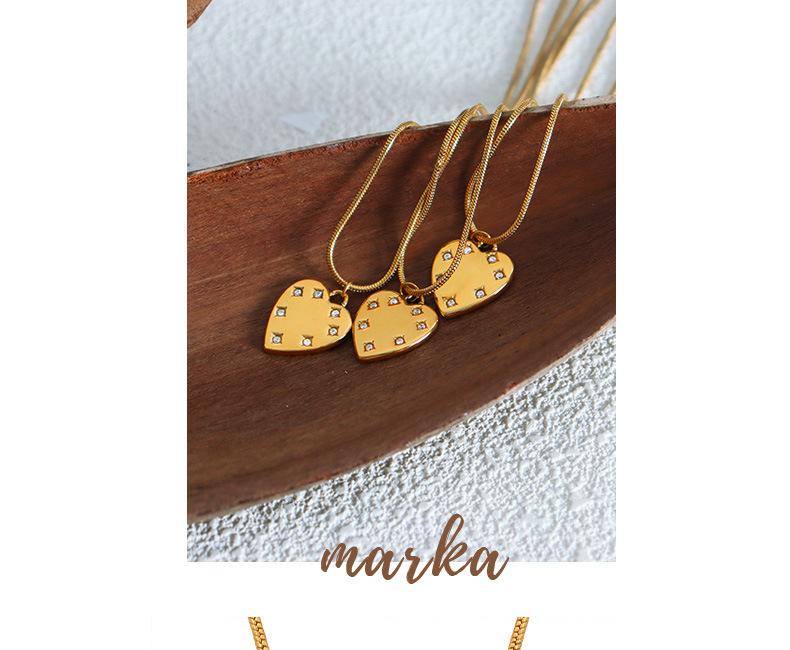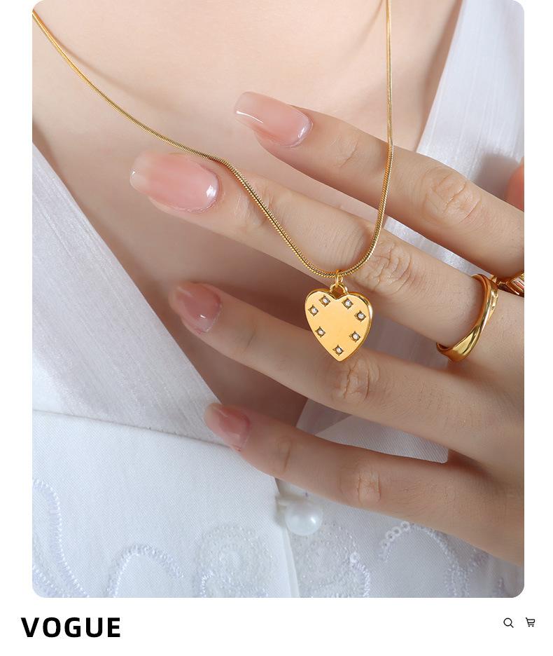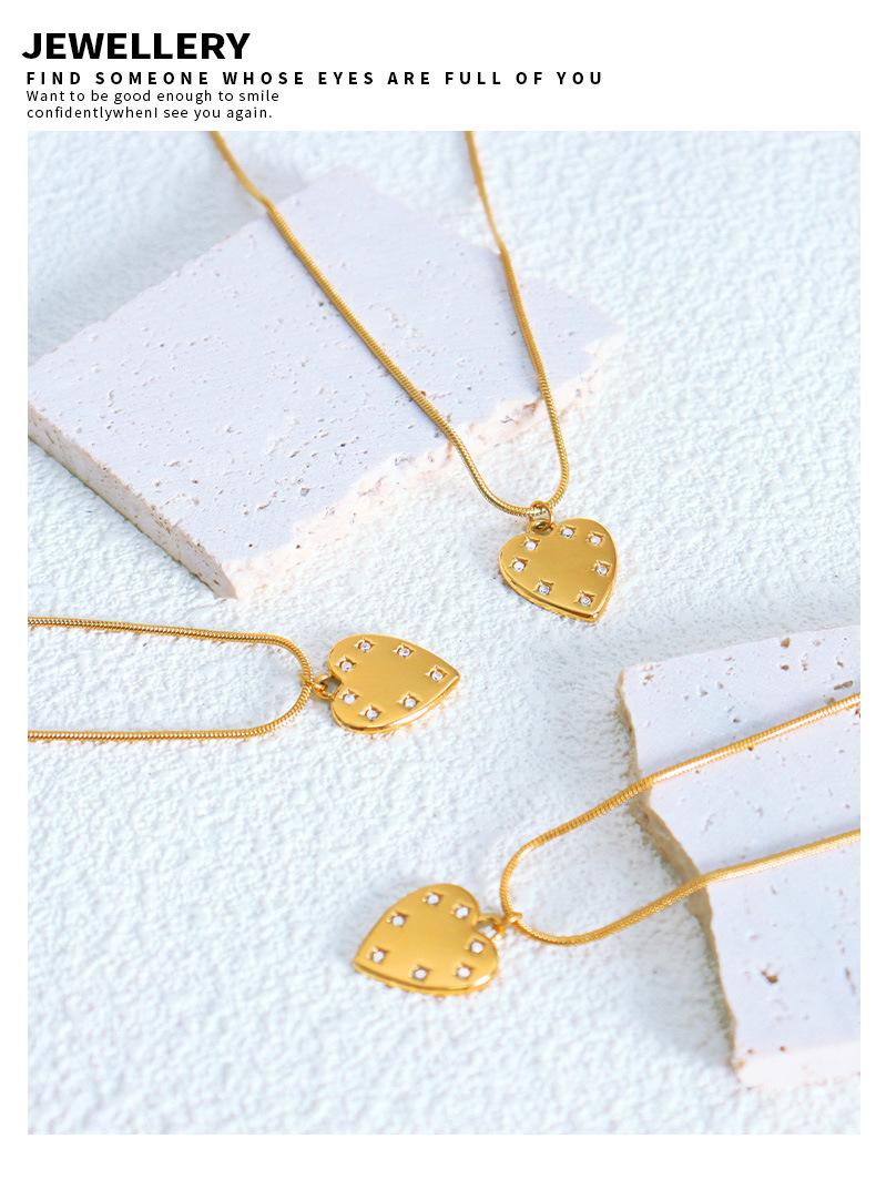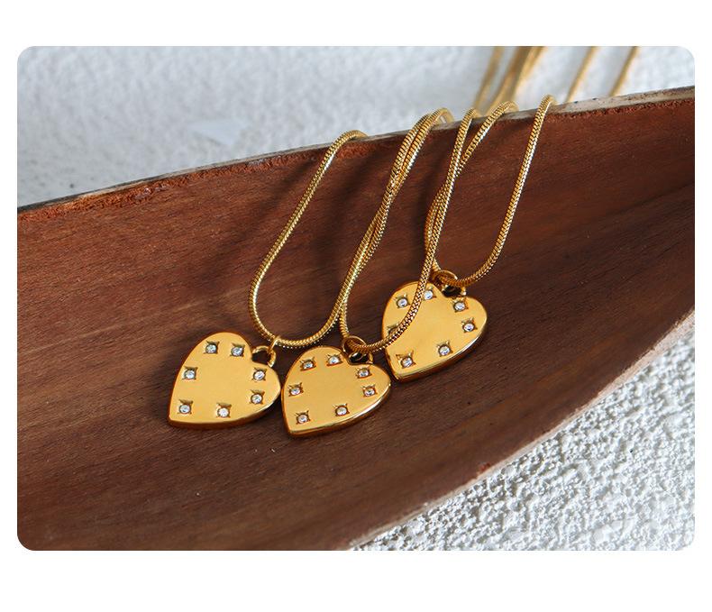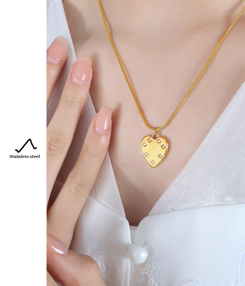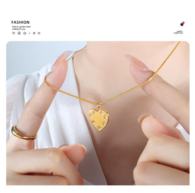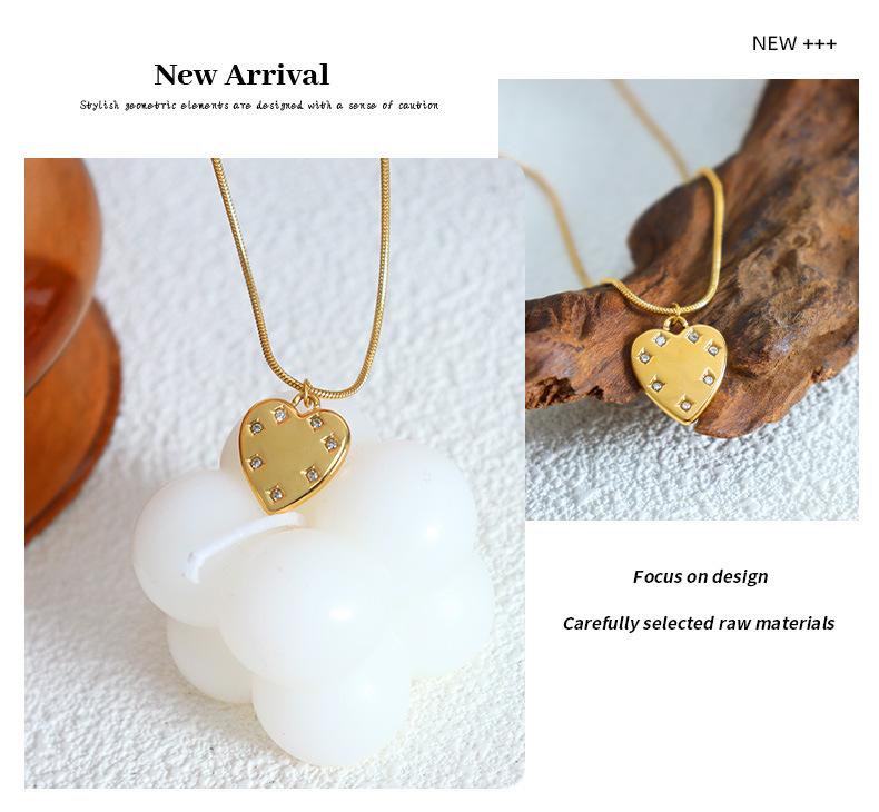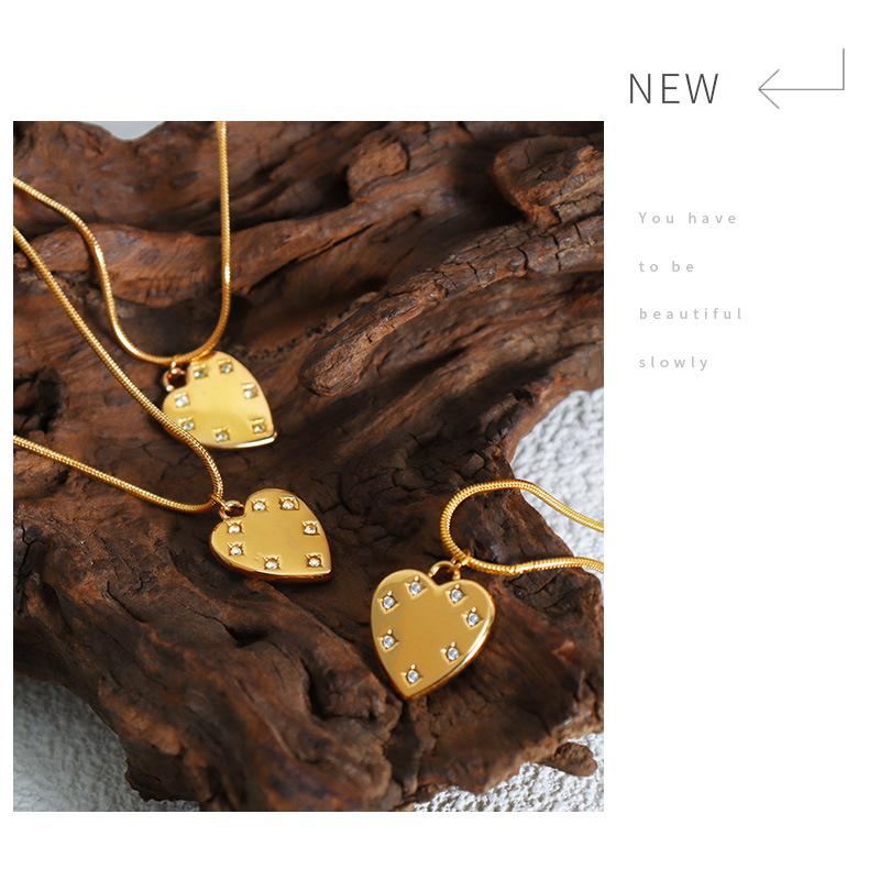 Collar con colgante de acero de titanio con incrustaciones de diamantes en forma de corazón, diseño de nicho de alta calidad, estilo europeo y americano, elegante cadena de hueso de serpiente chapada en oro.