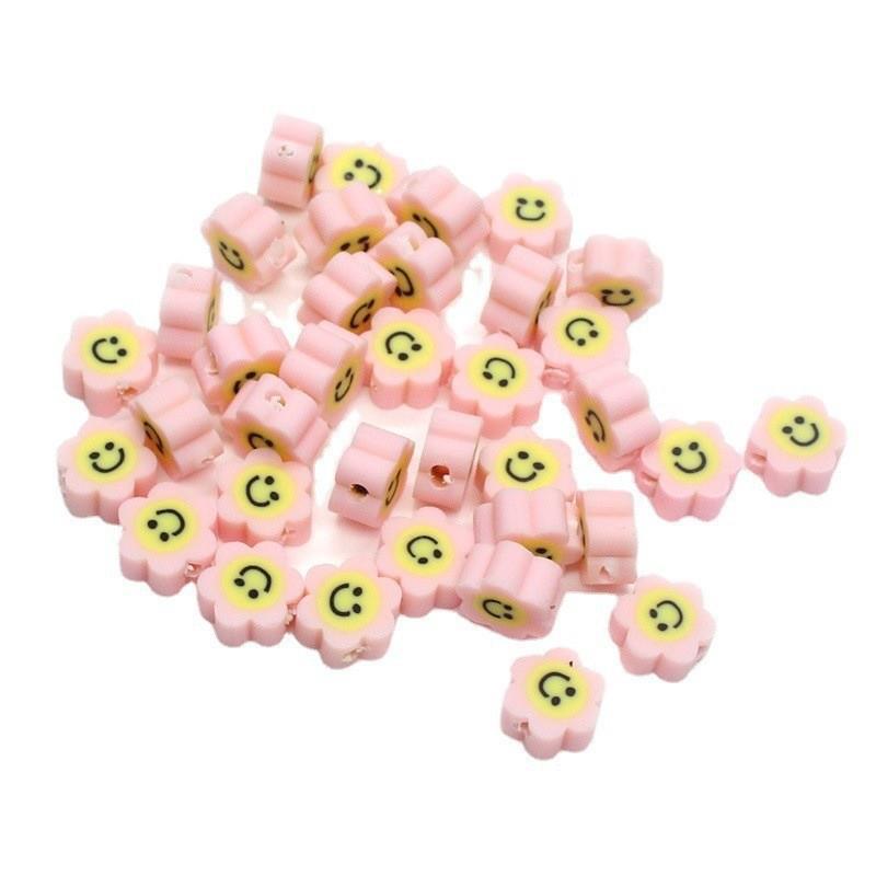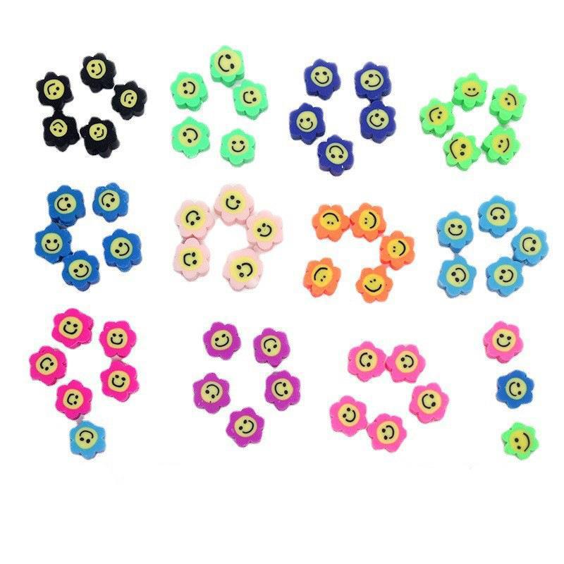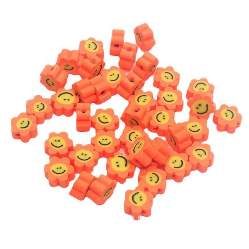 Cuentas de carita sonriente accesorios para joyería DIY collar pulsera accesorios para cadena de teléfono móvil cuentas sueltas en forma de flor cuentas de arcilla suave de girasol