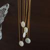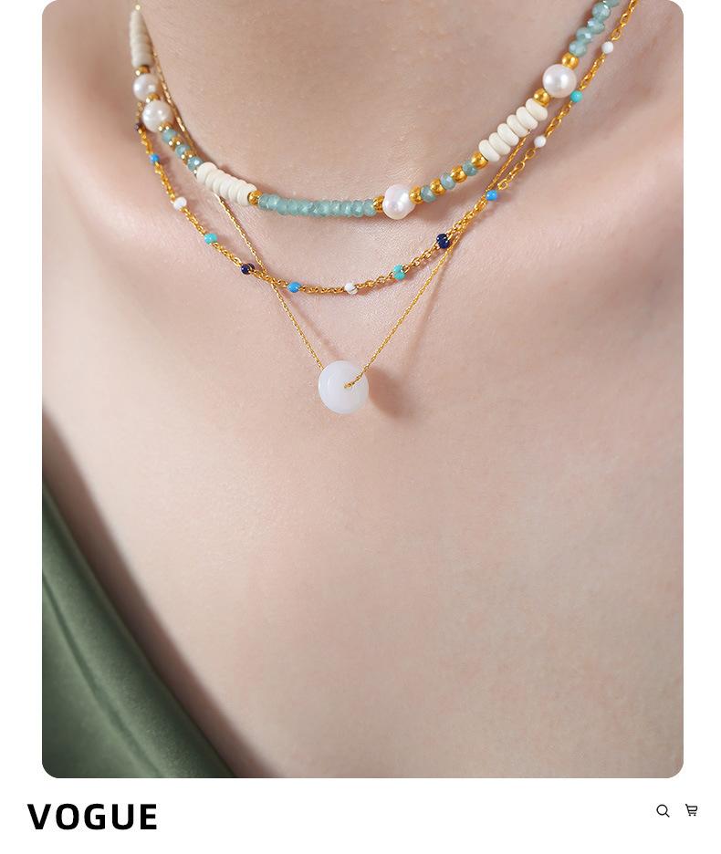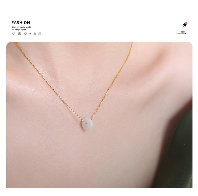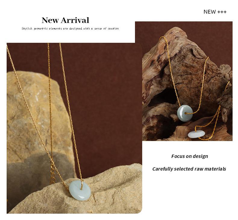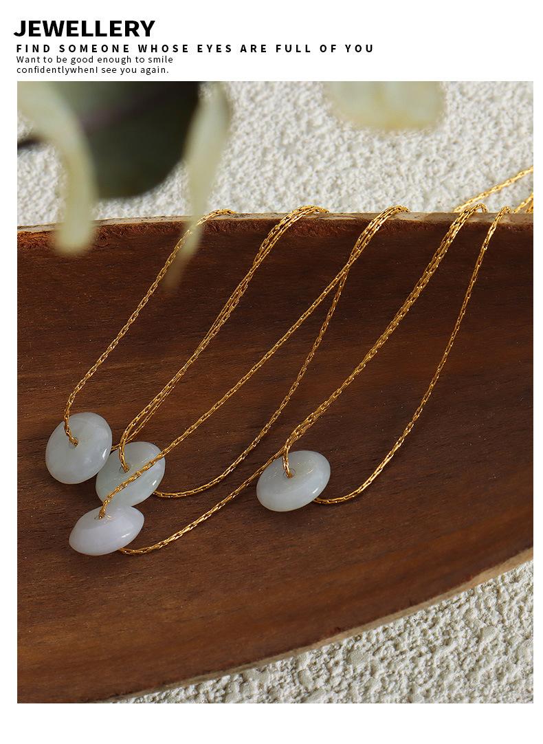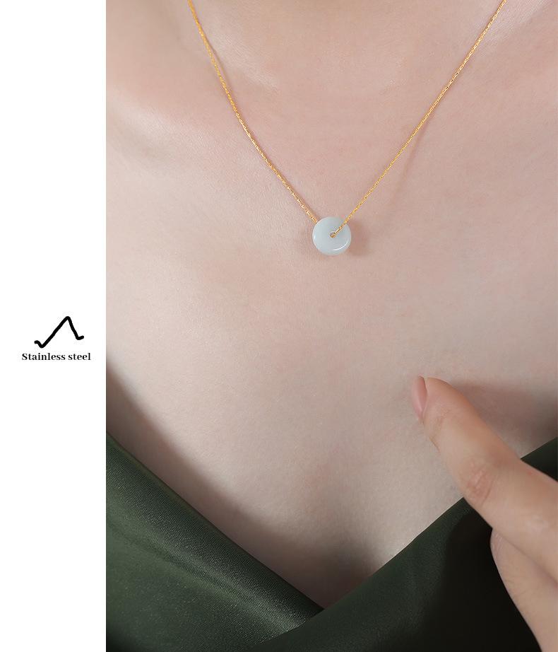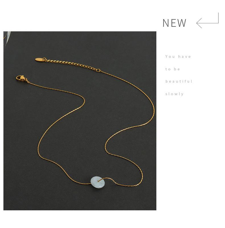Nuevo estilo francés, colgante de piedra natural redonda versátil de nicho de alto sentido, cadena de clavícula, collar simple de acero de titanio, joyería para mujeres