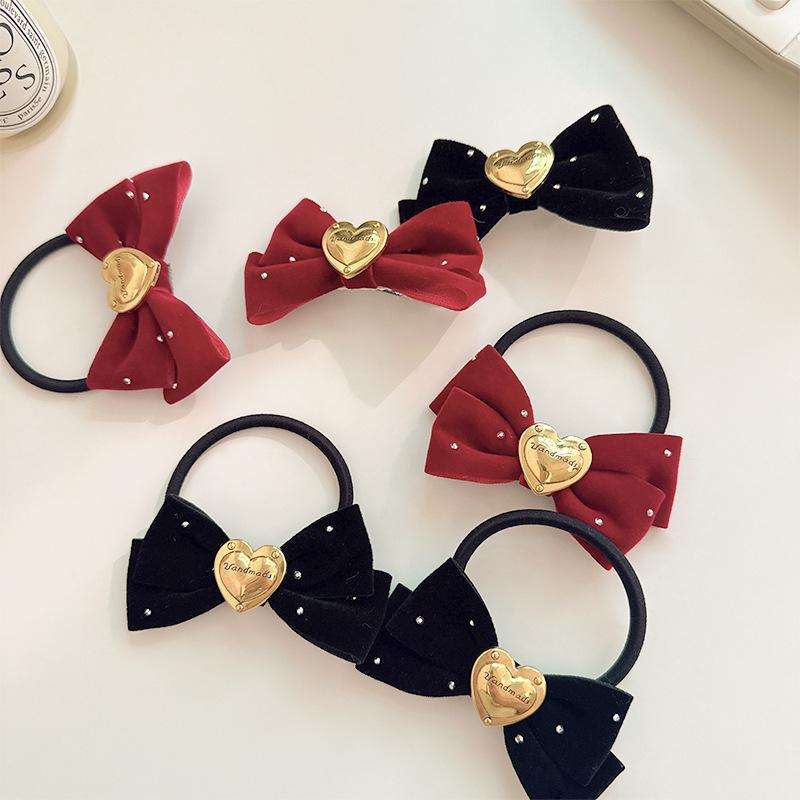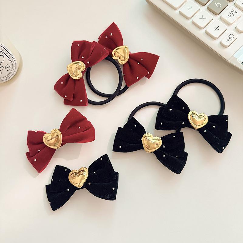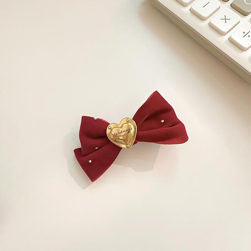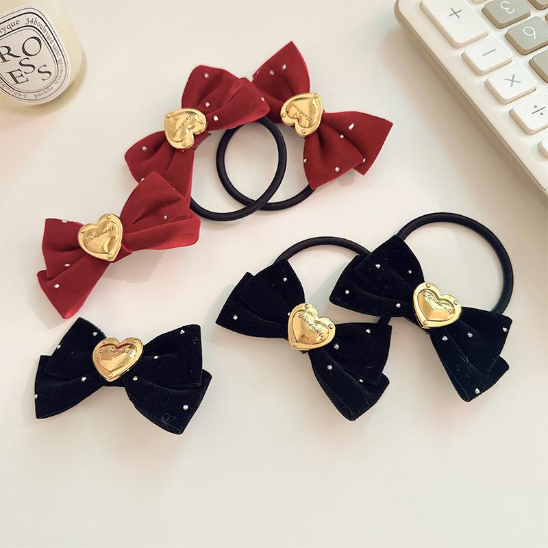 Horquilla de metal de alta calidad con lazo de amor, cuerda para el cabello, horquilla de terciopelo vintage, cuerda para el cabello, clip de flequillo dulce, clip lateral para mujeres
