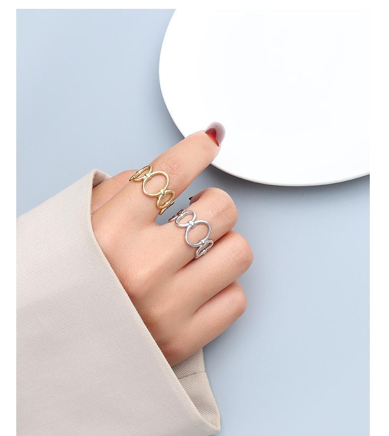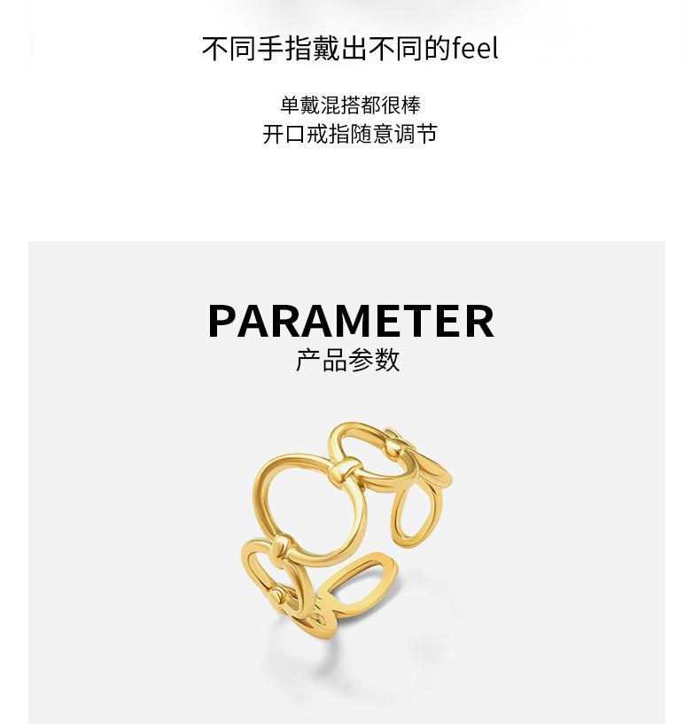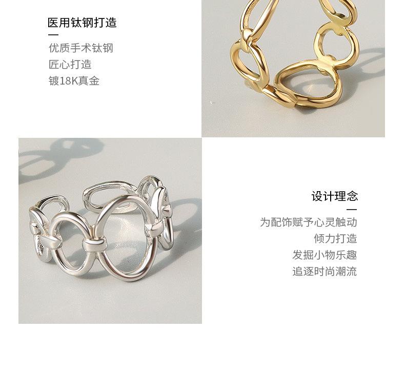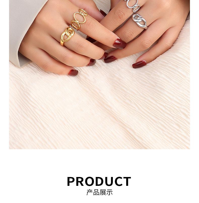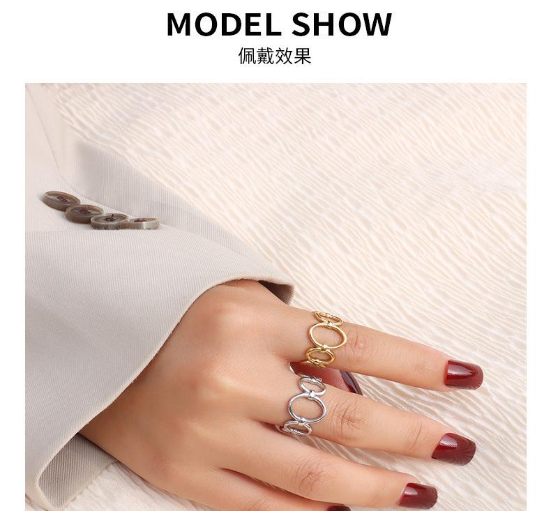 Anillo minimalista geométrico ovalado con costuras estilo ins europeo y americano para mujer, anillo para el dedo de comida, anillo abierto de acero de titanio con baño de oro de 18k A151
