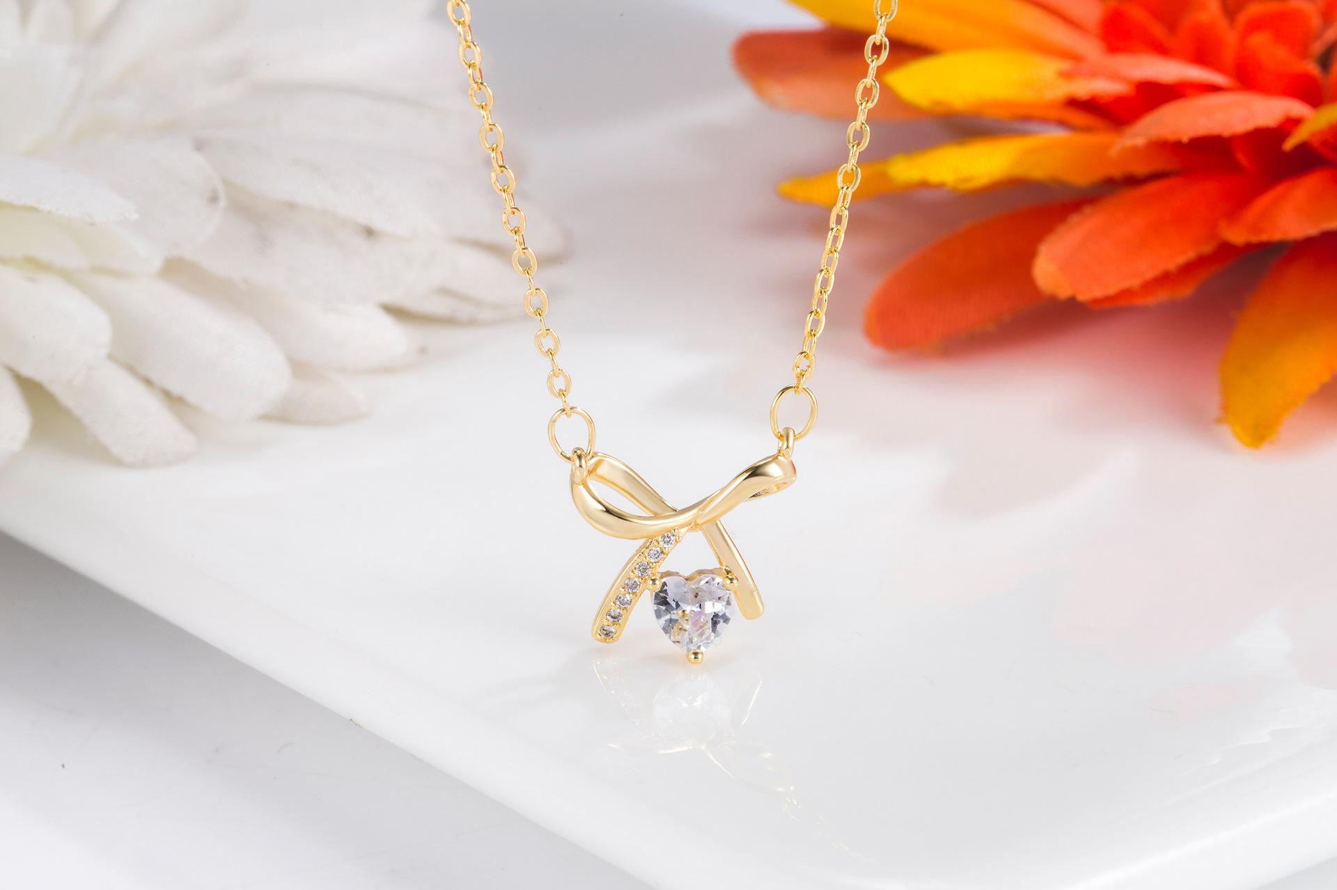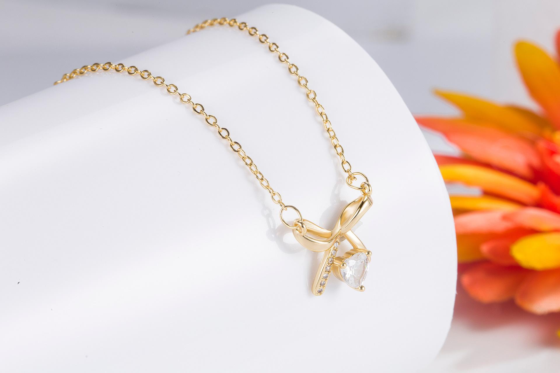 Bow love diamond necklace (gold)