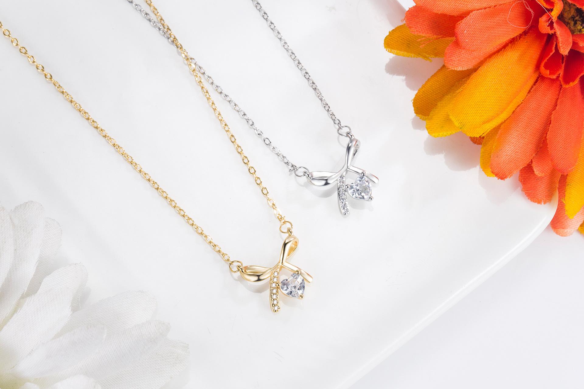 Bow love diamond necklace (White Gold), Bow love diamond necklace (gold)