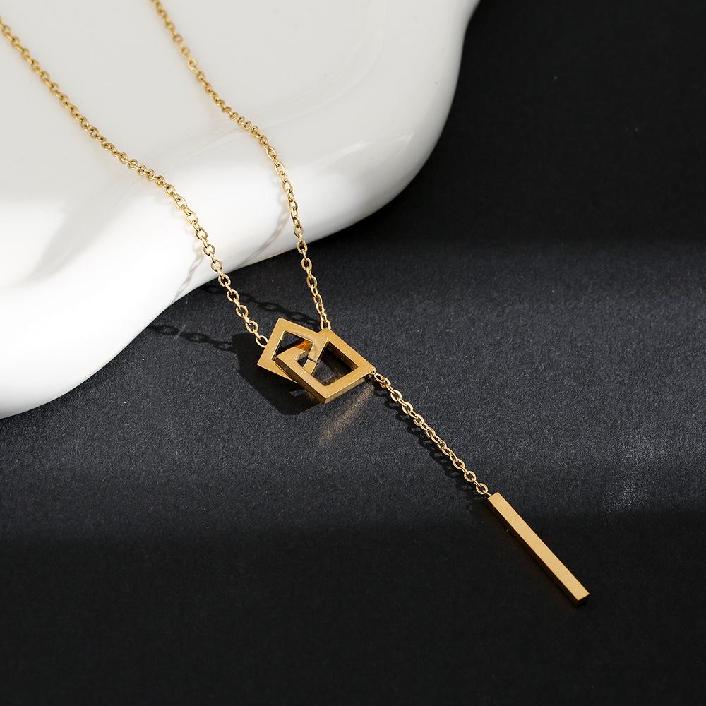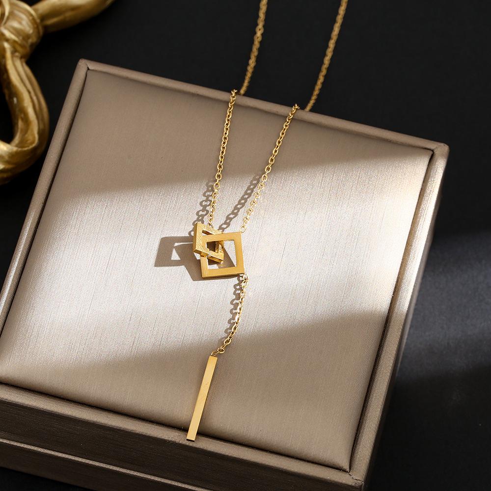 Collar de acero de titanio europeo y americano, collar cuadrado simple, nuevo accesorio de alta gama para mujer, cadena de clavícula que no se decolora