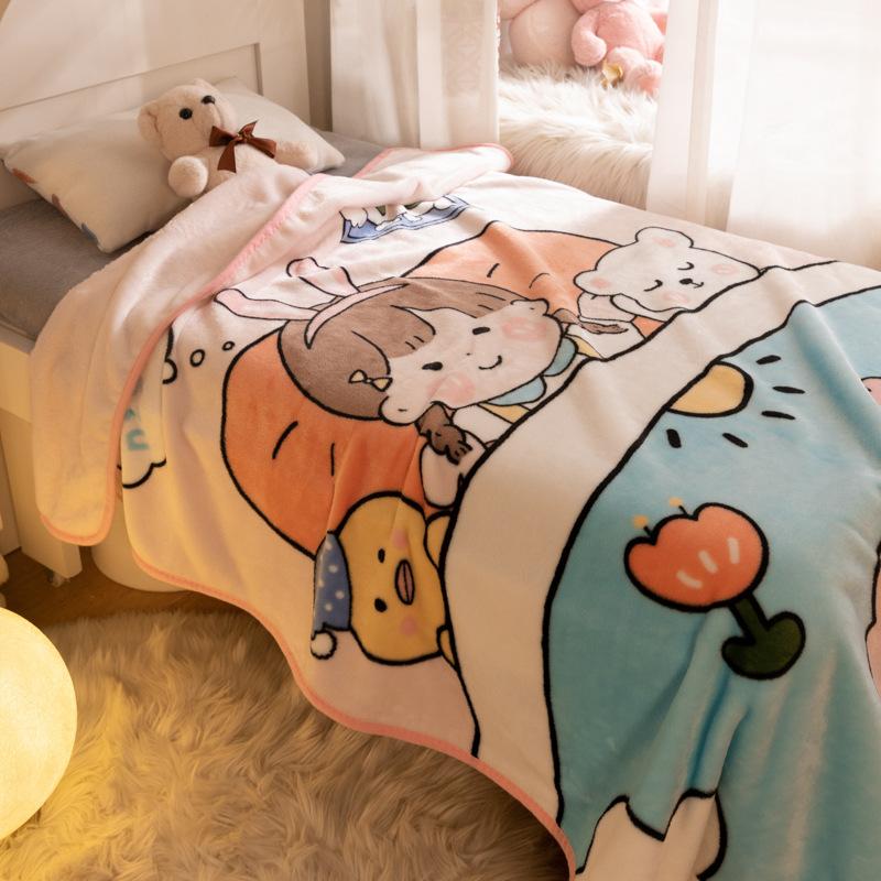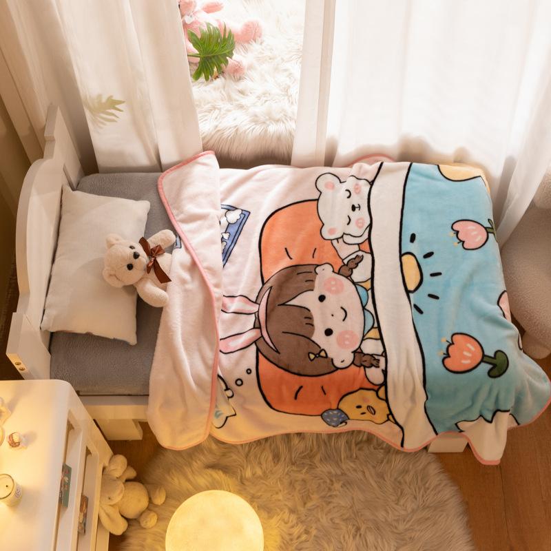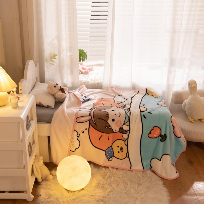 Manta Infantil de Franela de una Sola Capa al por Mayor Transfronteriza con Patrón de Dibujos Animados para Verano con Aire Acondicionado, Manta para la Siesta de Jardín de Niños