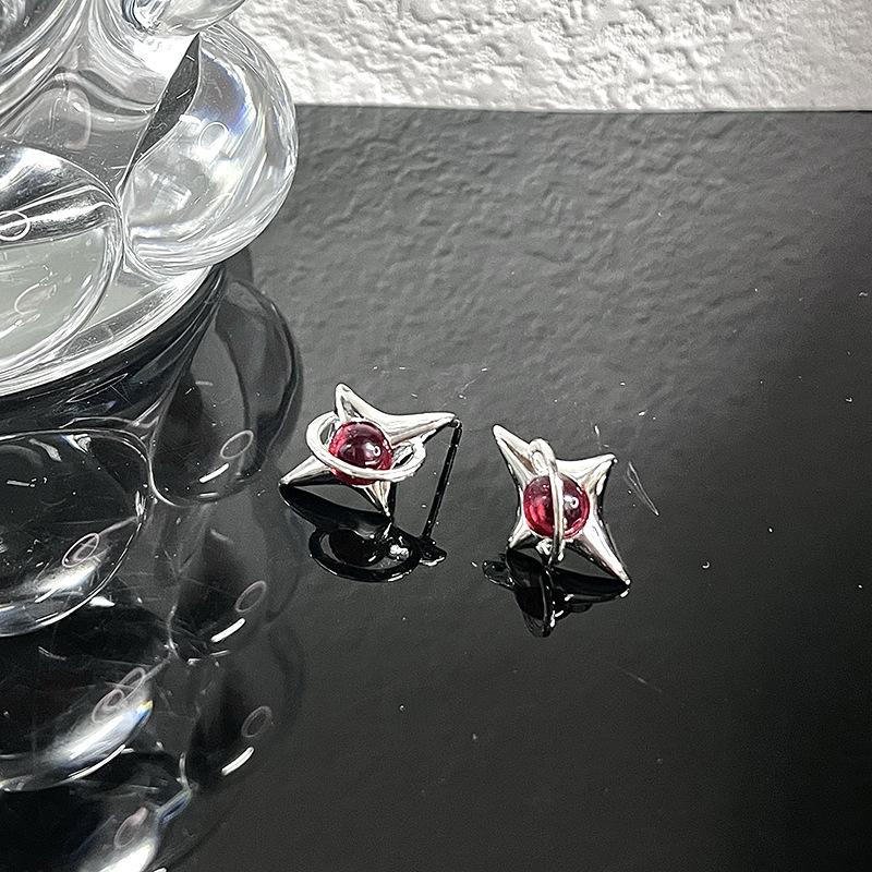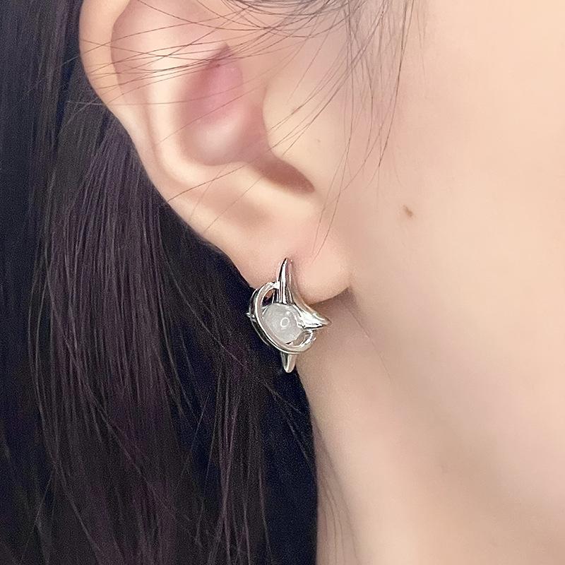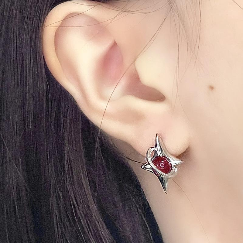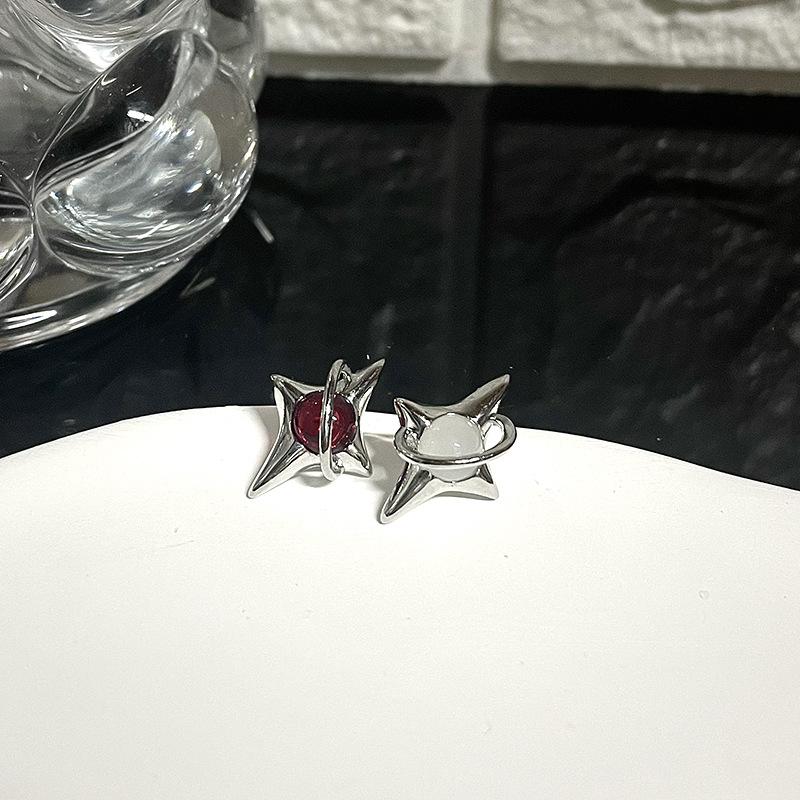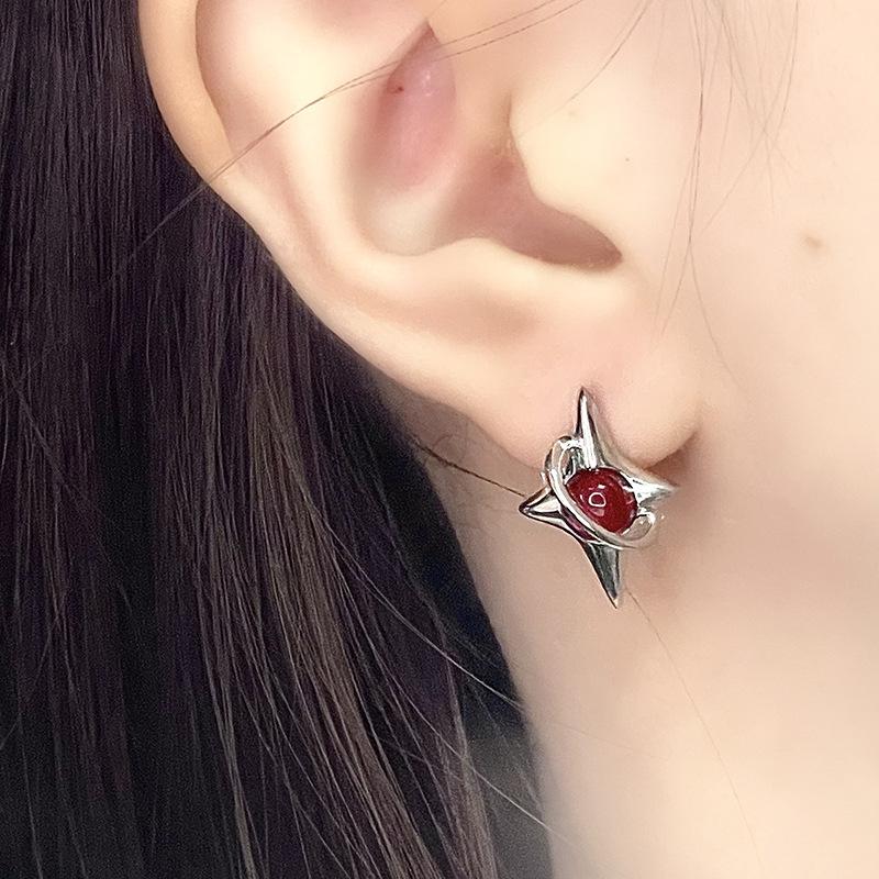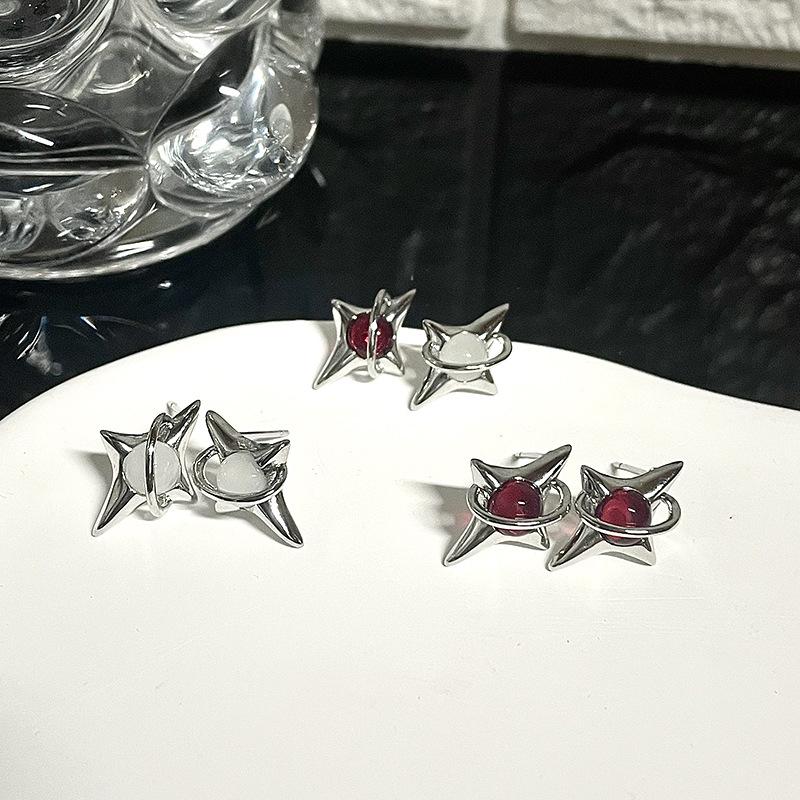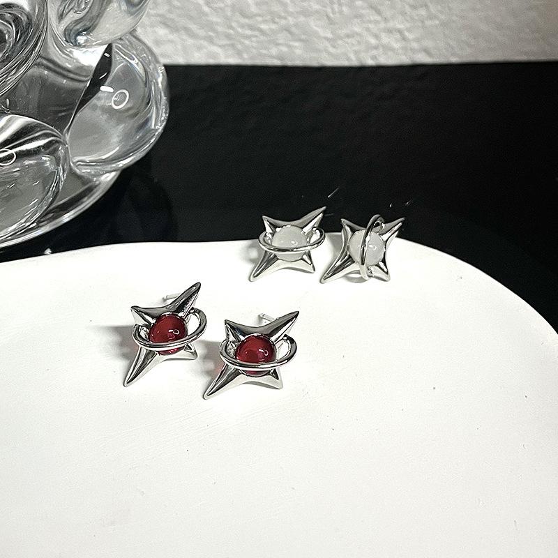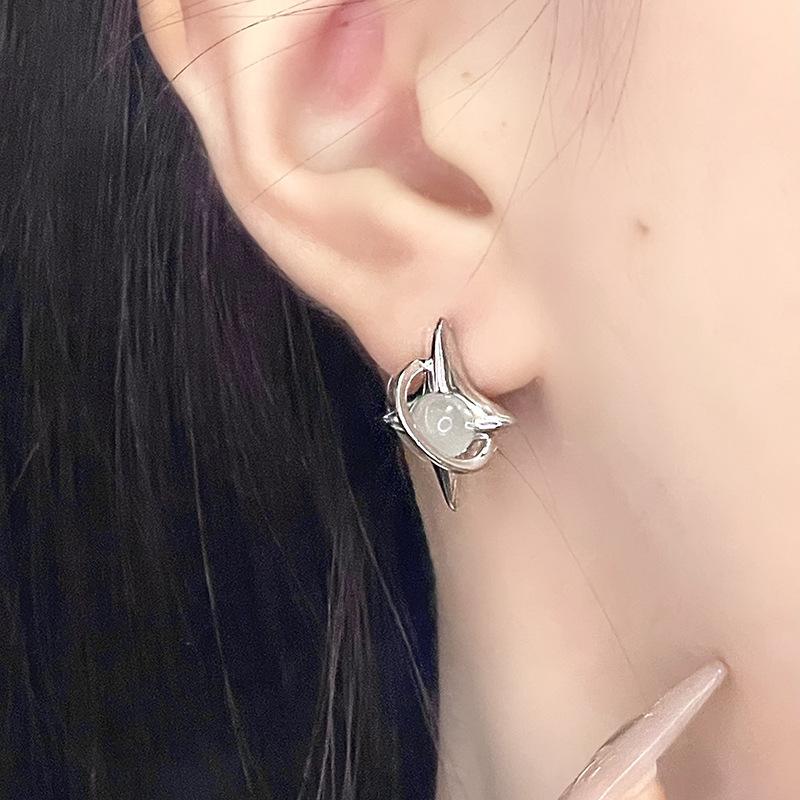 Pendientes de estrella tridimensionales con diseño de nicho, pendientes sencillos con personalidad de chica sexy y estilo frío con piedra lunar y estrella francesa