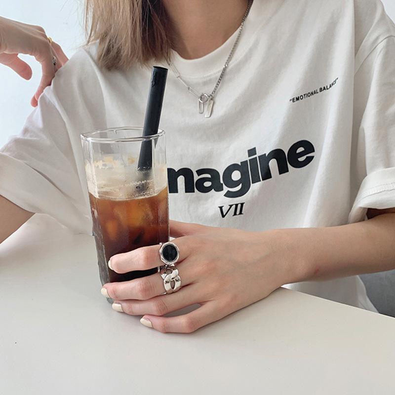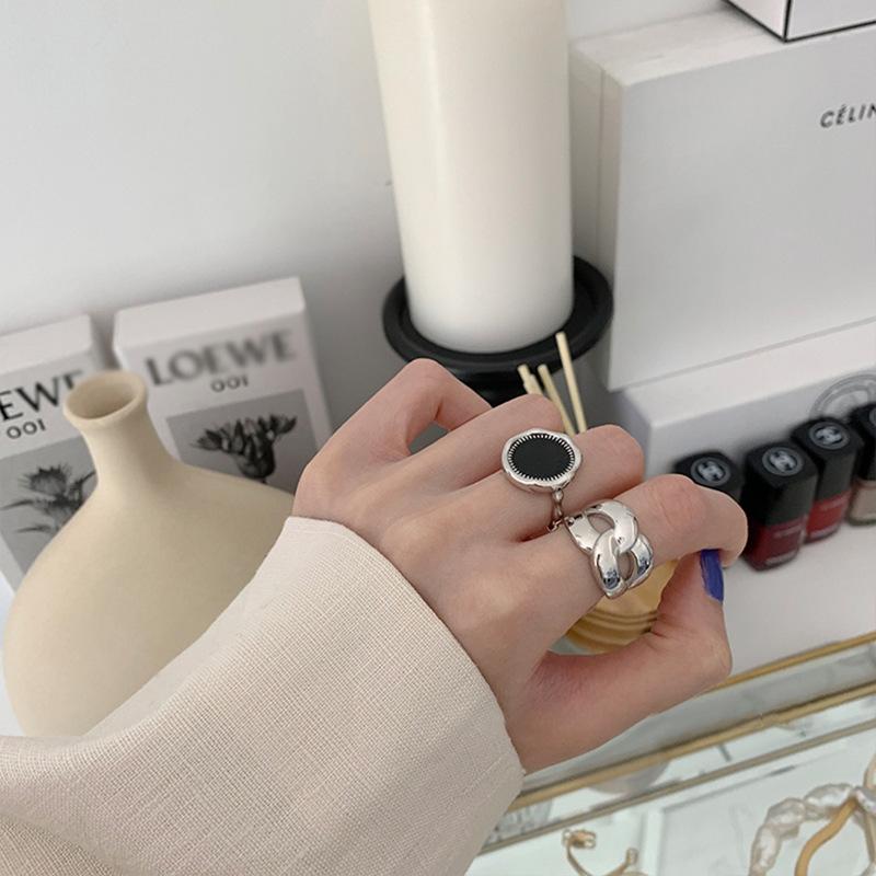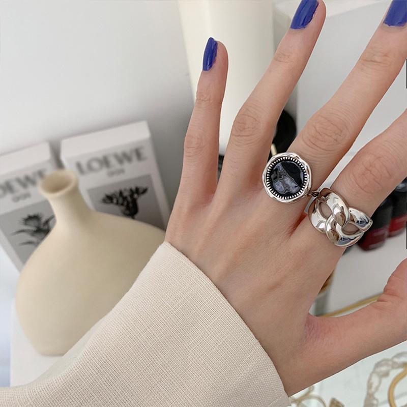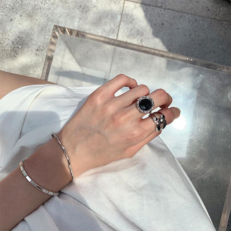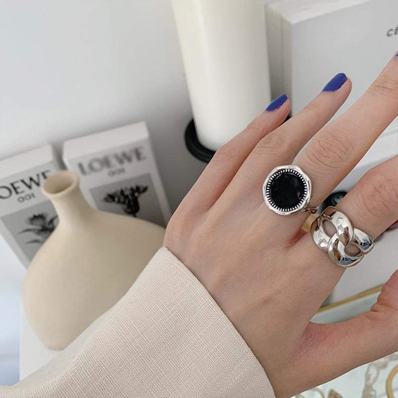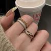 Anillo de Moda Cruz Torcida para Mujer, Anillo Abierto Geométrico Simple Vintage de Flor Negra, Anillo Versátil para el Dedo Índice, Moderno
