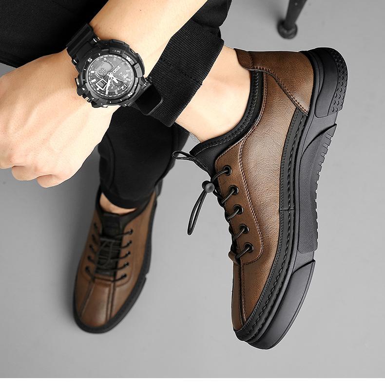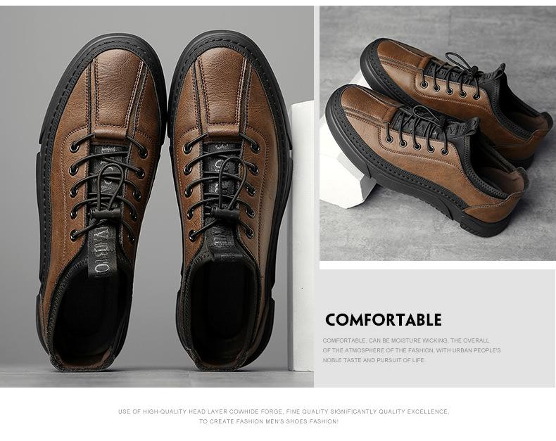Zapatos Casuales de Cuero Nuevos de Primavera y Verano 2025 Zapatos de Cuero Genuino para Hombre Moda Trendy Deportivos Zapatos Individuales para Hombre Zapatos de Algodón con Terciopelo